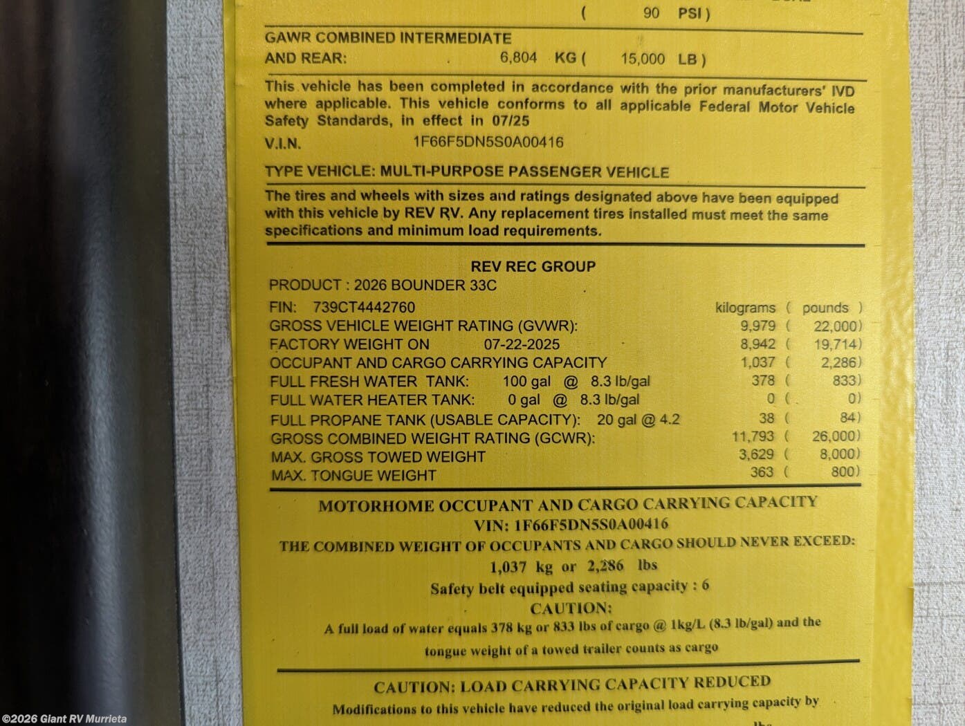 Request More Info on this 2026 Fleetwood Bounder 33C Offered for sale by Giant RV