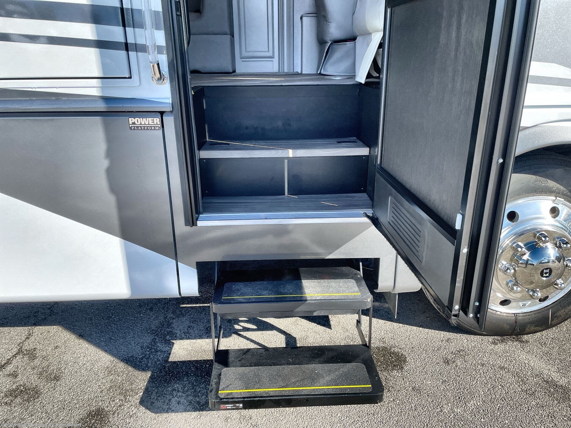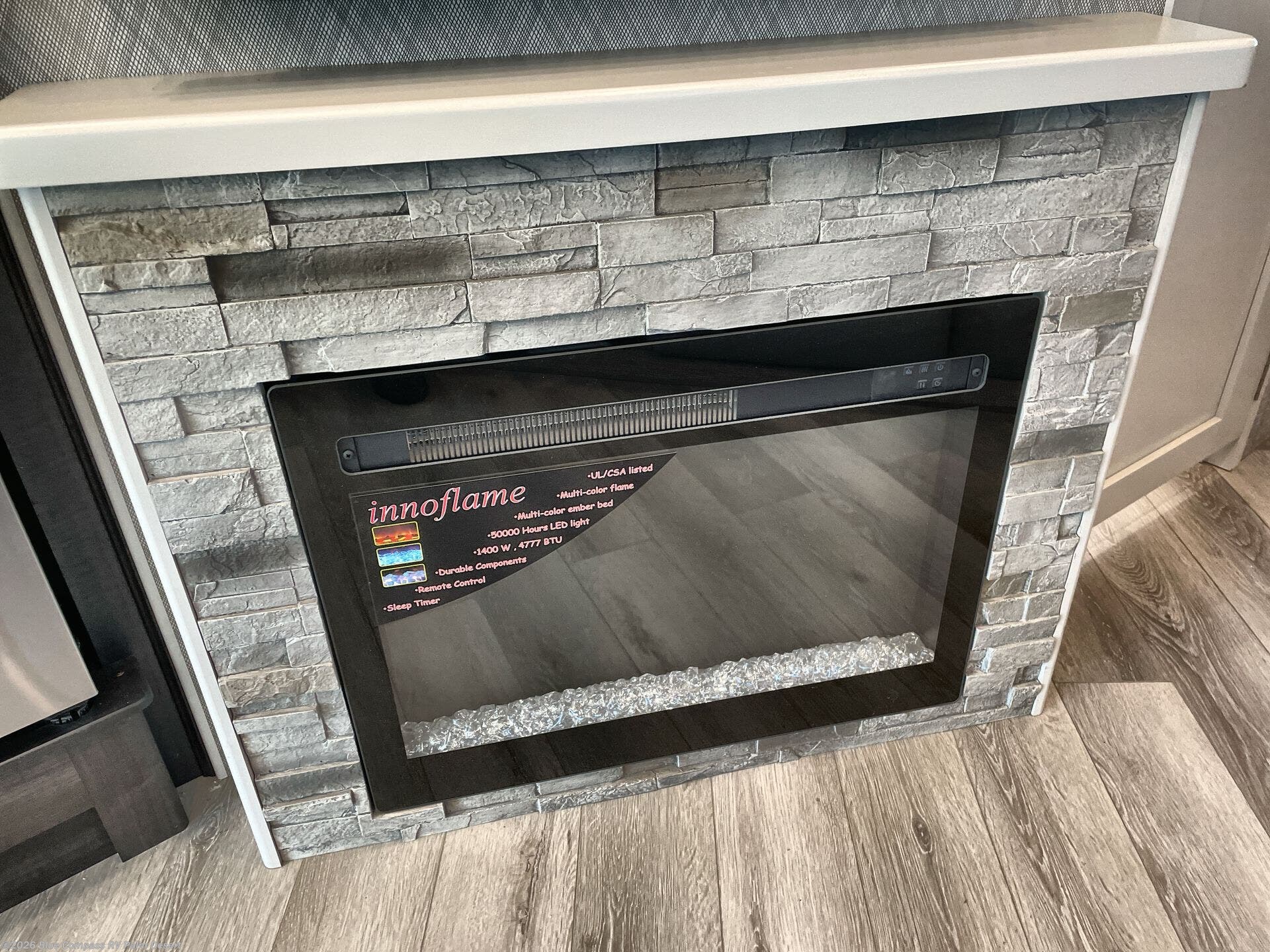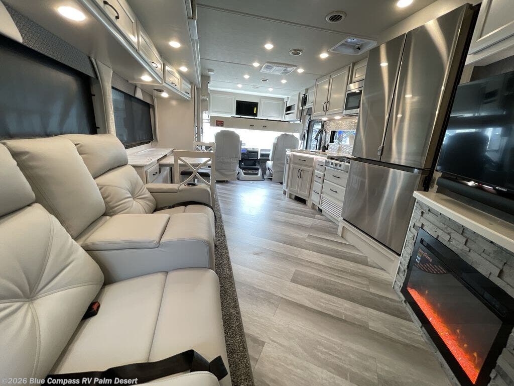 Get ready to live in this coach with all the amenities of home, yet your destination can change when you like! The rear bedroom offers a slide out king bed with CPAP storage above, plus wardrobes, a dresser and an LED TV to watch at night. The full bathroom offers a 24" x 40" shower with a seat so you can relax after shopping in town or hiking the trails. When you get hungry, the full kitchen offers a residential refrigerator, a convection microwave and pantry for all your goodies. The jackknife sofa and end table are across from the LED TV with a fireplace below for a great place to watch your shows, and the rest EZ dinette gives you a place to dine and even work if you need to. You can also enjoy your coffee while sitting in the driver and passenger seats that swivel with a pedestal table in between.
