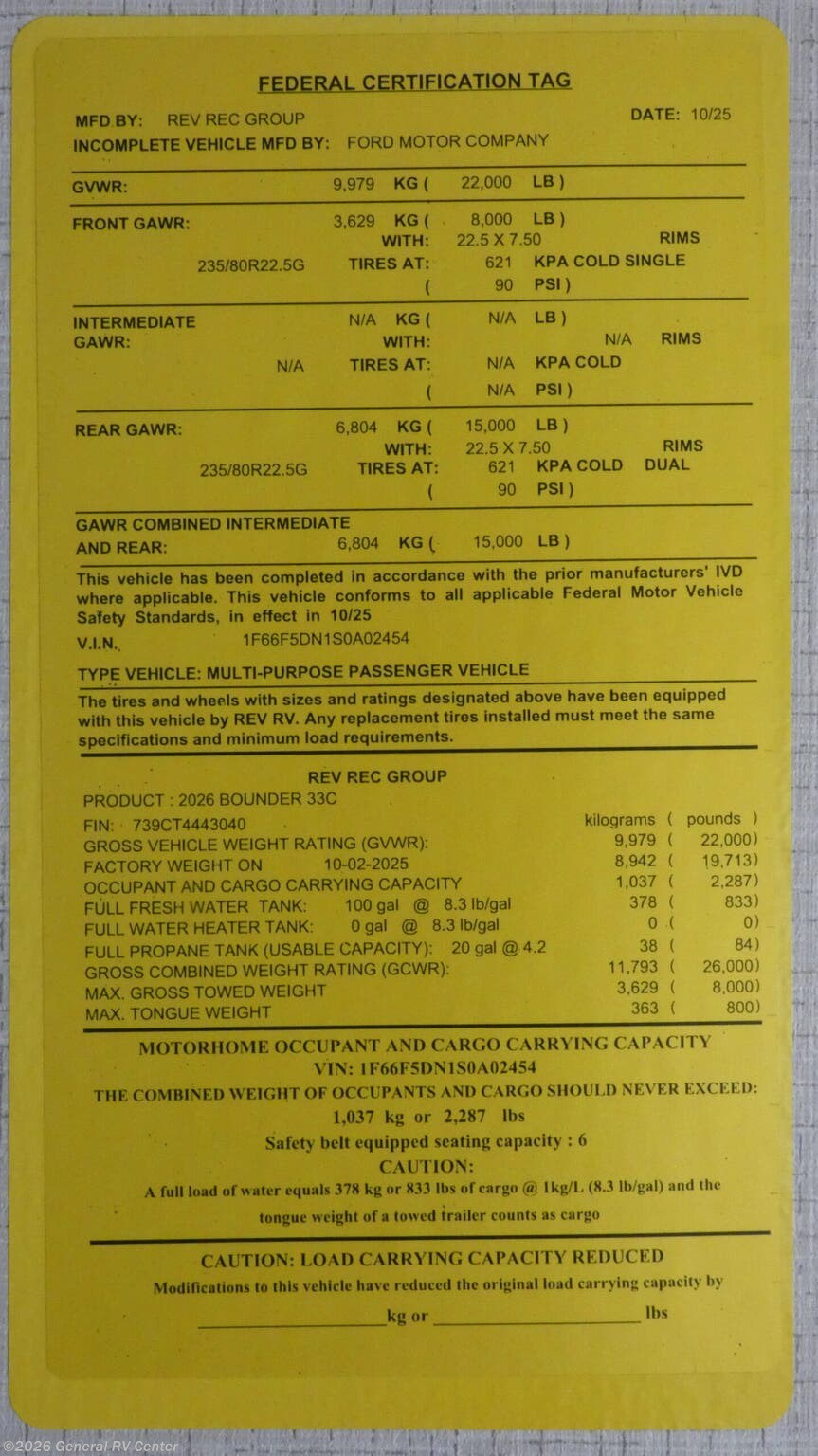 Request More Info on this 2026 Fleetwood Bounder 33C Offered for sale by General RV Center