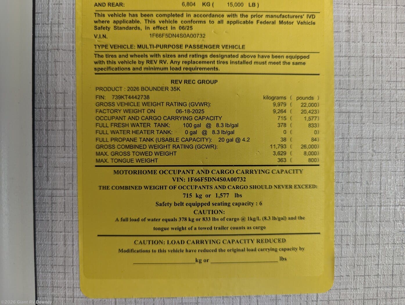 Request More Info on this 2026 Fleetwood Bounder 35K Offered for sale by Giant RV