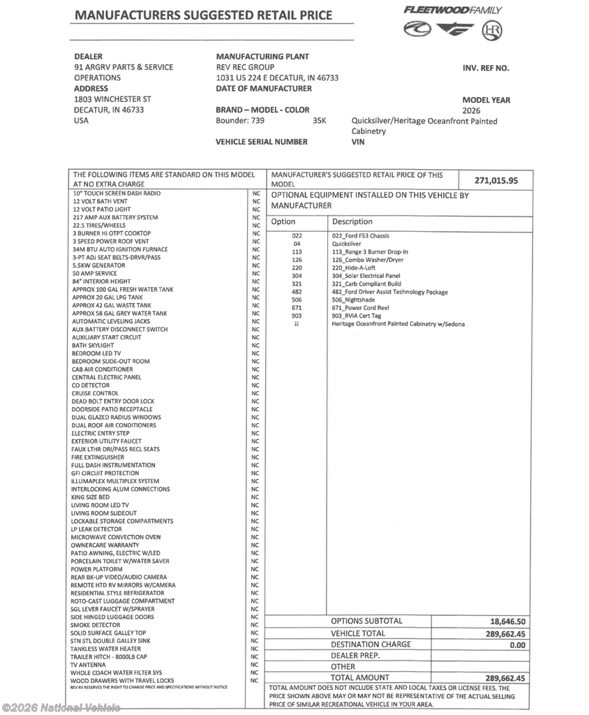 Request More Info on this 2026 Fleetwood Bounder 35K Offered for sale by National Vehicle