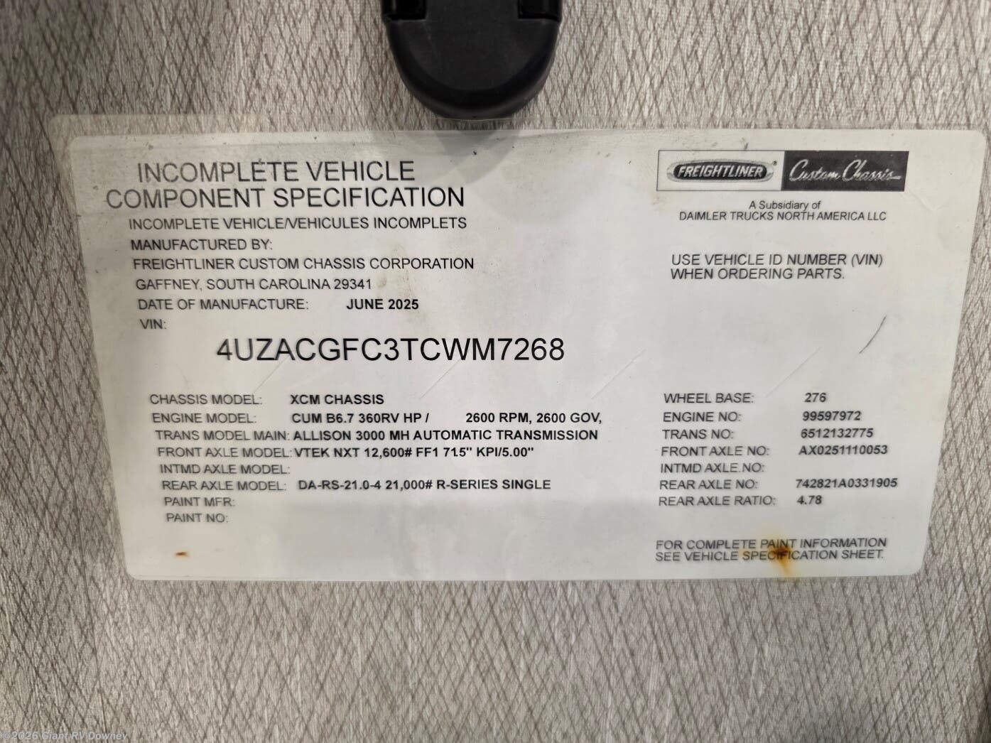 - VIN4UZACGFC3TCWM7268