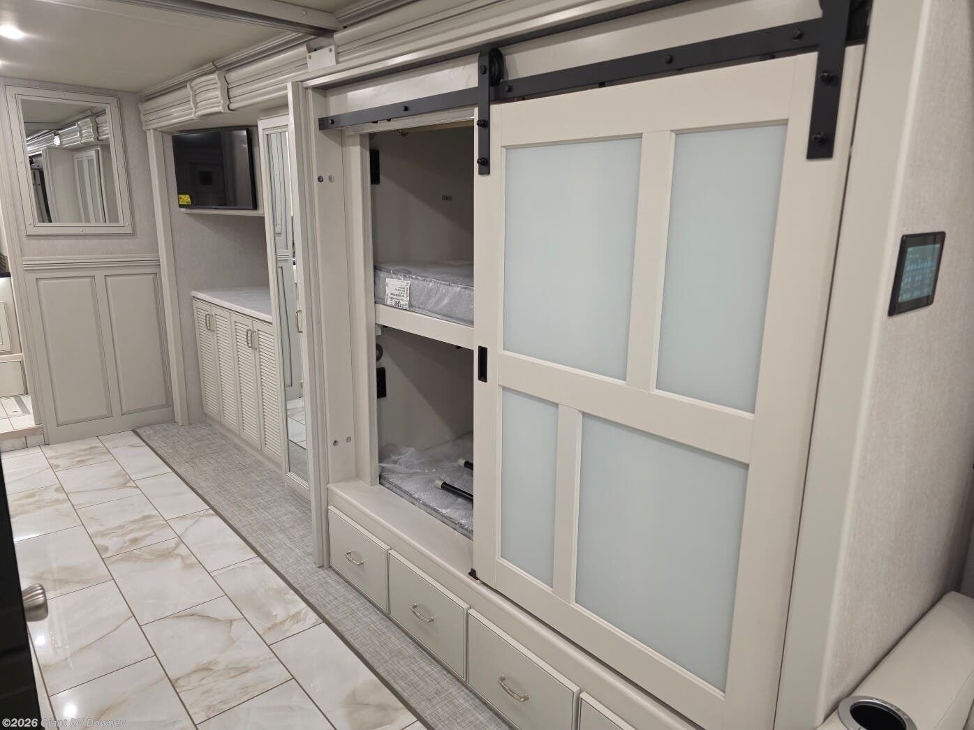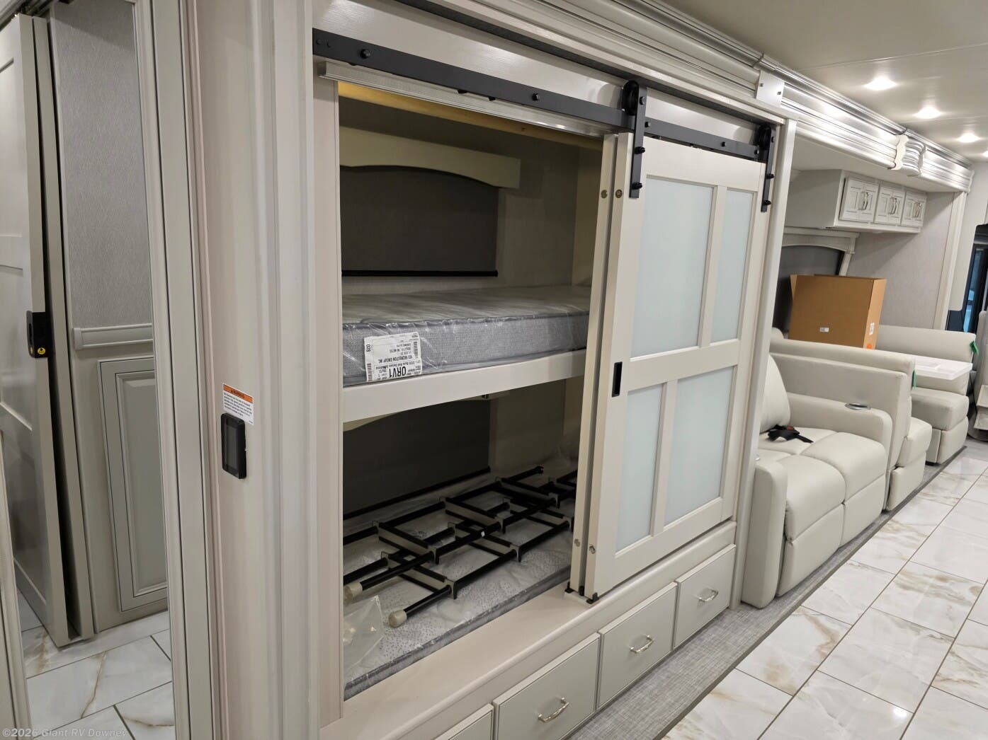 Embark on luxurious family journeys with the 2026 Fleetwood Discovery 38N, a premium Class A diesel motorhome designed for comfort and versatility. This new RV features a bunkhouse layout with convertible beds, modern amenities, and powerful towing for unforgettable road trips. Available now at Giant RV in California, the 2026 Fleetwood Discovery 38N offers style and functionality for your next adventure!