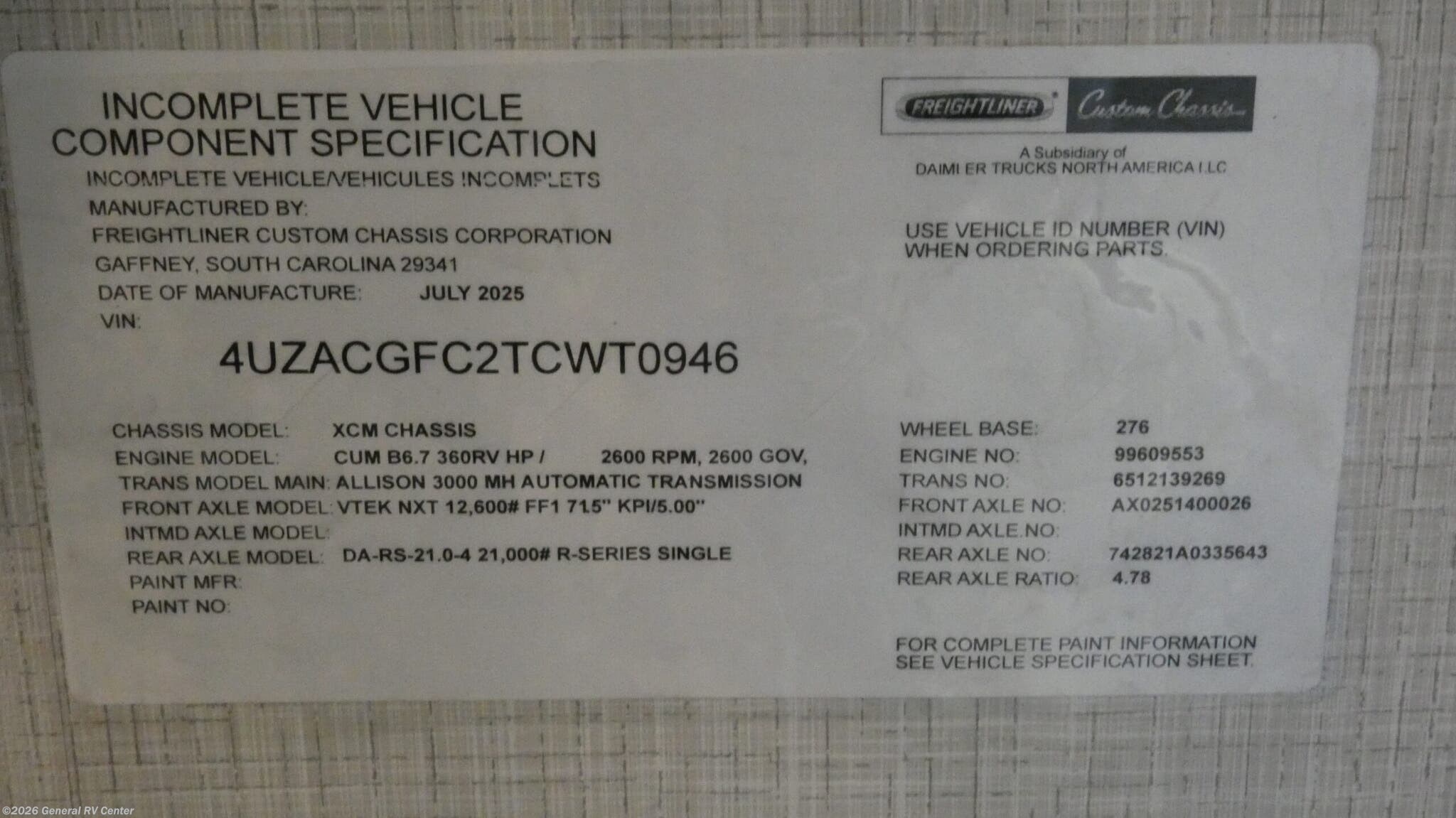 - VIN4UZACGFC2TCWT0946