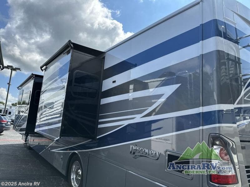 With any Fleetwood Discovery Class A diesel motorhome, the Freedom Bridge custom chassis, the V-Ride rear suspension, and the Cummins B6.7 engine offer a smooth and enjoyable ride to all your destinations. The construction also includes the Powerlock System with interlocking floor, walls and roof, heated fresh water and holding tank compartments, and a full coverage heavy duty undercoating. The interior cabin includes an LED OptiView instrument panel, an air suspension deflation system, and a 10.2" stereo touch screen with lots of functions making traveling easier. And you will love the style of the interior decor and cabinetry, energy efficient LED flush mount ceiling lighting, polished solid surface galley countertop with lighting, residential features throughout, and all the entertainment. Choose to travel and live better in a Discovery!