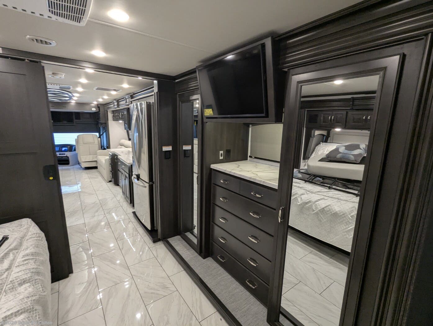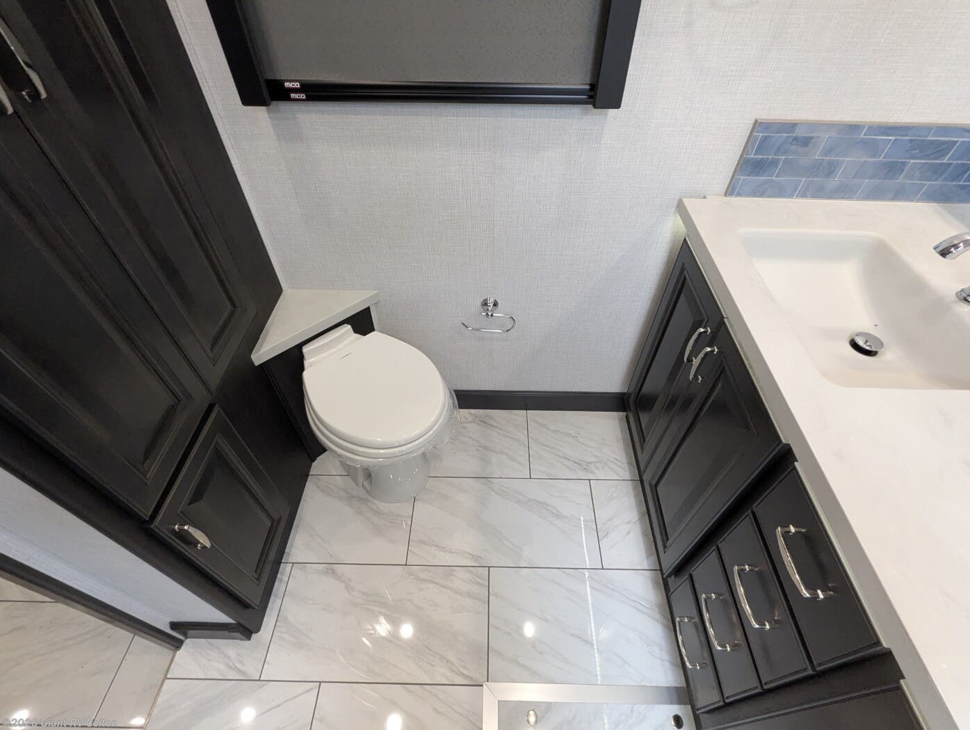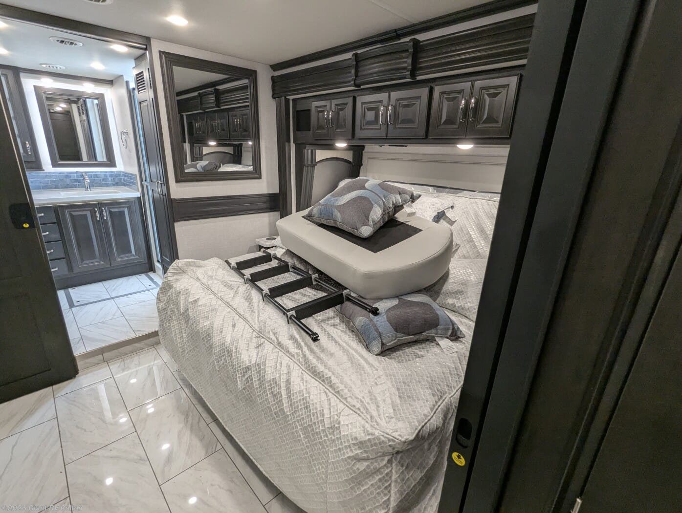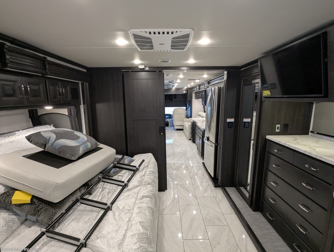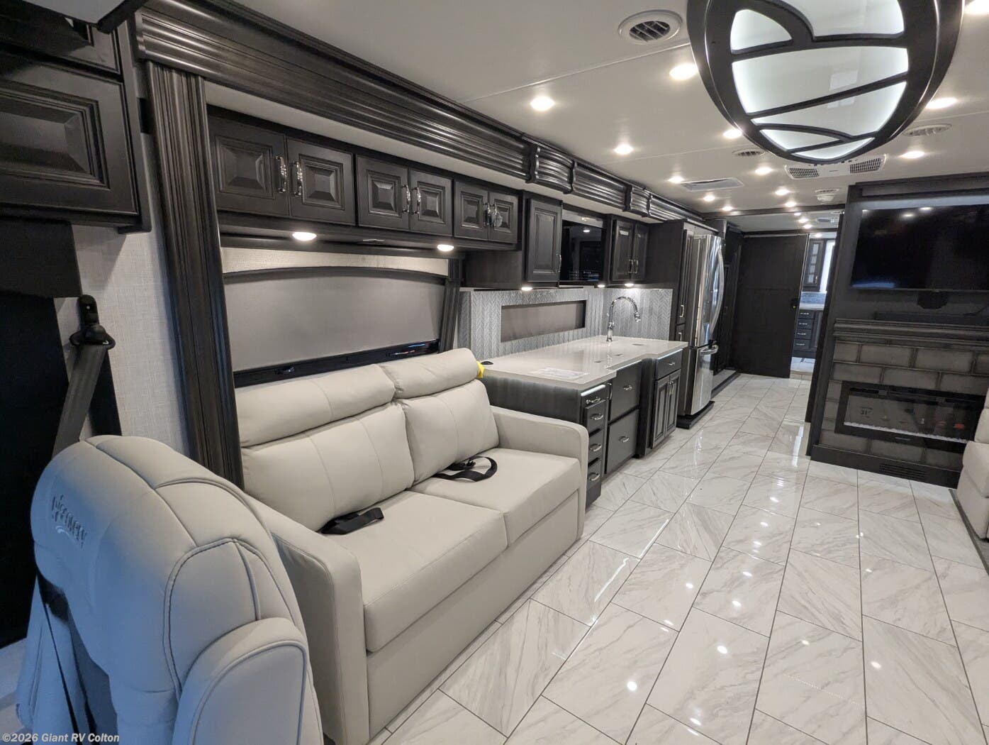- Modern Amenities: Features three 15K BTU A/C units with rear heat pump, a kitchen with residential refrigerator, three-burner cooktop, convection microwave, dishwasher, and dual baths for easy family living.