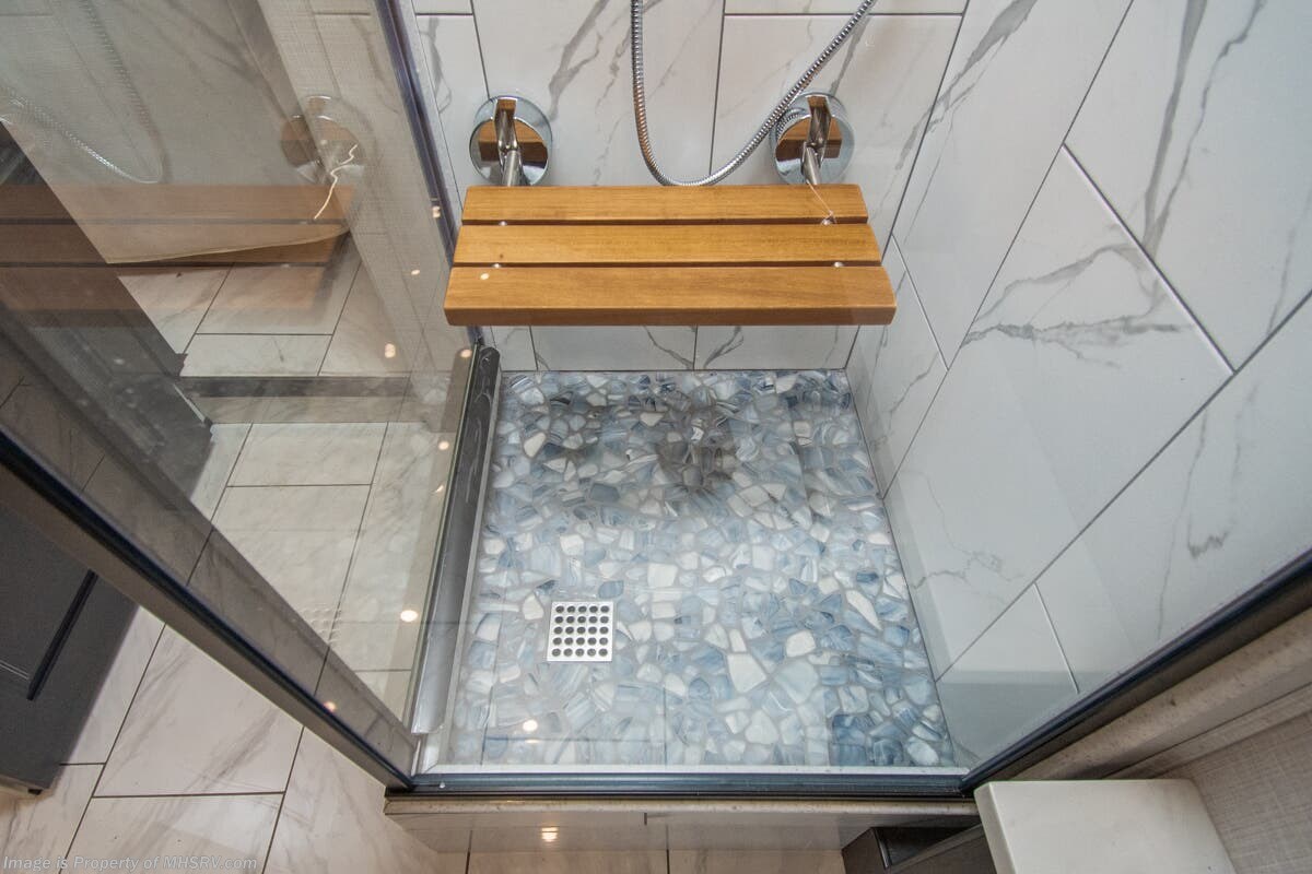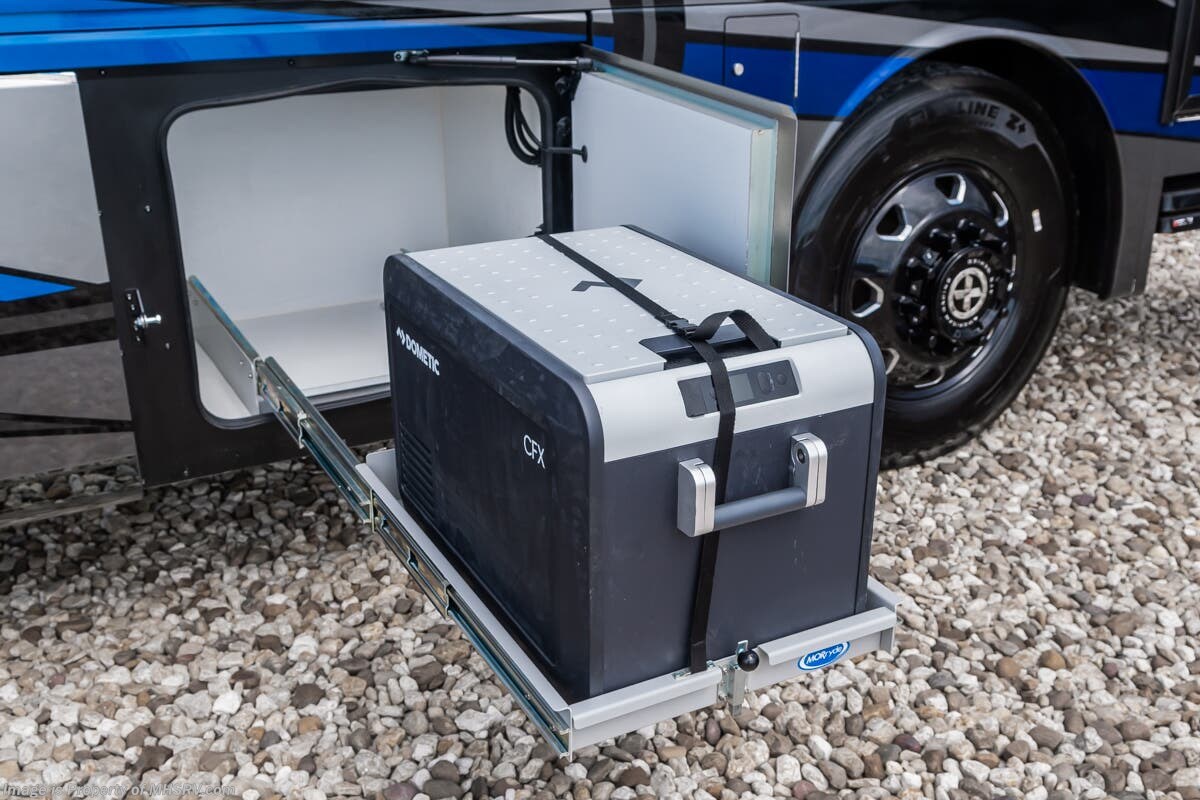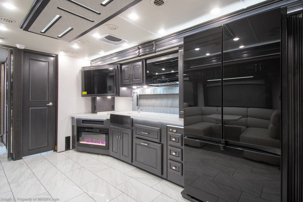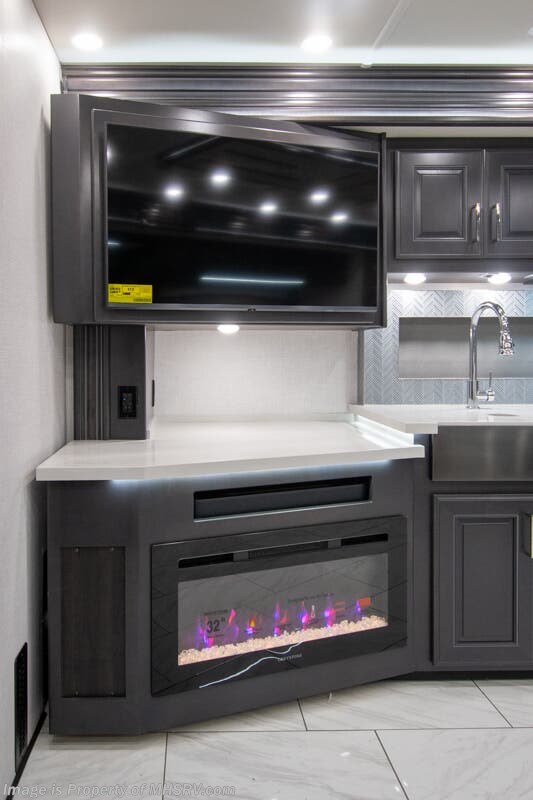 More About This RV This Beautiful RV is approximately 41 feet 4 inches in length and features 2 slides including a full-wall slide, king bed, exterior freezer, fireplace, Cummins L9 diesel engine, Freightliner Freedom Bridge Custom Chassis, Allison 3000 MH transmission, tire pressure monitoring system, heated fresh water and holding tank compartments, molded-fiberglass one-piece roof, automatic hydraulic leveling jacks, 7-way round tow connection, automotive one piece windshield and large living area.
