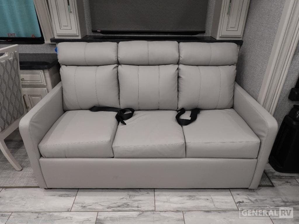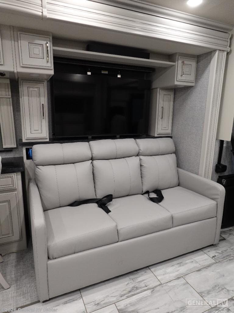 Experience the pinnacle of luxury travel with the 2026 Fleetwood Discovery LXE 40M. This stunning motorhome is designed to accommodate up to nine guests comfortably, making it the perfect choice for families and groups seeking adventure without sacrificing comfort. At the heart of this model is the spacious front living area, featuring plush sofas and a convertible dinette that ensures everyone has a cozy spot to relax. The king-sized bed in the center bedroom promises restful nights, while additional convertible beds offer flexibility for larger groups. The Discovery LXE 40M is equipped with a modern kitchen that boasts a convection microwave and a residential refrigerator, perfect for preparing gourmet meals on the go. The elegant design extends to the bathroom, where you’ll find a stylish shower with glass doors. With an 18 ft. powered retractable awning, outdoor enjoyment is just a button press away. Powered by a robust Cummins I6 Diesel Pusher engine on a Freightliner XC-Series chassis, this RV promises a smooth and powerful drive, whether cruising down highways or exploring scenic byways. Visit your nearest General RV dealership to discover more about this exceptional motorhome.