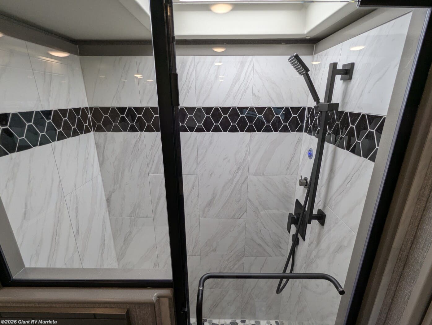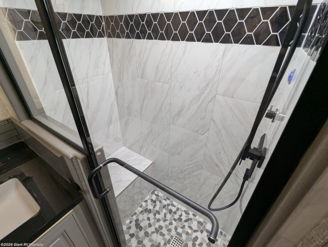 - Durable & Modern Design: Built with a 40’1” length, porcelain tile flooring, full pass-through storage, and automatic hydraulic leveling for reliable camping.