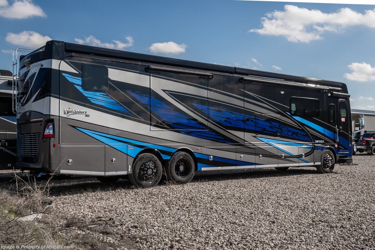 - Window Awning Package Shop hundreds of motorhomes including Diesel Pusher RVs at MHSRV! Choose from American Coach Eagle – Dream – Entegra Coach Cornerstone – Anthem – Aspire – Fleetwood Palisade – Discovery LXE – Holiday Rambler Armada – Foretravel Realm – Foretravel Realm Presidential and more. We also buy and sell quality pre-owned models such Newmar King Aire – Essex – London Aire – Mountain Aire – Dutch Star - Tiffin Zephyr – Allegro Bus – Phaeton – Prevost Liberty Lady – Millennium - Marathon – Newell and much more. Visit for our complete line-up and the sale prices that have made us the #1 volume selling motor home dealership in the world 12 years in a row! About This RV This Beautiful RV is approximately 44 feet in length and features 4 slides, king bed, washer and dryer, and large living area. The Fleetwood Discovery LXE boasts an impressive list of standard features king bed, fireplace, Cummins L9 diesel engine, Freightliner Freedom Bridge Custom Chassis, Allison 3000 MH transmission, tire pressure monitoring system, heated fresh water and holding tank compartments, washer and dryer, molded-fiberglass one-piece roof, automatic hydraulic leveling jacks, 7-way round tow connection, automotive one-piece windshield and large living area. About Us For more details on this unit, our full inventory, brochures, window stickers, videos, photos, and customer reviews, visit or call 800-335-6054 for the Texas location or 334-288-0331 for our Alabama location. At Motor Home Specialist, we never charge prep or orientation fees. Every new RV sale includes a multi-point inspection, full interior and exterior detail. At our Texas location we also offer a high-pressure rain booth test—an exclusive service in the industry. You'll also receive a comprehensive coach orientation with an MHSRV technician and a complimentary night in our delivery park with full hook-ups at our Texas Location. --Why Pay More? Why Settle for Less?—