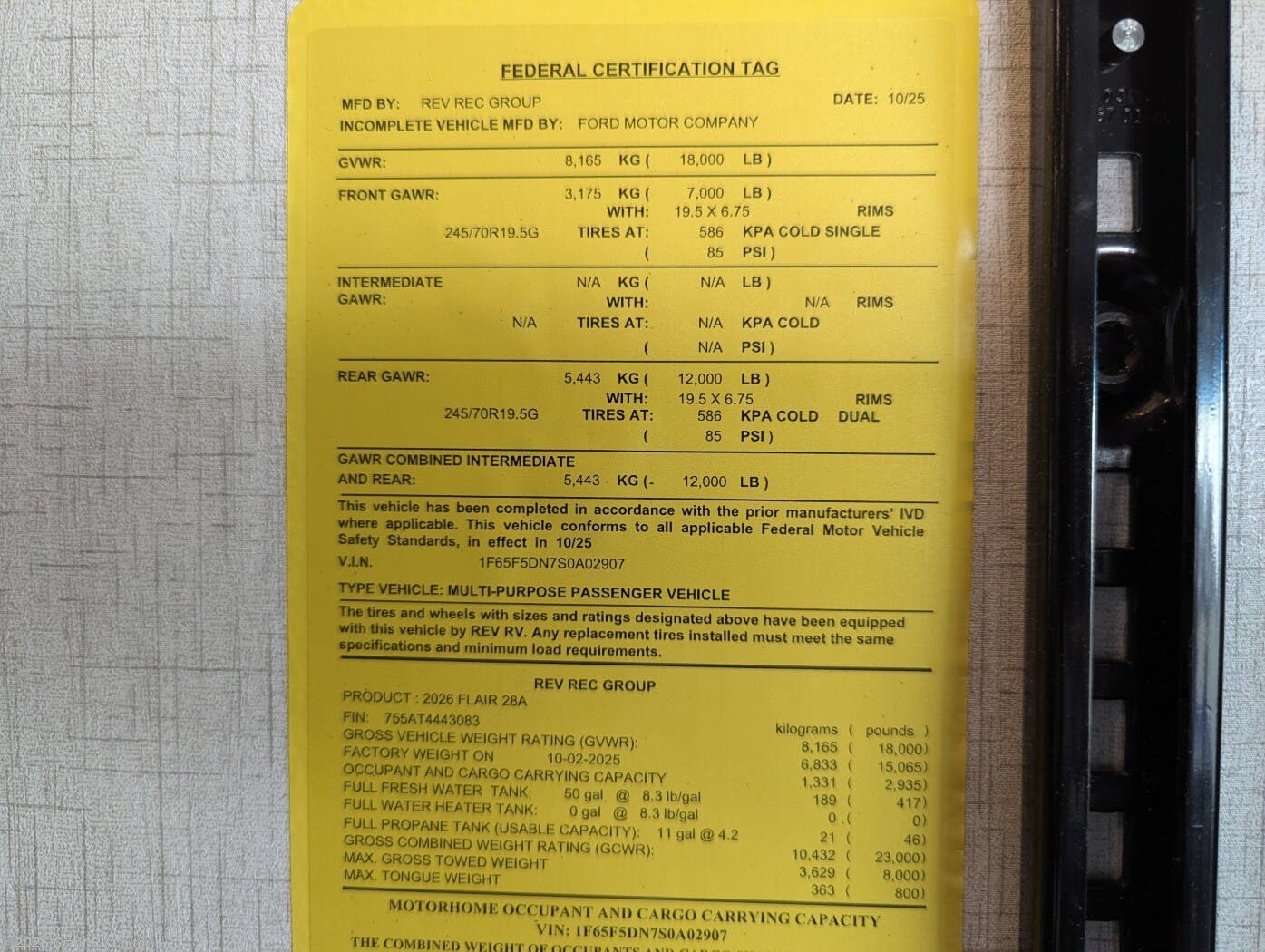 Check out the 2026 Fleetwood Flair 28A, a spacious Class A gas motorhome crafted for comfort and convenience! This new RV features a rear private bedroom layout with two slideouts, modern amenities, and powerful performance for unforgettable camping trips. The 2026 Fleetwood Flair 28A offers style and functionality for your next road trip!