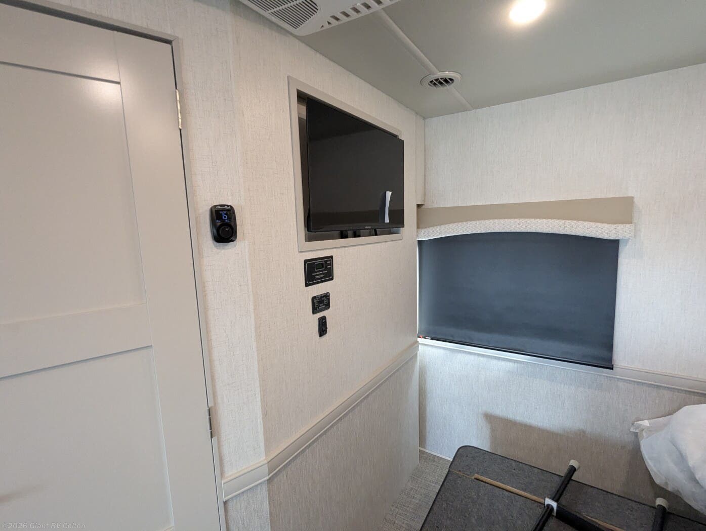 - Modern Amenities and Durability: Features 7.3L 335HP V8 engine with 468 lb-ft torque and 8,000 lb towing capacity, dual 13.5K BTU A/C, exterior LED TV, one-piece bonded windshield, PowerLOCK sidewall-to-roof system, and one-piece fiberglass front cap for reliable all-season adventures.