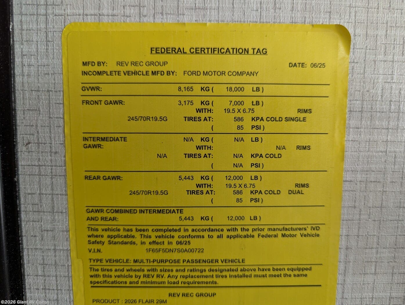 - VIN1F65F5DN7S0A00722