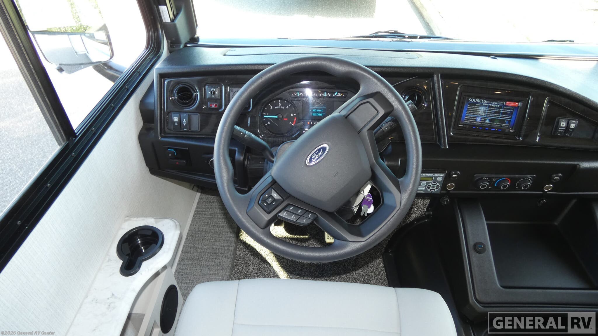 Experience the open road like never before with the 2026 Fleetwood Flair 29M. This remarkable motorhome combines comfort, style, and functionality, making it the perfect companion for both short getaways and extended adventures. With a spacious interior that sleeps up to six, you'll find a serene king-sized bed in the rear bedroom and a cozy queen-sized hide-a-loft bed above the driver's area. The versatile living space features theater seats and an L-shaped dinette, convertible for additional sleeping arrangements, ensuring everyone has a place to rest. The center kitchen is a culinary enthusiast's dream, equipped with a mid-size residential refrigerator and a three-burner cooktop. The layout is designed for seamless living, with a front living area perfect for relaxation and a center bath for convenience. Outside, the 20 ft. powered retractable awning provides ample shade, making it easy to enjoy the exterior kitchen and LED TV for outdoor entertainment. Built on a robust Ford F53 chassis with a powerful 335 horsepower engine, this RV offers a smooth ride and impressive towing capacity. Visit your nearest General RV dealership to explore the Fleetwood Flair 29M and start your journey today!