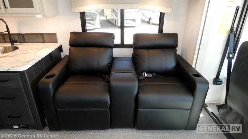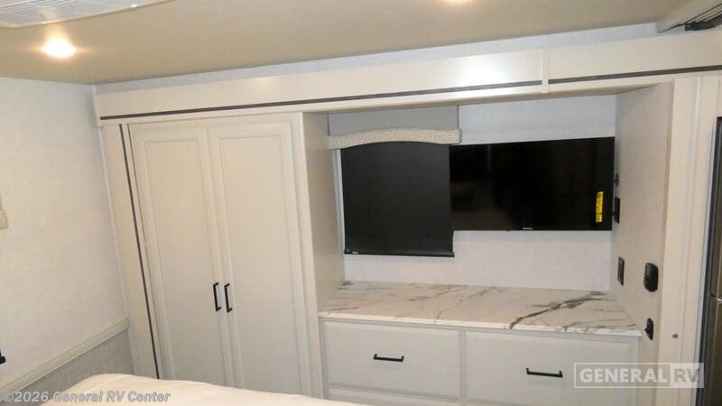Experience the open road like never before with the 2026 Fleetwood Flair 29M. This remarkable motorhome combines comfort, style, and functionality, making it the perfect companion for both short getaways and extended adventures. With a spacious interior that sleeps up to eight, you'll find a serene king-sized bed in the rear bedroom and a cozy queen-sized hide-a-loft bed above the driver's area. The versatile living space features a jackknife sofa and an L-shaped dinette, both convertible for additional sleeping arrangements, ensuring everyone has a place to rest. The center kitchen is a culinary enthusiast's dream, equipped with a mid-size residential refrigerator and a three-burner cooktop. The layout is designed for seamless living, with a front living area perfect for relaxation and a center bath for convenience. Outside, the 20 ft. powered retractable awning provides ample shade, making it easy to enjoy the exterior kitchen and LED TV for outdoor entertainment. Built on a robust Ford F53 chassis with a powerful 335 horsepower engine, this RV offers a smooth ride and impressive towing capacity. Visit your nearest General RV dealership to explore the Fleetwood Flair 29M and start your journey today!