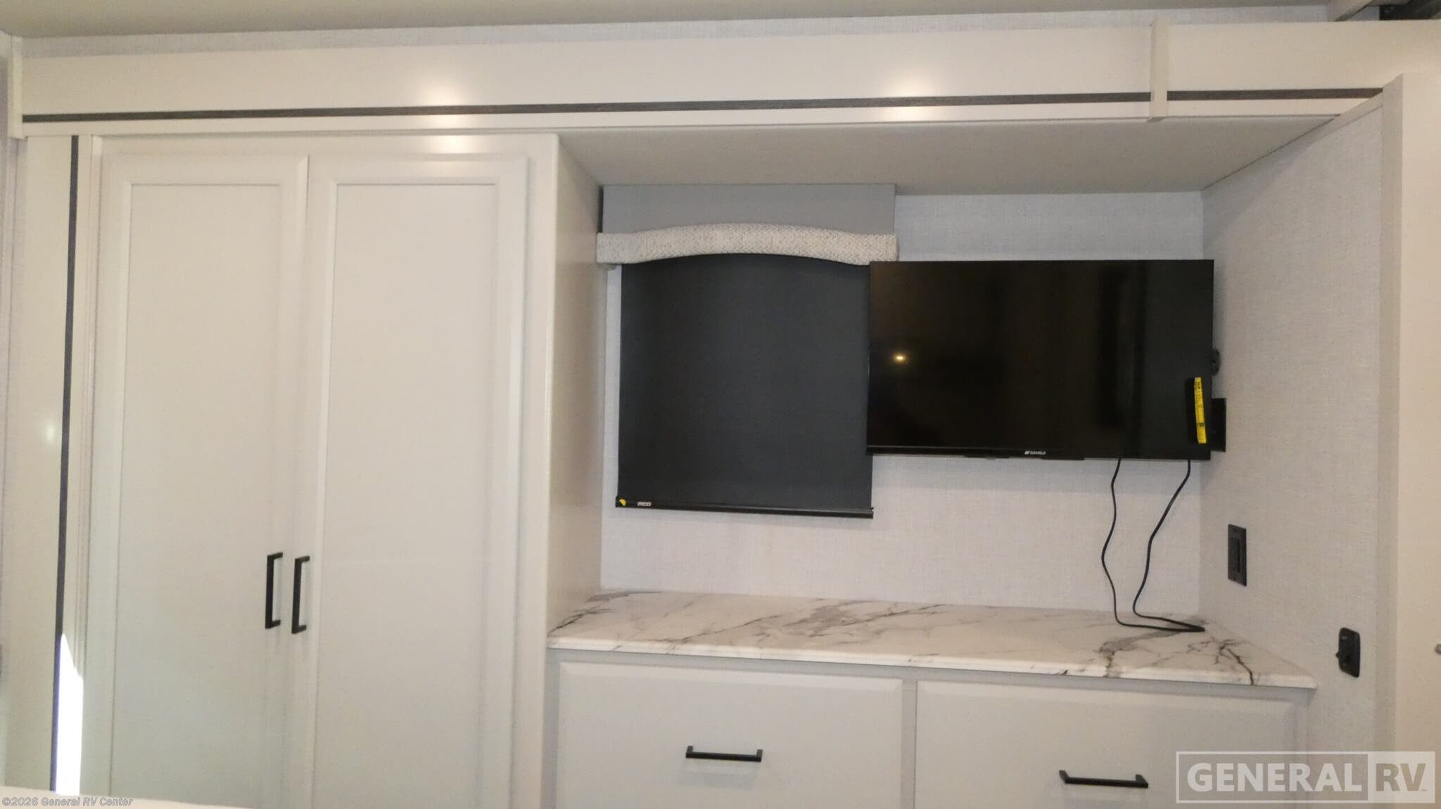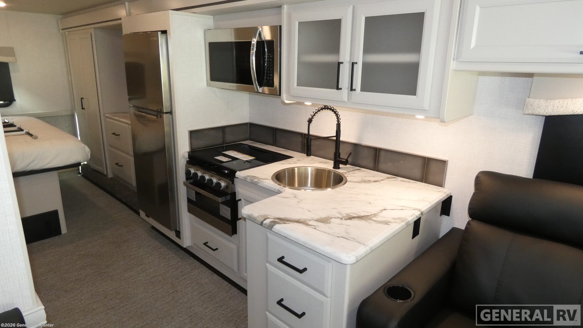 Experience the open road like never before with the 2026 Fleetwood Flair 29M. This remarkable motorhome combines comfort, style, and functionality, making it the perfect companion for both short getaways and extended adventures. With a spacious interior that sleeps up to eight, you'll find a serene king-sized bed in the rear bedroom and a cozy queen-sized hide-a-loft bed above the driver's area. The versatile living space features a jackknife sofa and an L-shaped dinette, both convertible for additional sleeping arrangements, ensuring everyone has a place to rest. The center kitchen is a culinary enthusiast's dream, equipped with a mid-size residential refrigerator and a three-burner cooktop. The layout is designed for seamless living, with a front living area perfect for relaxation and a center bath for convenience. Outside, the 20 ft. powered retractable awning provides ample shade, making it easy to enjoy the exterior kitchen and LED TV for outdoor entertainment. Built on a robust Ford F53 chassis with a powerful 335 horsepower engine, this RV offers a smooth ride and impressive towing capacity. Visit your nearest General RV dealership to explore the Fleetwood Flair 29M and start your journey today!