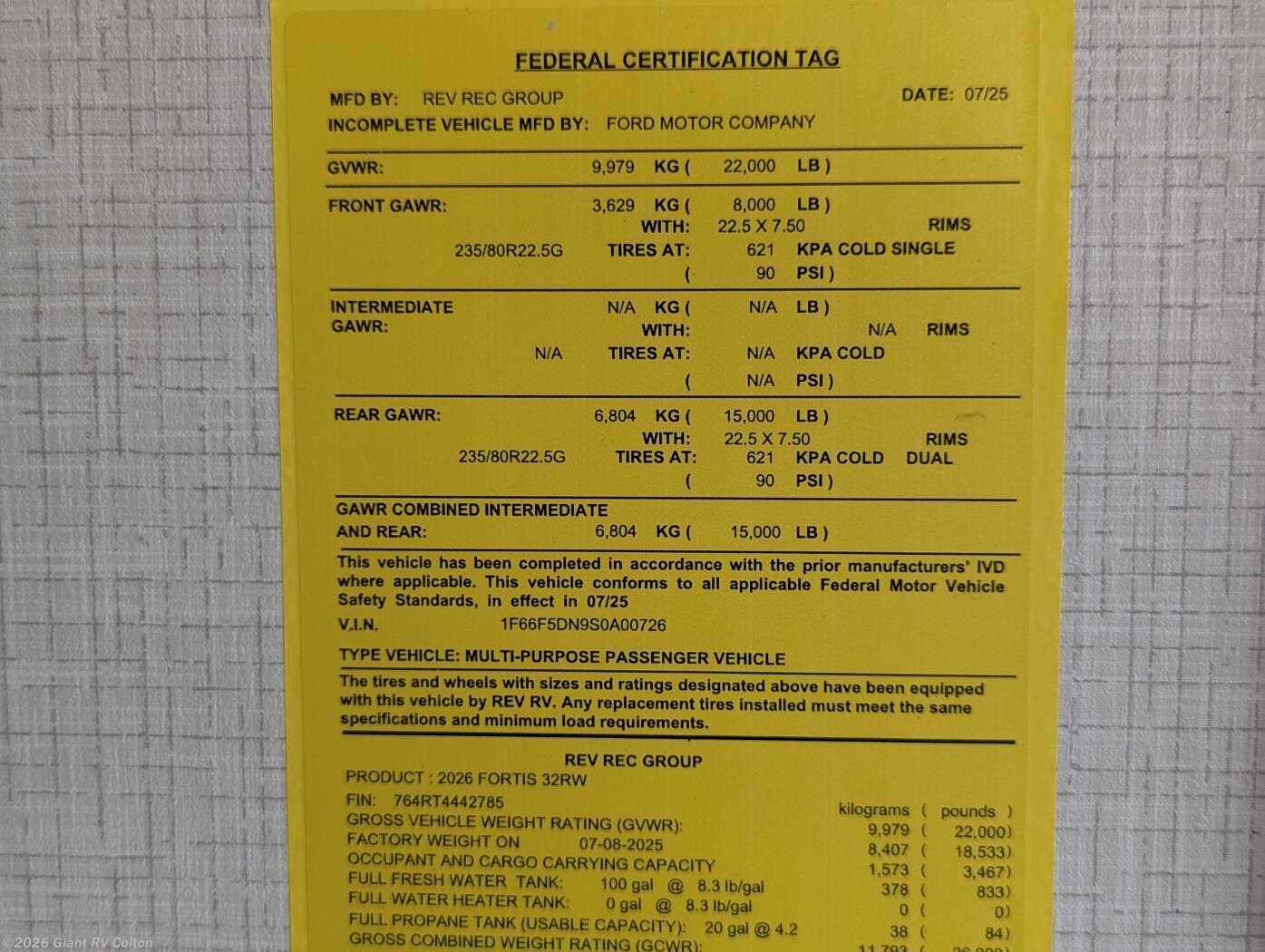 Request More Info on this 2026 Fleetwood Fortis 32RW Offered for sale by Giant RV