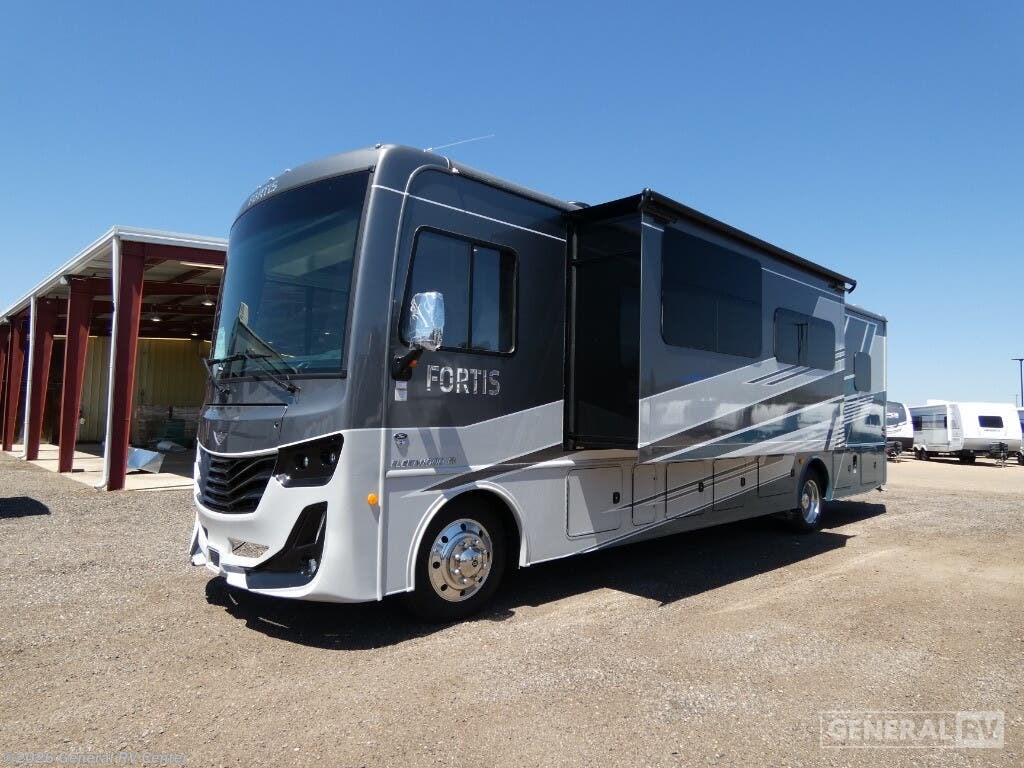 Experience the perfect blend of luxury and functionality with the 2026 Fleetwood Fortis 34MB. This motorhome is designed to accommodate up to eight guests comfortably, featuring a serene King bed, and two versatile convertible beds. The front kitchen layout, equipped with a full-size electric refrigerator and a three-burner cooktop, makes meal preparation a delight, while the center living area offers a spacious haven with a jackknife sofa and dream dinette for relaxation and entertainment. The Fortis 34MB ensures a seamless travel experience with its powerful Ford F53 chassis, boasting 335 horsepower and 468 torque. Despite its robust capabilities, it maintains a sleek profile at 35.75 feet in length and 12.83 feet in height. Enjoy the convenience of a 20-foot powered retractable awning for outdoor leisure, while the interior features a center bath with a stylish plastic/glass shower. With a generous 100-gallon fresh water capacity and ample storage, this RV is your ultimate companion for extended adventures. Discover more at your nearest General RV dealership and elevate your travel lifestyle today!