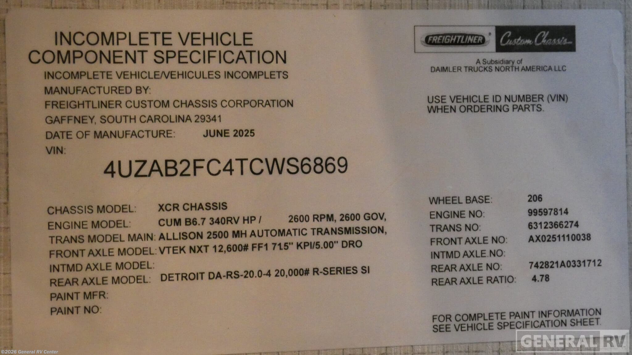 - VIN4UZAB2FC4TCWS6869