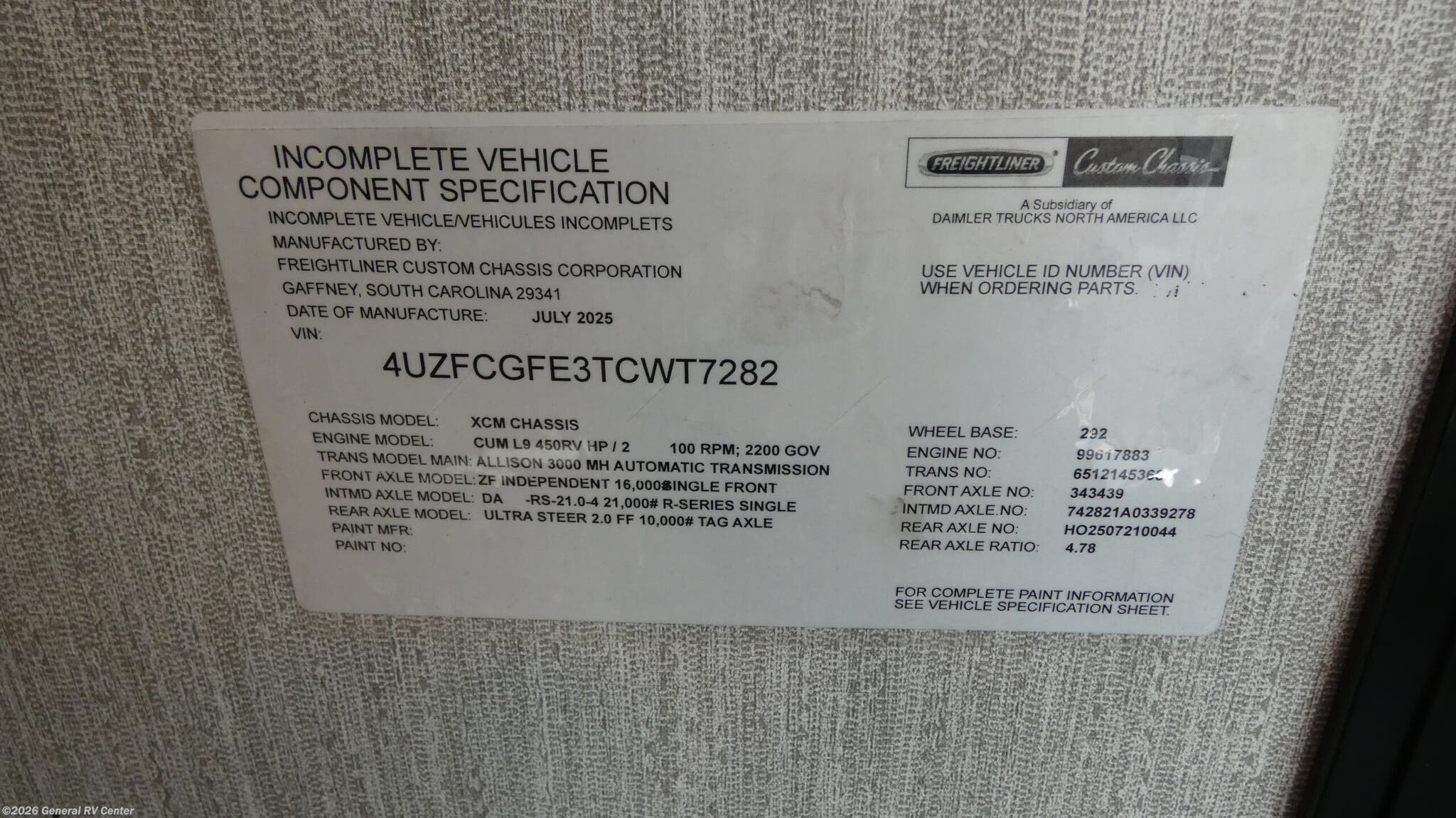 - VIN4UZFCGFE3TCWT7282