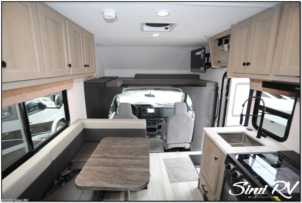 The Forester 2351ALEF provides all the amentities of home in a stylish Class C motorhome. There is a queen-size cab-over bunk that can be utilized as extra sleeping space (or storage) plus a rear queen bedroom. The U-dinette provides additional sleeping space after dining, playing games and relaxing. The kitchen offers a 10.7 cu. ft. 12V refrigerator, a convection microwave, a recessed three-burner range, soft touch self-closing drawer guides and a cordless 12V charging plate. The private toilet and shower room gives you a place to get cleaned up, and the bathroom sink is just outside the door.