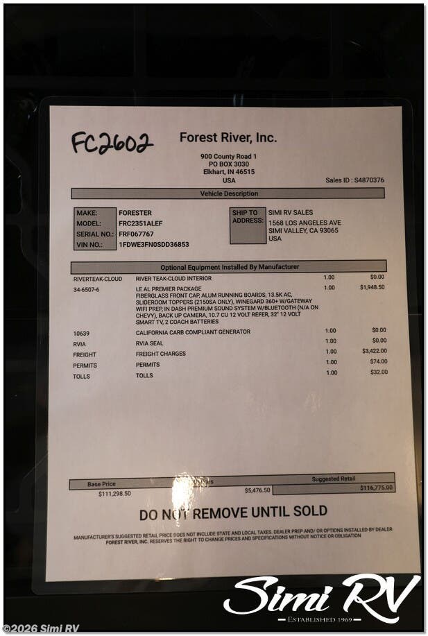 Request More Info on this 2026 Forest River 2351ALEF Offered for sale by Simi RV