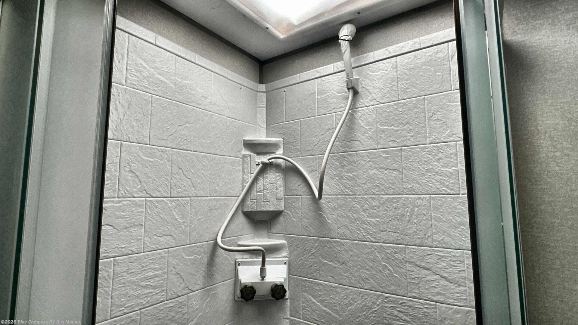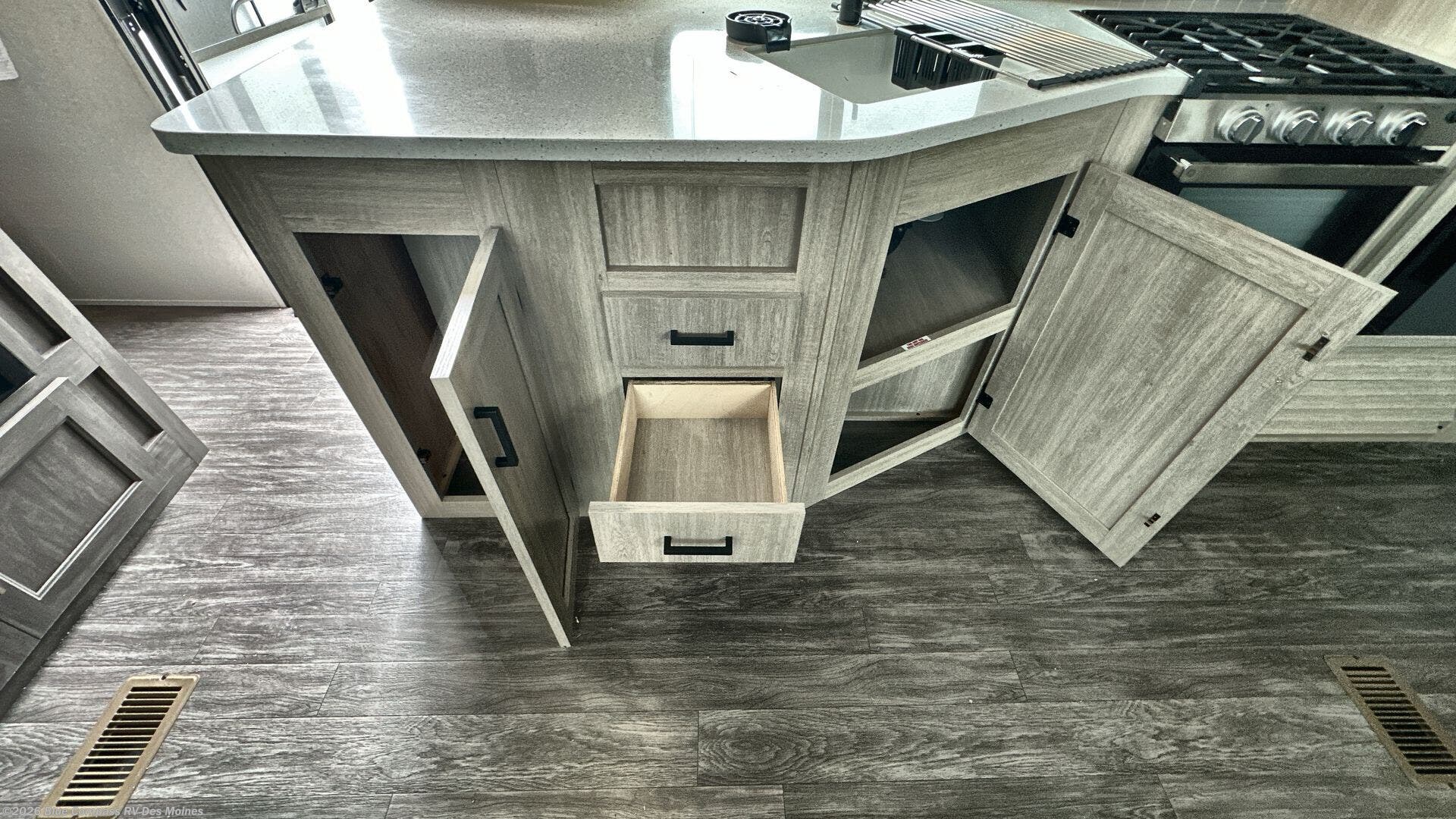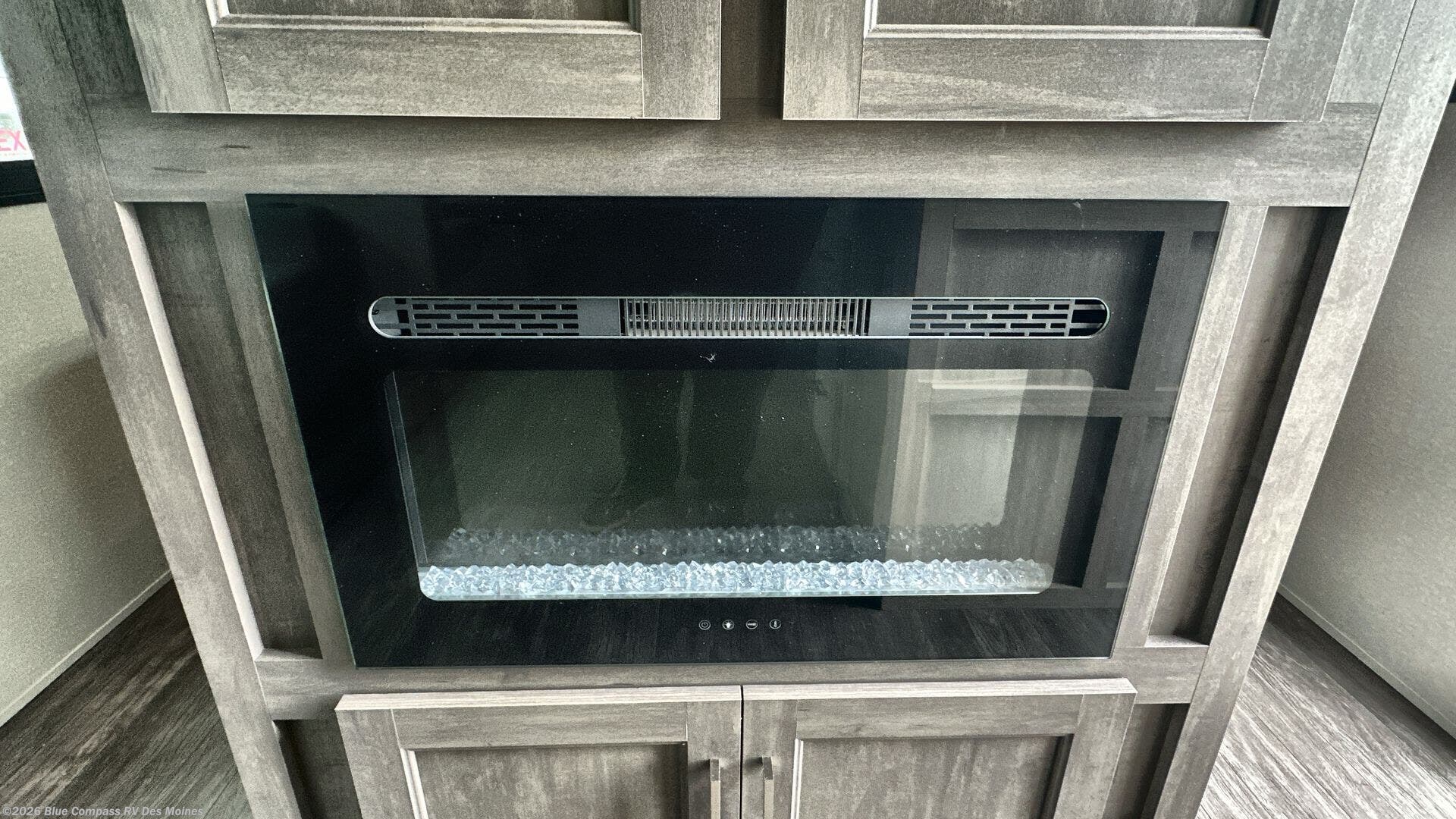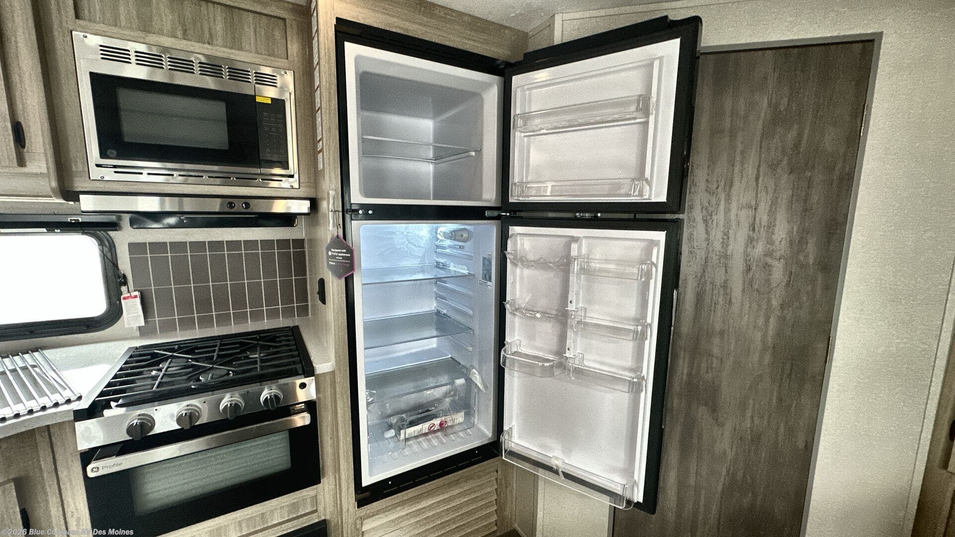When you are ready to camp with your favorite person, this trailer offers the perfect couples trailer with space for an overnight guest on the booth dinette. You will have a front bedroom with a walk-around queen bed, dual wardrobes and overhead cabinets for your belongings. The main living and kitchen area is spacious with a slide out dinette and sofa giving you more floor space, dining and relaxing seating, and extra sleeping space for friends once the furniture is easily setup. There is a wardrobe/pantry next to the rear corner bathroom complete with a radius shower. The galley kitchen includes full amenities, plus there is an outside kitchen with a griddle and mini refrigerator. Everyone will enjoy the entertainment center when inside, and the 18' awning offers a covered outdoor living area, just grab your chairs from the pass-through compartment.