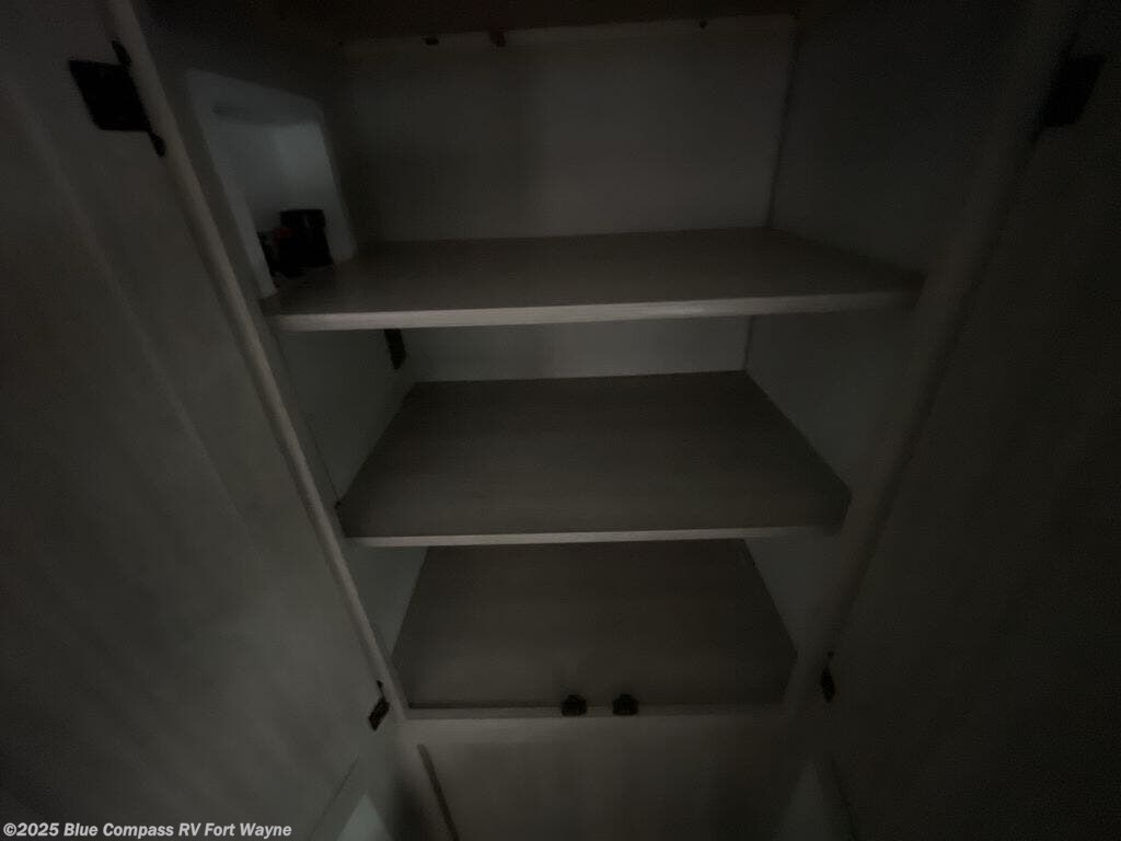 When you are ready to camp with your favorite person, this trailer offers the perfect couples trailer with space for an overnight guest on the booth dinette. You will have a front bedroom with a walk-around queen bed, dual wardrobes and overhead cabinets for your belongings. The main living and kitchen area is spacious with a slide out dinette and sofa giving you more floor space, dining and relaxing seating, and extra sleeping space for friends once the furniture is easily setup. There is a wardrobe/pantry next to the rear corner bathroom complete with a radius shower. The galley kitchen includes full amenities, plus there is an outside kitchen with a griddle and mini refrigerator. Everyone will enjoy the entertainment center when inside, and the 18' awning offers a covered outdoor living area, just grab your chairs from the pass-through compartment.