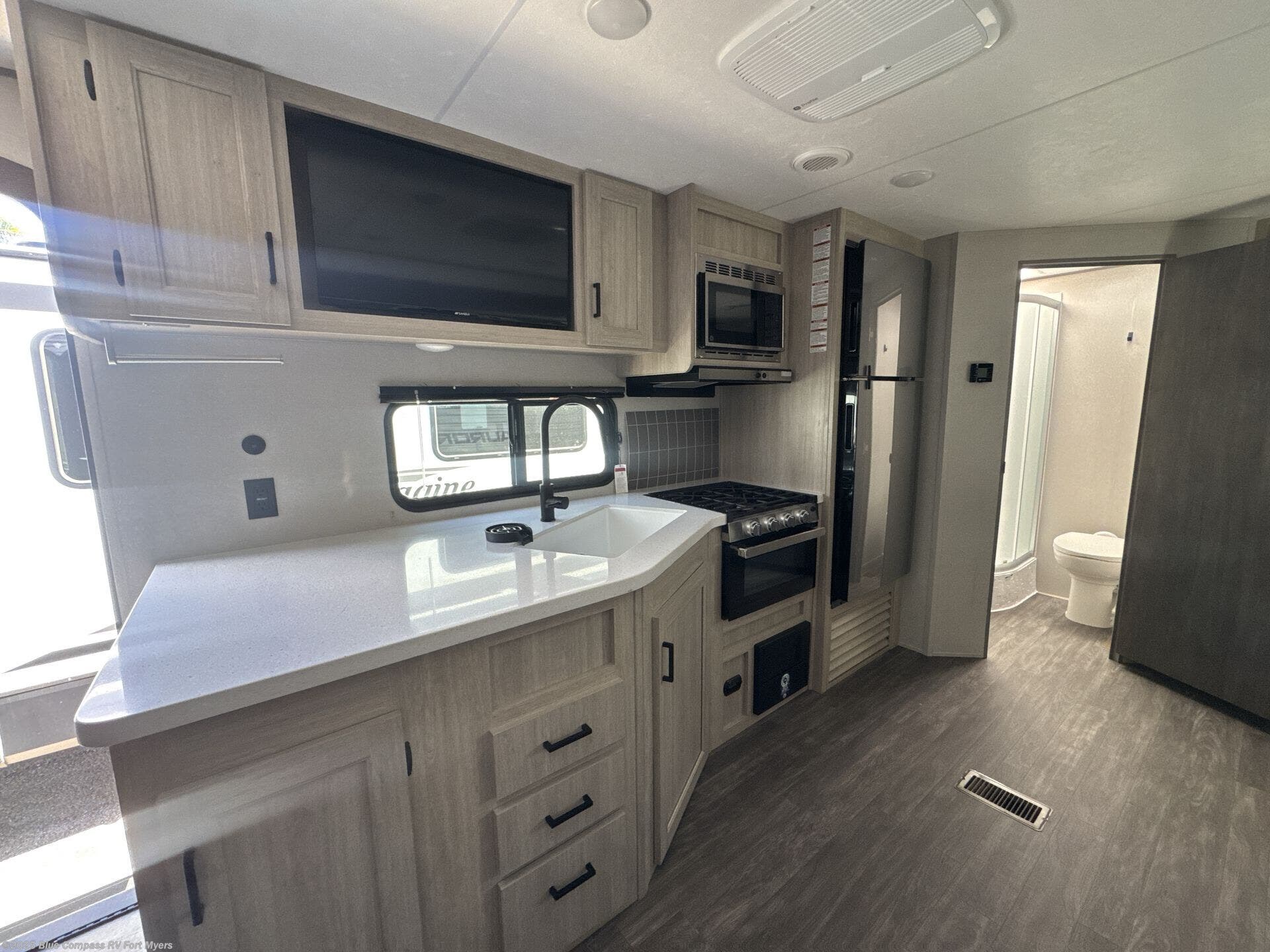 Comfortability, usability, and quality is what you will find in each one of these Forest River Aurora travel trailers, toy haulers or destination trailers! They are designed with a superior build and packed full with industry leading, functional, and distinctive standard features. SolidStep entrance steps and a Safe-T rail door assist on main entry door to help you safely enter and exit the unit. The diamond plate rock guard will protect your unit from road debris and the nitrogen filled radial tires, which keep their pressure longer, offer better fuel economy. You will also find upgraded JBL Elite exterior speakers outside, an electric awning with multicolor lights and remote, plus flush mount baggage doors for easy packing. The interiors are beautifully designed with a deep undermount farm style sink, stainless steel appliances, and linoleum flooring in the slide outs which will be easy to clean. Come find your favorite model today!