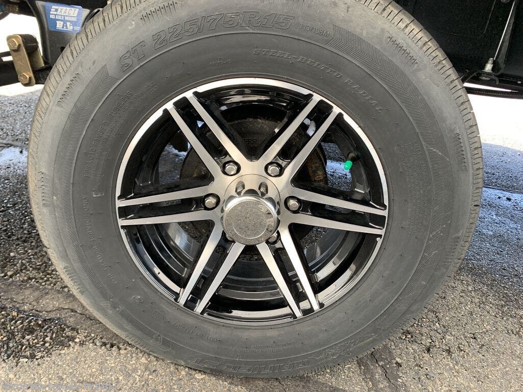When you are ready to camp with your favorite person, this trailer offers the perfect couple's trailer with space for an overnight guest on the booth dinette. You will have a front bedroom with a walk-around queen bed, dual wardrobes and overhead cabinets for your belongings. The main living and kitchen area is spacious with a slide out dinette and sofa giving you more floor space, dining and relaxing seating, and extra sleeping space for friends once the furniture is easily setup. There is a wardrobe/pantry with washer/dryer prep next to the rear corner bathroom complete with a radius shower. The galley kitchen includes full amenities, plus there is an outside kitchen with a griddle and mini refrigerator. Everyone will enjoy the entertainment center when inside, and the 21' awning offers a covered outdoor living area, just grab your chairs from the pass-through compartment.