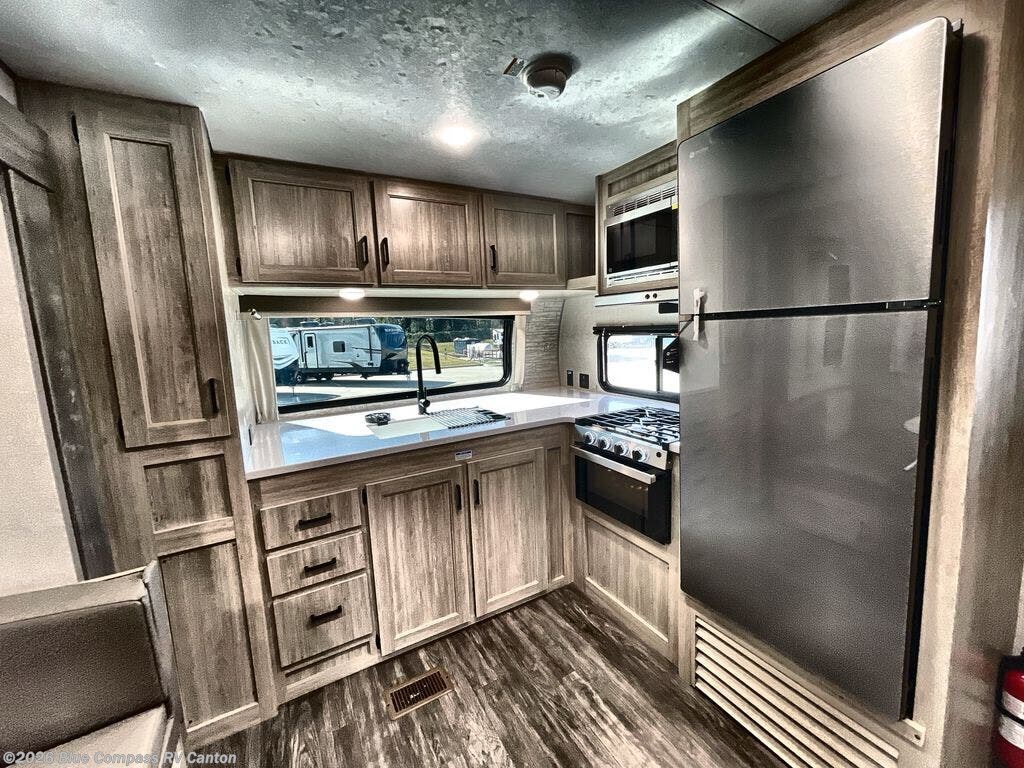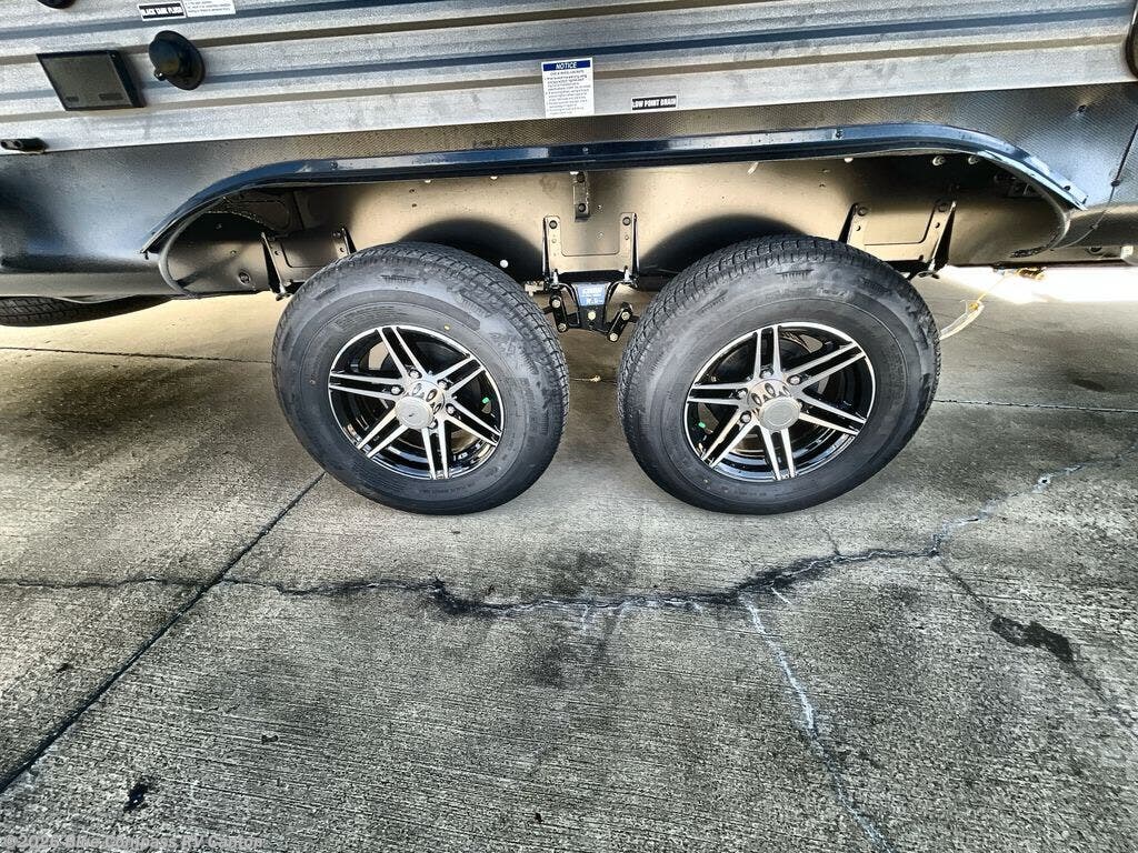 You're going to love every minute spent in this travel trailer with double slide outs and double entry doors. The front kitchen includes ample counter space to prep and cook meals, plus there are two pantries for storage space. Your crew can get comfortable on the 68" sofa or play a game at the 45" booth dinette. There is also an entertainment center with a LED TV for movie night, or you might head outdoors to relax under the 18' awning. The exterior camper kitchen here includes a griddle and a mini refrigerator the chef of your group is sure to love. When it's time to call it a night, head to the rear master bedroom that includes a 60" x 74" queen bed slide out, a large wardrobe, plus your own entrance into the dual entry bath!