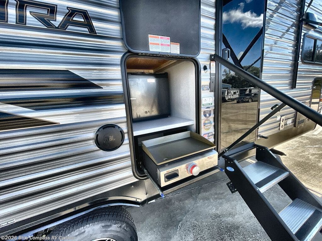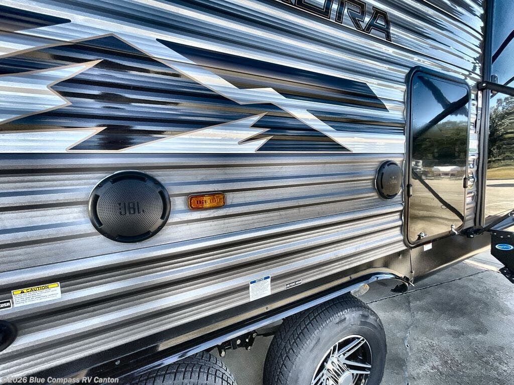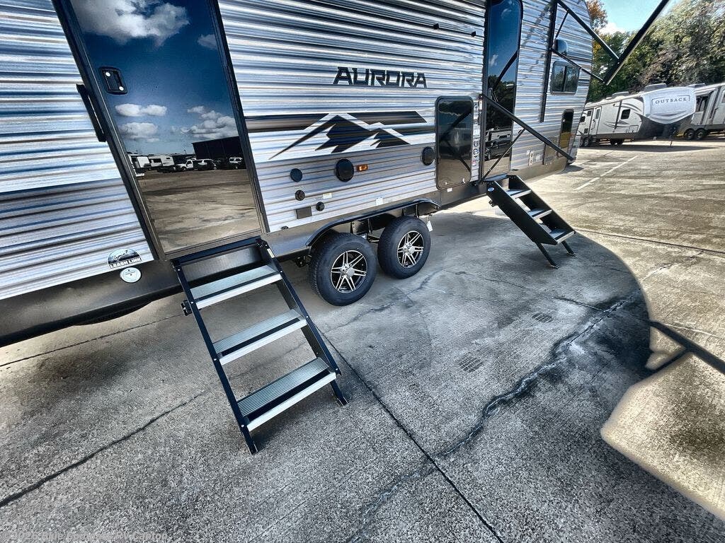 Comfortability, usability, and quality is what you will find in each one of these Forest River Aurora travel trailers, toy haulers or destination trailers! They are designed with a superior build and packed full with industry leading, functional, and distinctive standard features. SolidStep entrance steps and a Safe-T rail door assist on main entry door to help you safely enter and exit the unit. The diamond plate rock guard will protect your unit from road debris and the nitrogen filled radial tires, which keep their pressure longer, offer better fuel economy. You will also find upgraded JBL Elite exterior speakers outside, an electric awning with multicolor lights and remote, plus flush mount baggage doors for easy packing. The interiors are beautifully designed with a deep undermount farm style sink, stainless steel appliances, and linoleum flooring in the slide outs which will be easy to clean. Come find your favorite model today!