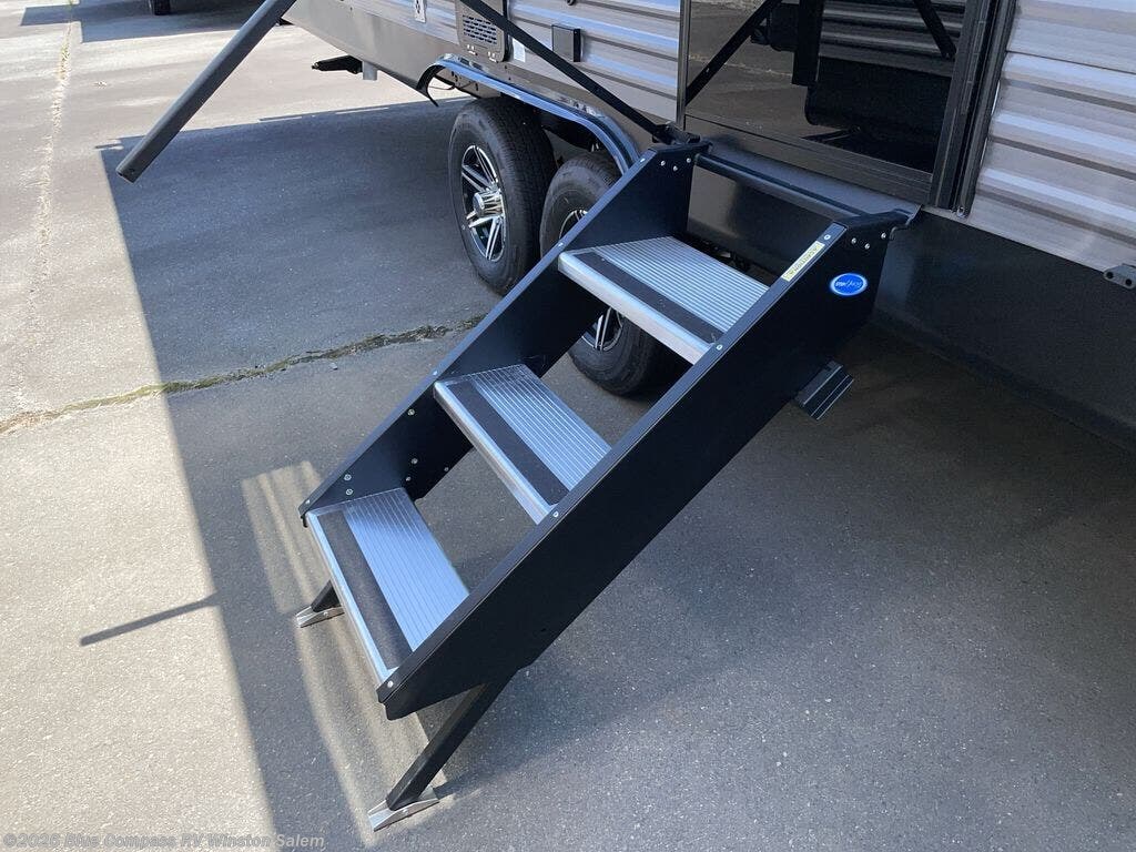 Comfortability, usability, and quality is what you will find in each one of these Forest River Aurora travel trailers, toy haulers or destination trailers! They are designed with a superior build and packed full with industry leading, functional, and distinctive standard features. SolidStep entrance steps and a Safe-T rail door assist on main entry door to help you safely enter and exit the unit. The diamond plate rock guard will protect your unit from road debris and the nitrogen filled radial tires, which keep their pressure longer, offer better fuel economy. You will also find upgraded JBL Elite exterior speakers outside, an electric awning with multicolor lights and remote, plus flush mount baggage doors for easy packing. The interiors are beautifully designed with a deep undermount farm style sink, stainless steel appliances, and linoleum flooring in the slide outs which will be easy to clean. Come find your favorite model today!