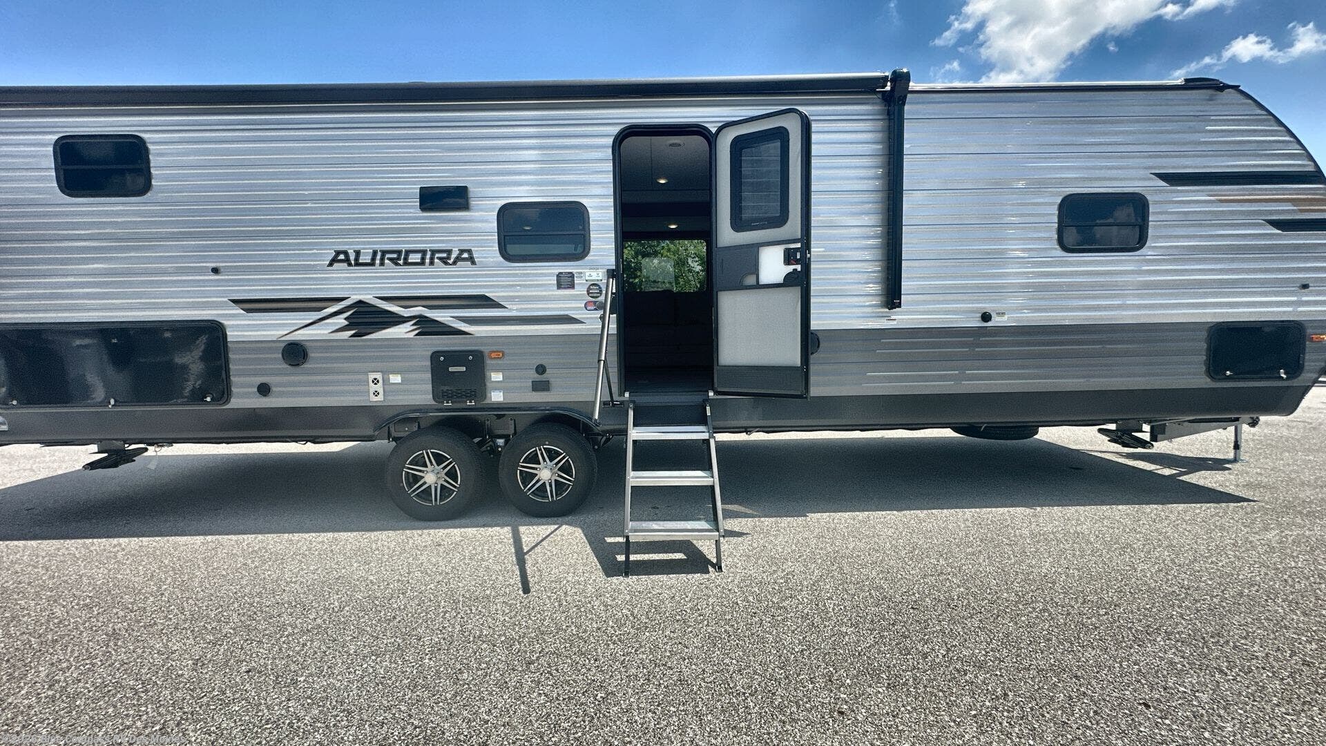 Comfortability, usability, and quality is what you will find in each one of these Forest River Aurora travel trailers, toy haulers or destination trailers! They are designed with a superior build and packed full with industry leading, functional, and distinctive standard features. SolidStep entrance steps and a Safe-T rail door assist on main entry door to help you safely enter and exit the unit. The diamond plate rock guard will protect your unit from road debris and the nitrogen filled radial tires, which keep their pressure longer, offer better fuel economy. You will also find upgraded JBL Elite exterior speakers outside, an electric awning with multicolor lights and remote, plus flush mount baggage doors for easy packing. The interiors are beautifully designed with a deep undermount farm style sink, stainless steel appliances, and linoleum flooring in the slide outs which will be easy to clean. Come find your favorite model today!