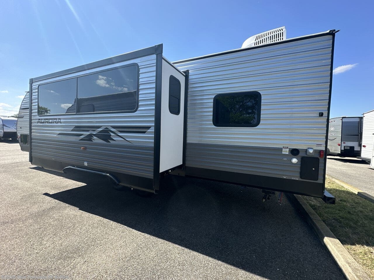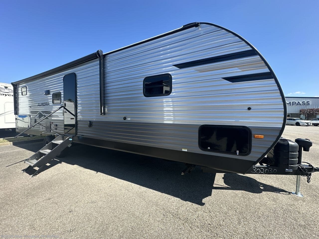 Comfortability, usability, and quality is what you will find in each one of these Forest River Aurora travel trailers, toy haulers or destination trailers! They are designed with a superior build and packed full with industry leading, functional, and distinctive standard features. SolidStep entrance steps and a Safe-T rail door assist on main entry door to help you safely enter and exit the unit. The diamond plate rock guard will protect your unit from road debris and the nitrogen filled radial tires, which keep their pressure longer, offer better fuel economy. You will also find upgraded JBL Elite exterior speakers outside, an electric awning with multicolor lights and remote, plus flush mount baggage doors for easy packing. The interiors are beautifully designed with a deep undermount farm style sink, stainless steel appliances, and linoleum flooring in the slide outs which will be easy to clean. Come find your favorite model today!