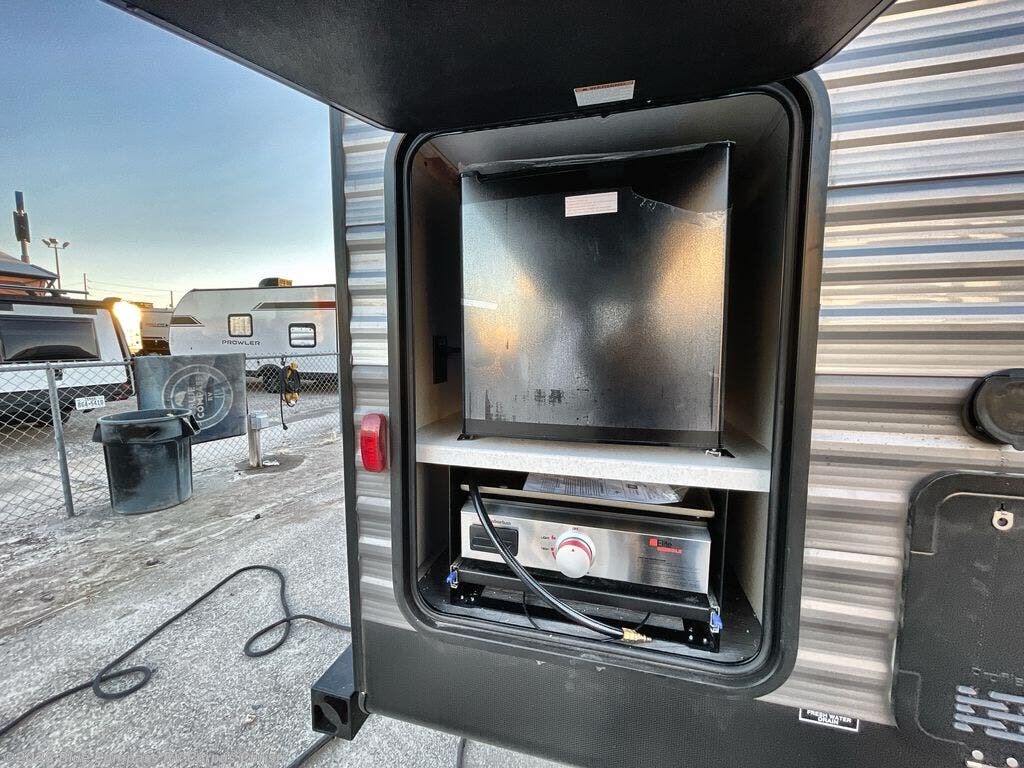 Comfortability, usability, and quality is what you will find in each one of these Forest River Aurora travel trailers, toy haulers or destination trailers! They are designed with a superior build and packed full with industry leading, functional, and distinctive standard features. SolidStep entrance steps and a Safe-T rail door assist on main entry door to help you safely enter and exit the unit. The diamond plate rock guard will protect your unit from road debris and the nitrogen filled radial tires, which keep their pressure longer, offer better fuel economy. You will also find upgraded JBL Elite exterior speakers outside, an electric awning with multicolor lights and remote, plus flush mount baggage doors for easy packing. The interiors are beautifully designed with a deep undermount farm style sink, stainless steel appliances, and linoleum flooring in the slide outs which will be easy to clean. Come find your favorite model today!