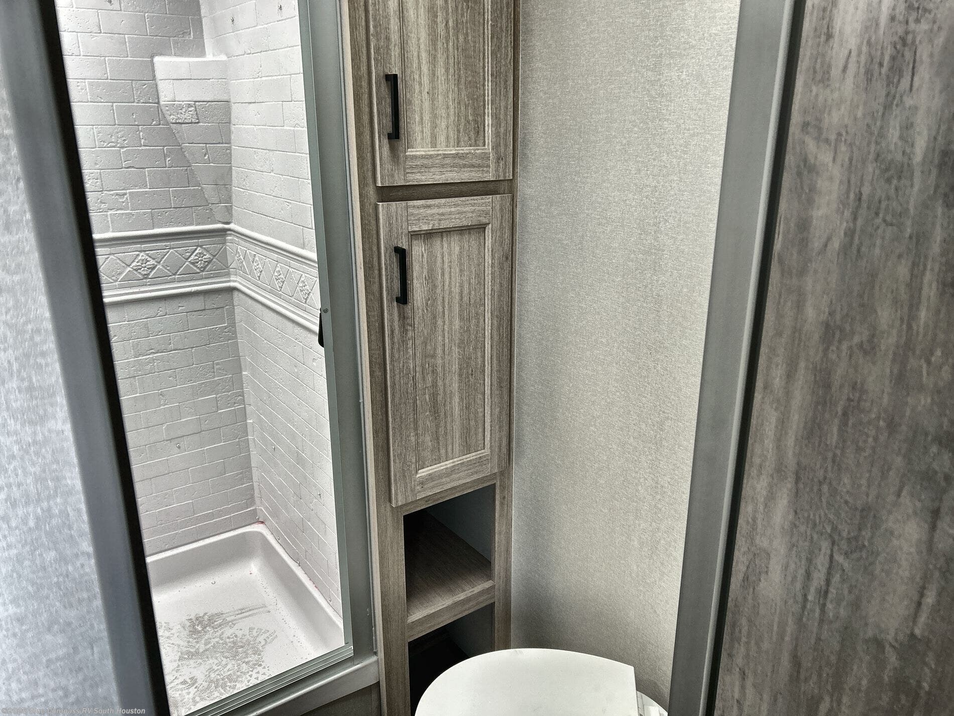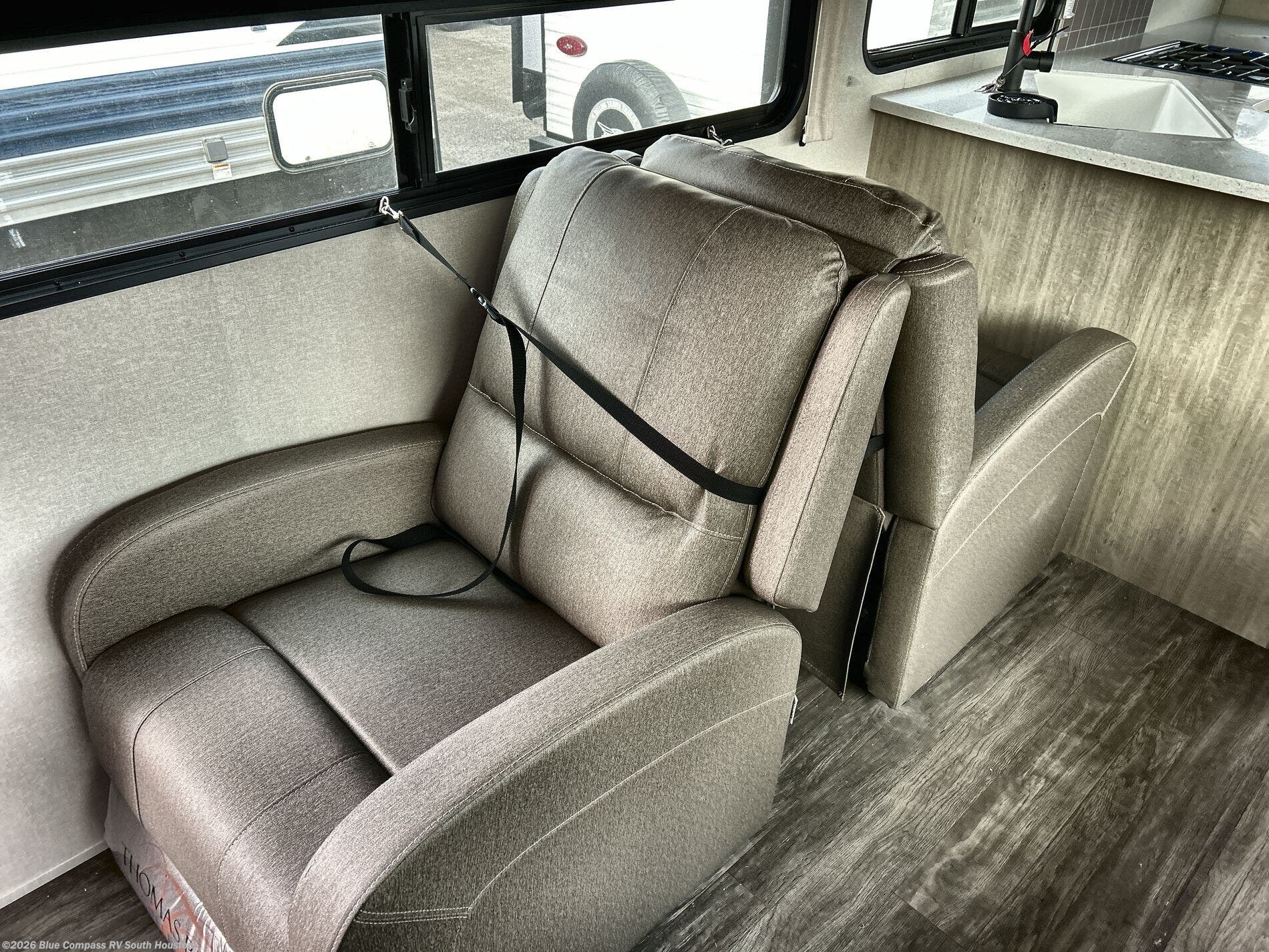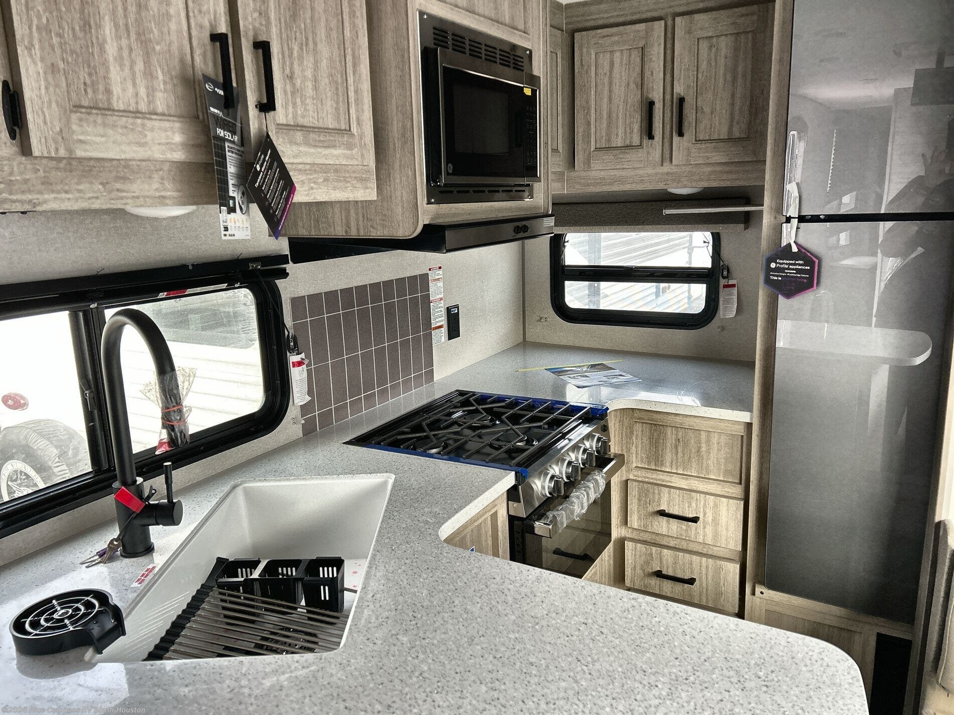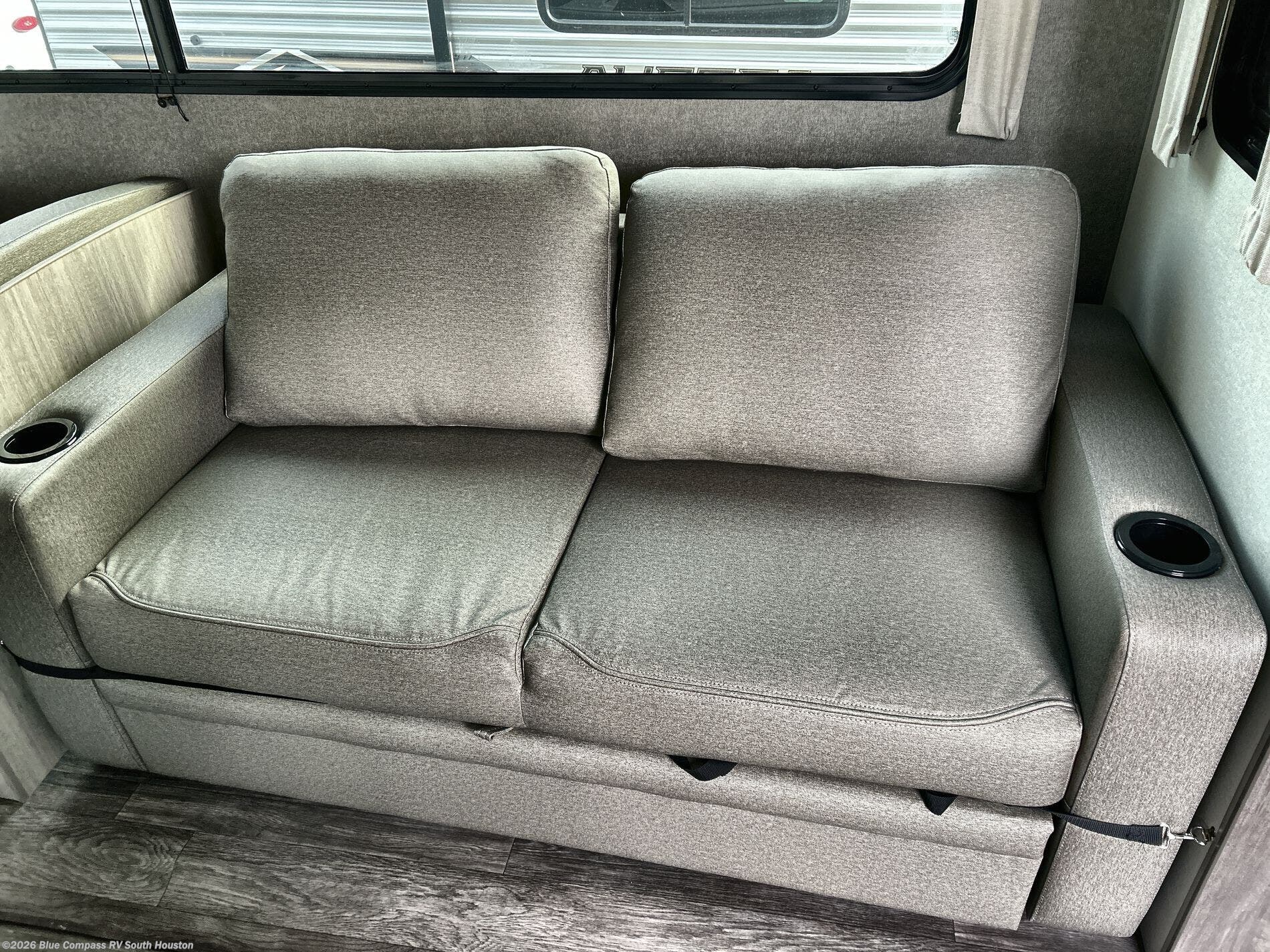 The chef will love cooking in the rear kitchen of this travel trailer! You will feel right at home in the front private bedroom with the 60" x 74" queen bed slide across from a dresser and a front closet that has an area prepped for an optional washer and dryer. There is an optional fireplace and entertainment center in the living area in by the two lounge chairs and the 68" sofa next to the 45" booth dinette. Stay clean and fresh with the 36" x 30" shower pan with a skylight above for natural lighting as you get ready in the full bathroom. The 21' electric awning has multicolor lights for you to choose your favorite color as you enjoy a refreshing beverage from the mini fridge!