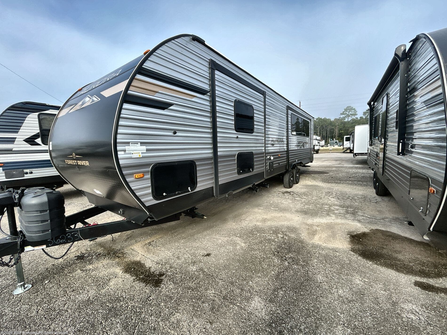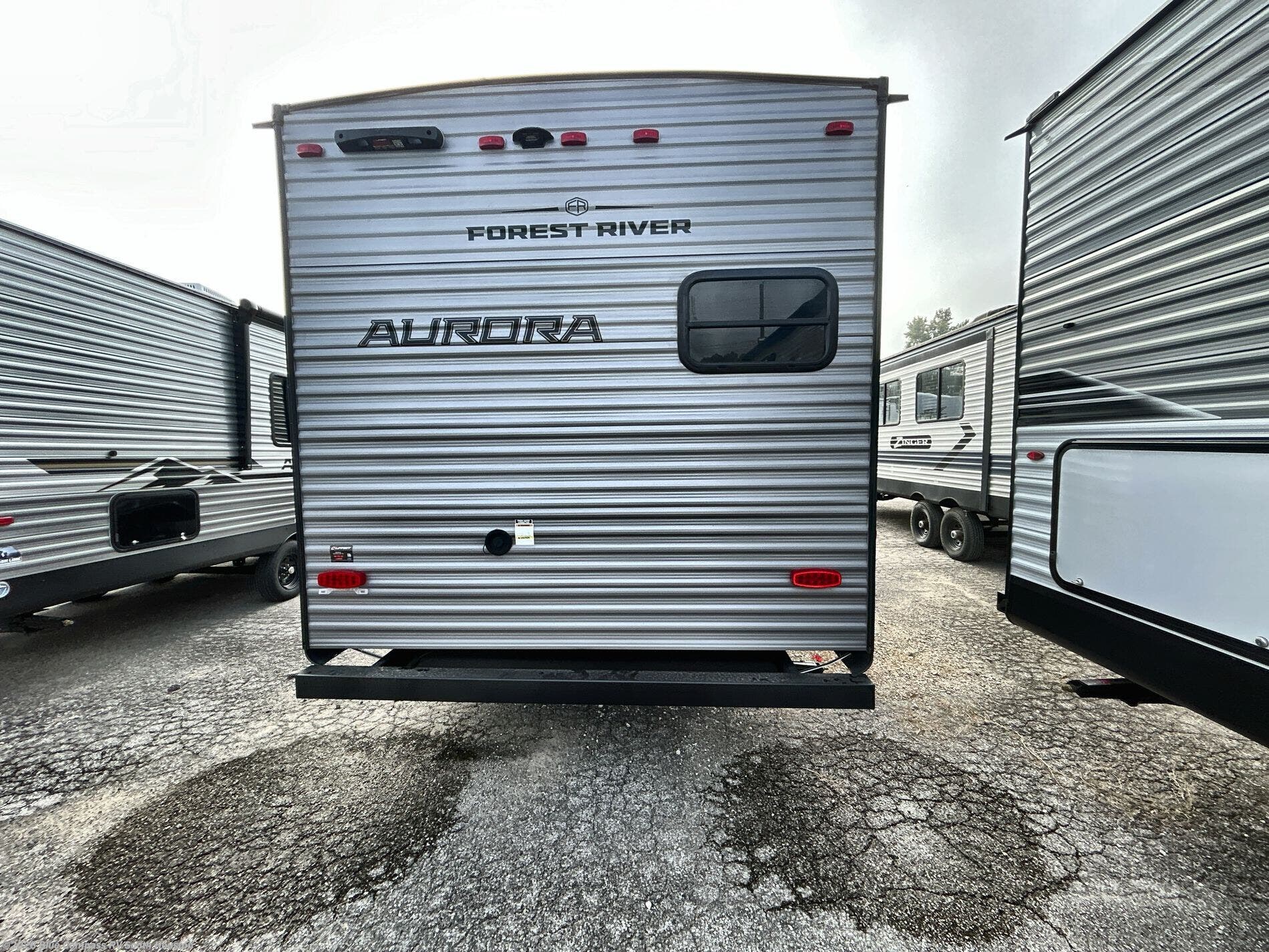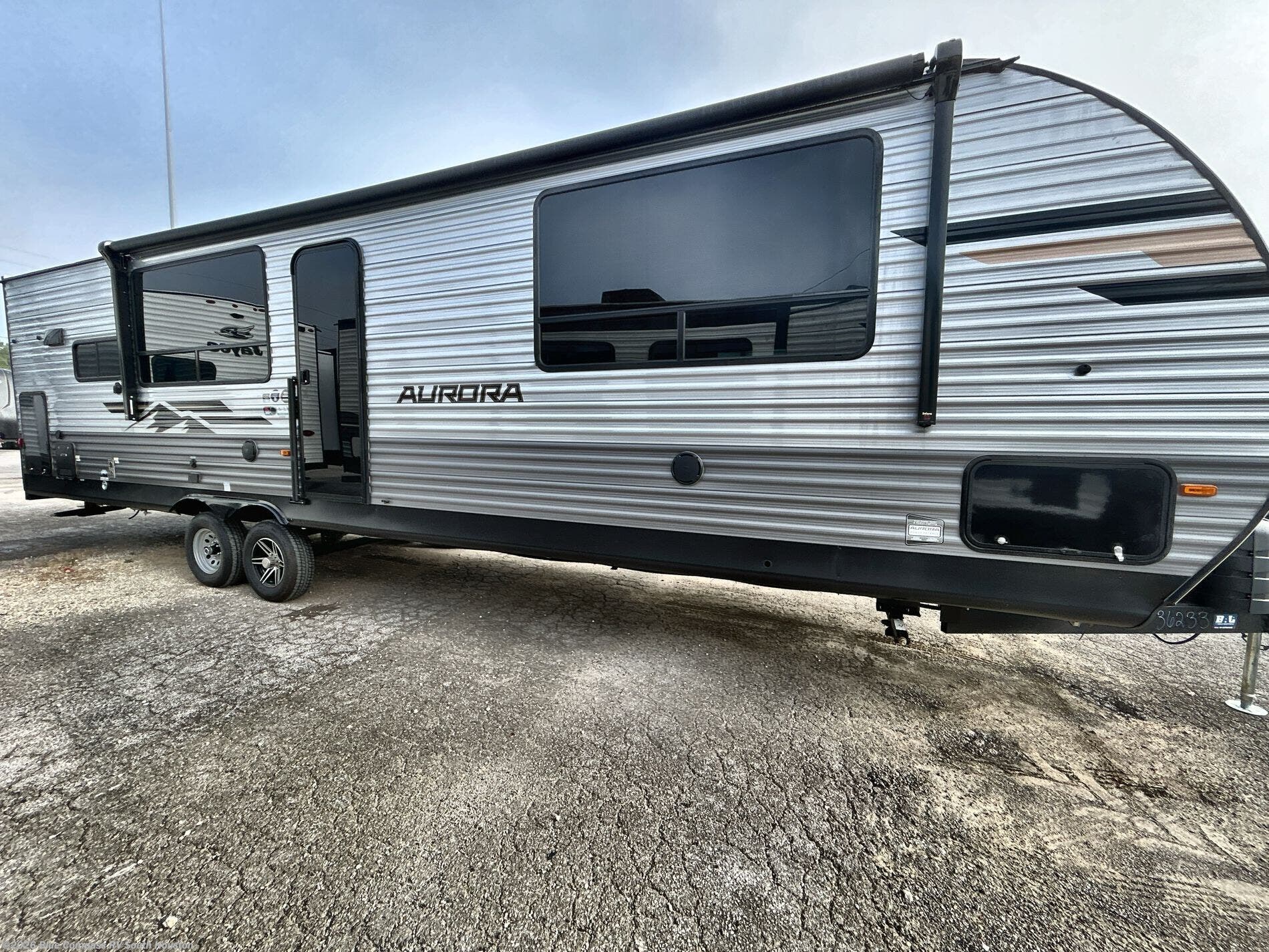 Comfortability, usability, and quality is what you will find in each one of these Forest River Aurora travel trailers, toy haulers or destination trailers! They are designed with a superior build and packed full with industry leading, functional, and distinctive standard features. SolidStep entrance steps and a Safe-T rail door assist on main entry door to help you safely enter and exit the unit. The diamond plate rock guard will protect your unit from road debris and the nitrogen filled radial tires, which keep their pressure longer, offer better fuel economy. You will also find upgraded JBL Elite exterior speakers outside, an electric awning with multicolor lights and remote, plus flush mount baggage doors for easy packing. The interiors are beautifully designed with a deep undermount farm style sink, stainless steel appliances, and linoleum flooring in the slide outs which will be easy to clean. Come find your favorite model today!