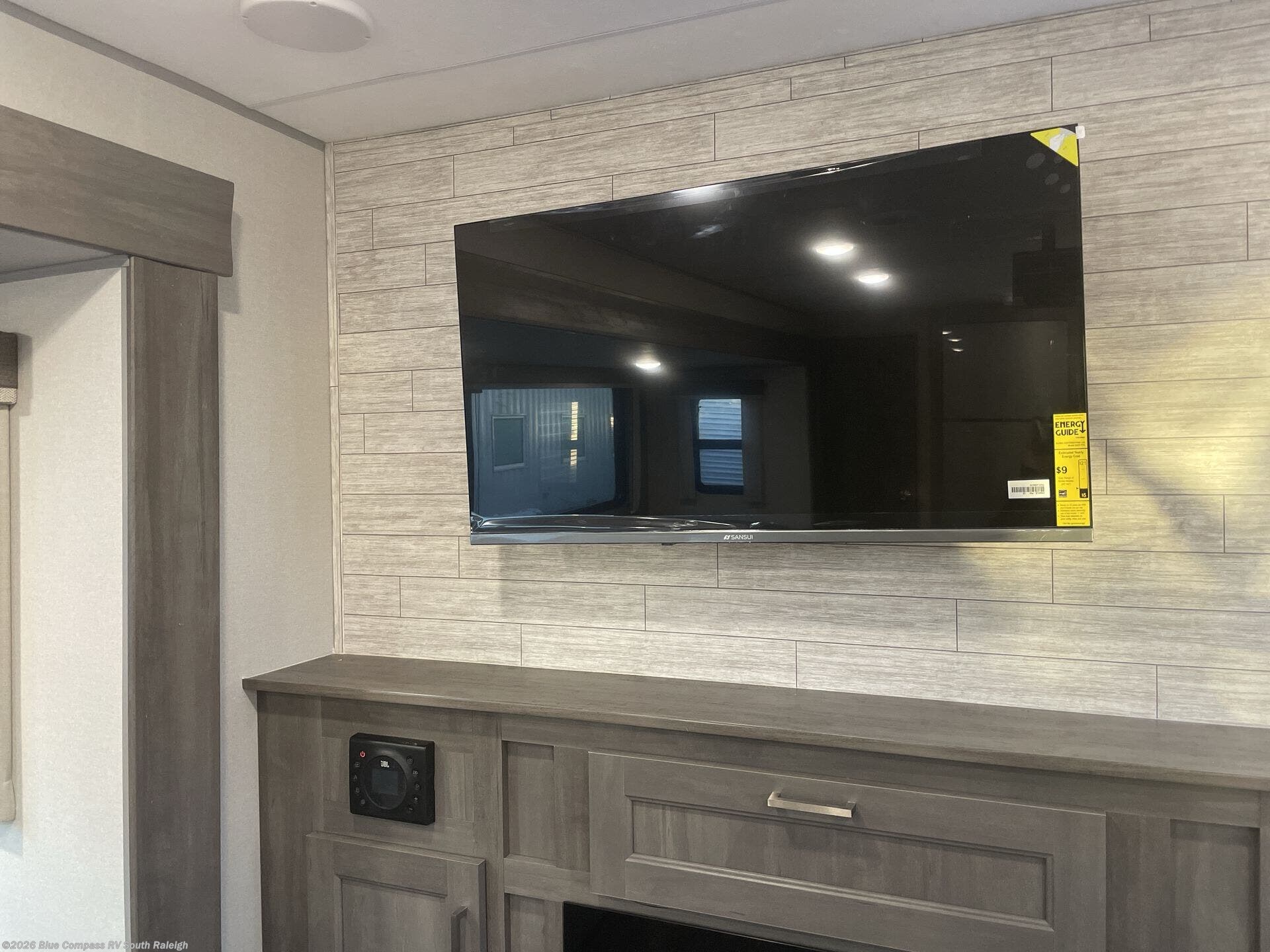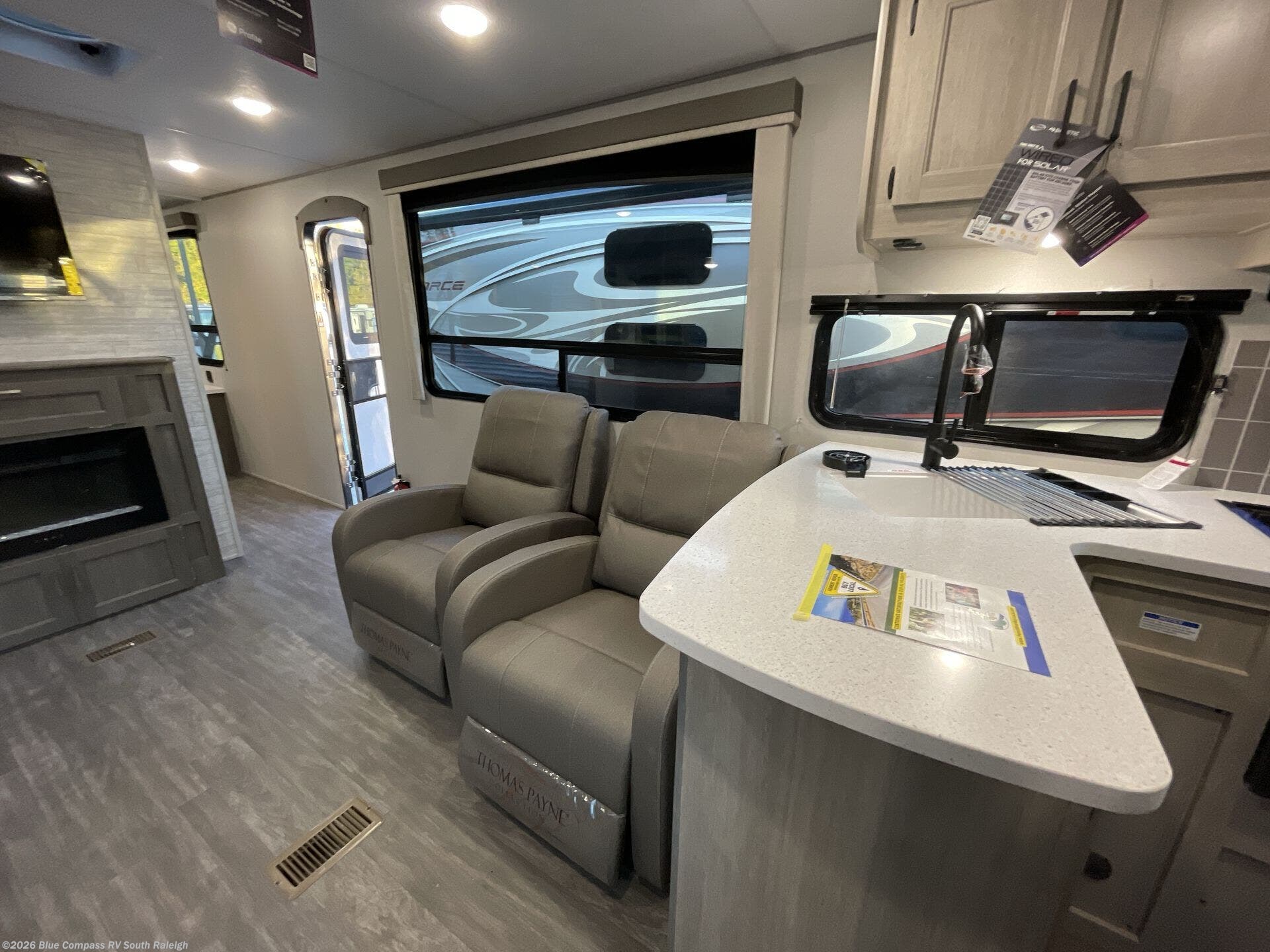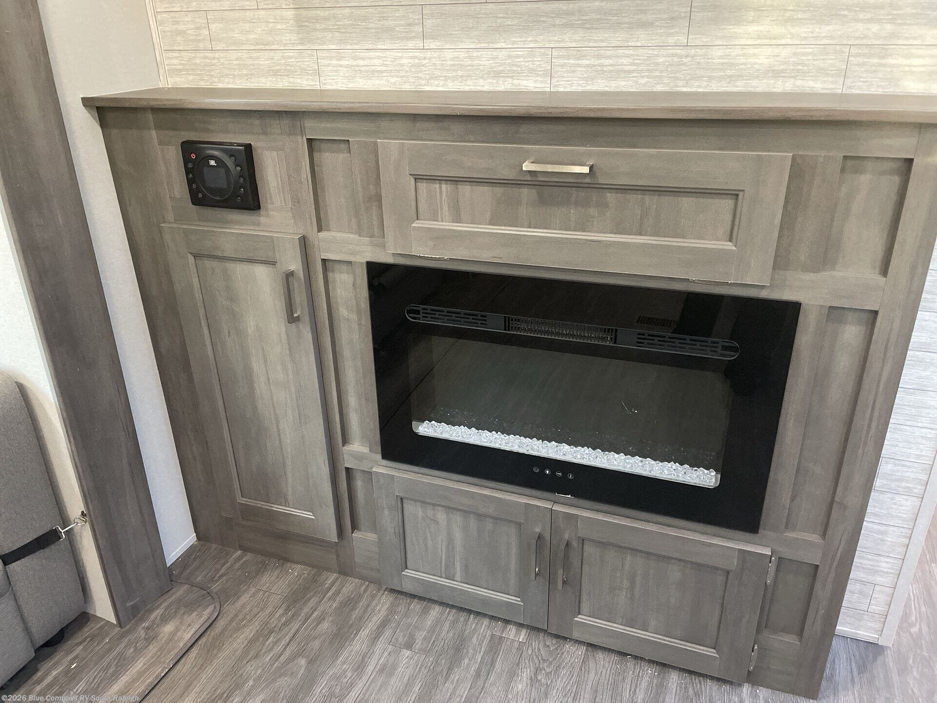The chef will love cooking in the rear kitchen of this travel trailer! You will feel right at home in the front private bedroom with the 60" x 74" queen bed slide across from a dresser and a front closet that has an area prepped for an optional washer and dryer. There is an optional fireplace and entertainment center in the living area in by the two lounge chairs and the 68" sofa next to the 45" booth dinette. Stay clean and fresh with the 36" x 30" shower pan with a skylight above for natural lighting as you get ready in the full bathroom. The 21' electric awning has multicolor lights for you to choose your favorite color as you enjoy a refreshing beverage from the mini fridge!