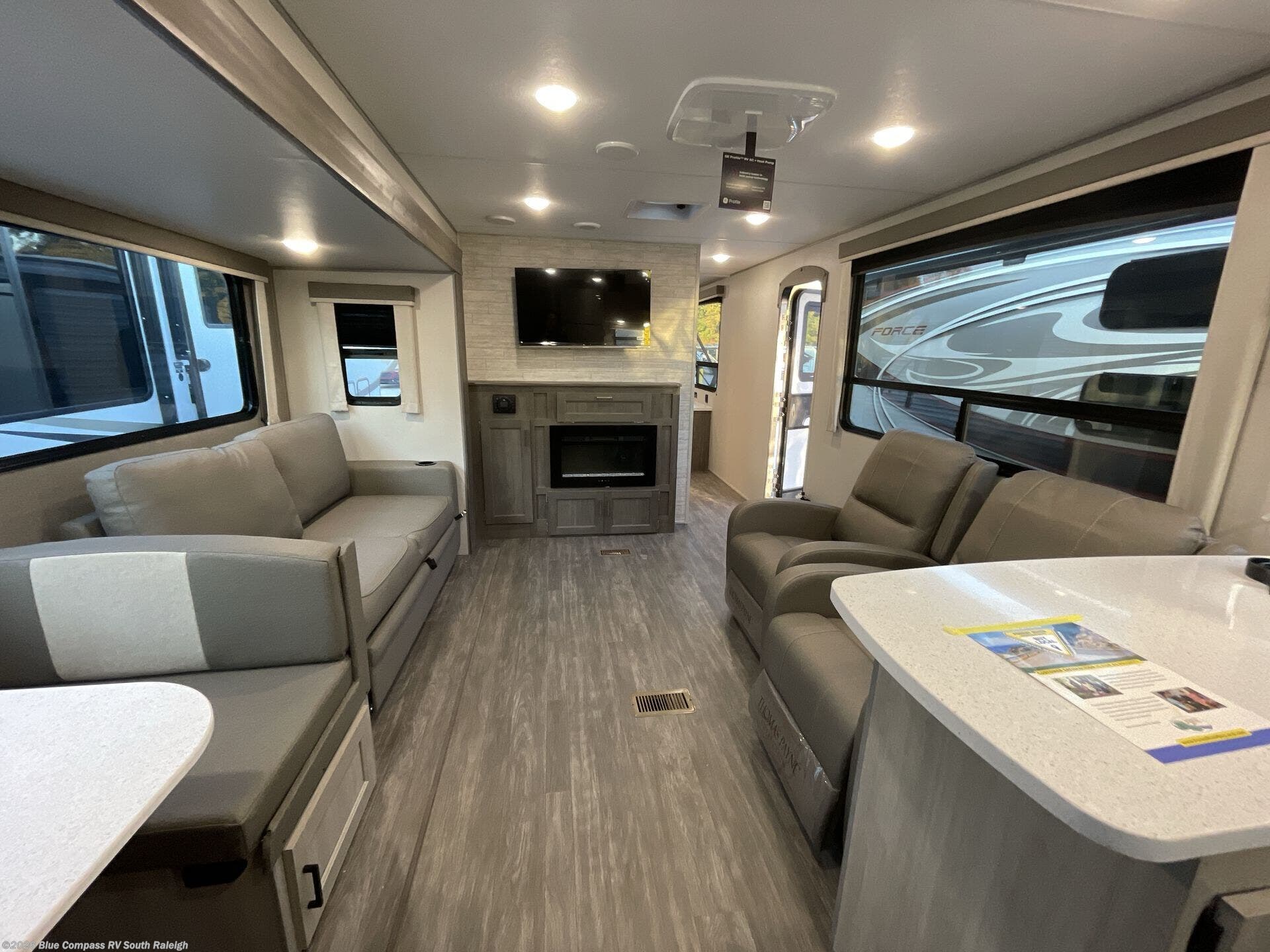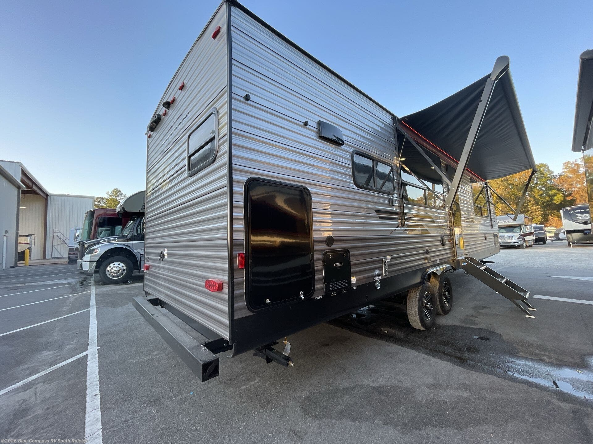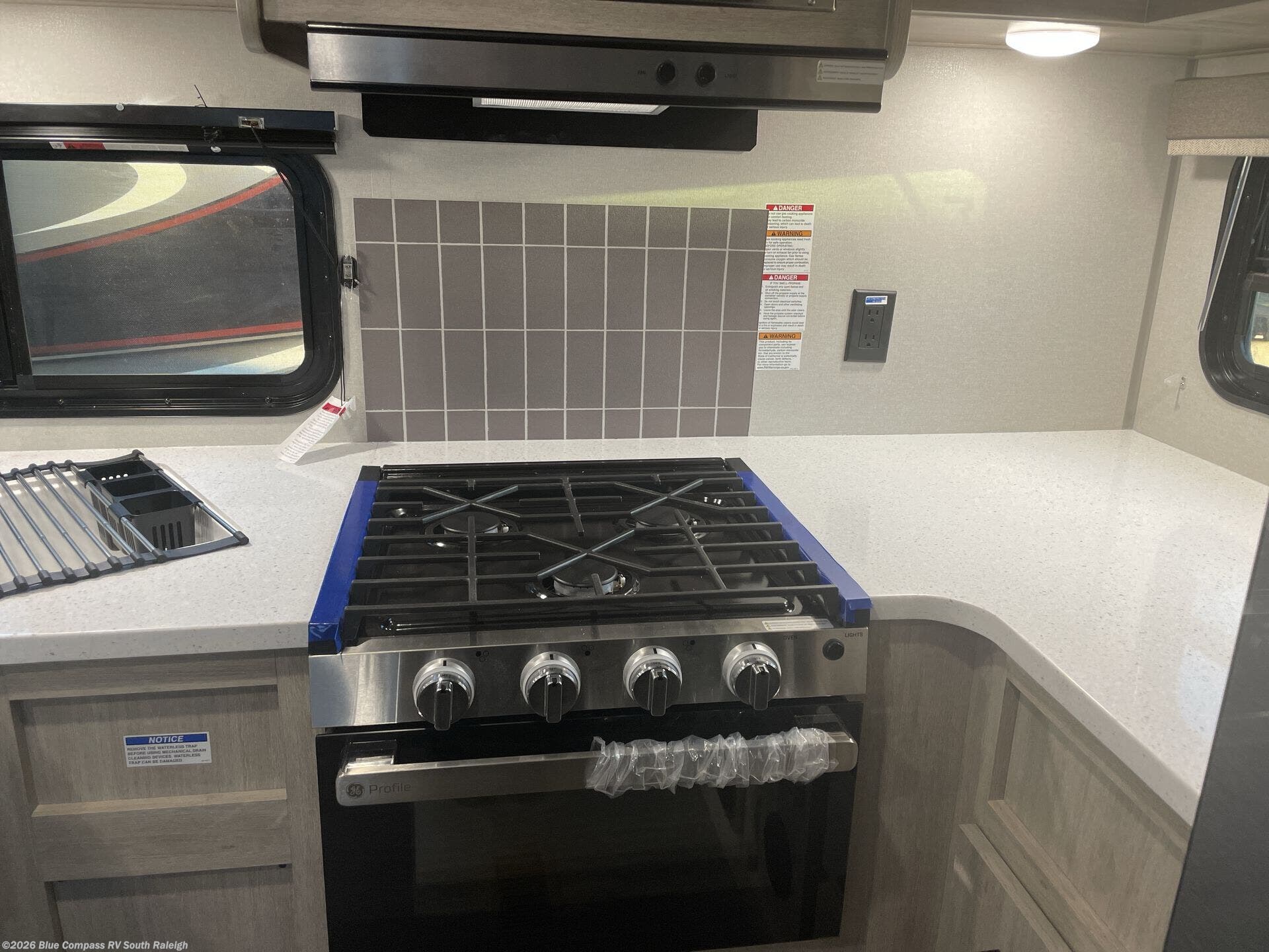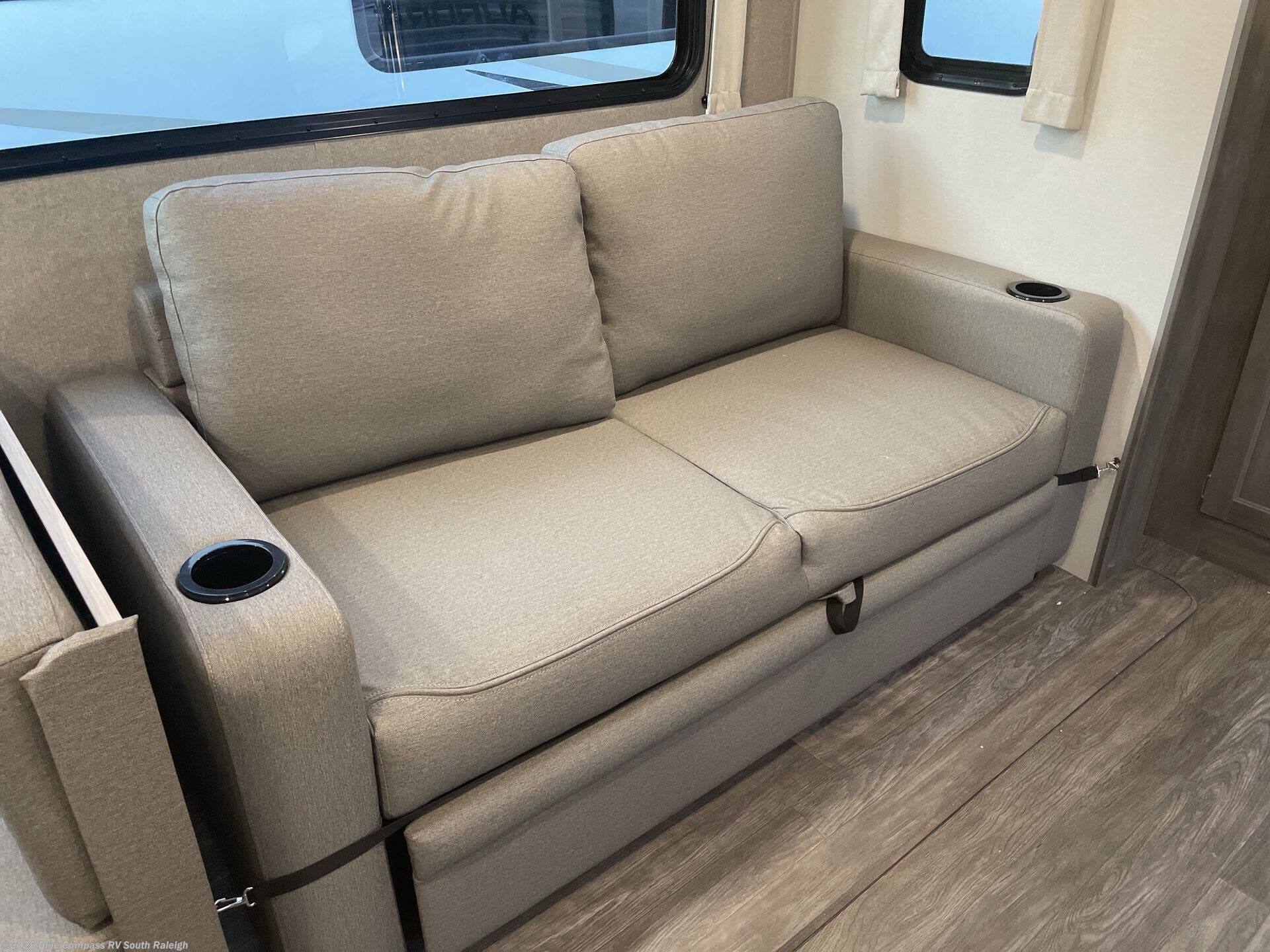 The chef will love cooking in the rear kitchen of this travel trailer! You will feel right at home in the front private bedroom with the 60" x 74" queen bed slide across from a dresser and a front closet that has an area prepped for an optional washer and dryer. There is an optional fireplace and entertainment center in the living area in by the two lounge chairs and the 68" sofa next to the 45" booth dinette. Stay clean and fresh with the 36" x 30" shower pan with a skylight above for natural lighting as you get ready in the full bathroom. The 21' electric awning has multicolor lights for you to choose your favorite color as you enjoy a refreshing beverage from the mini fridge!