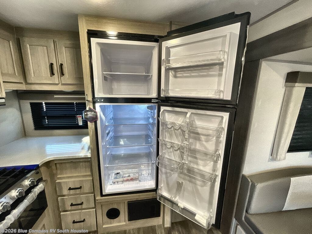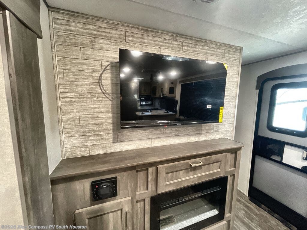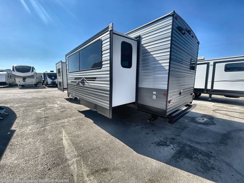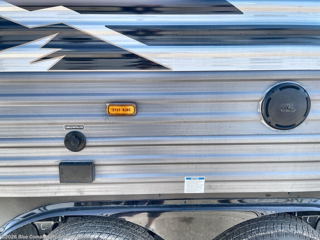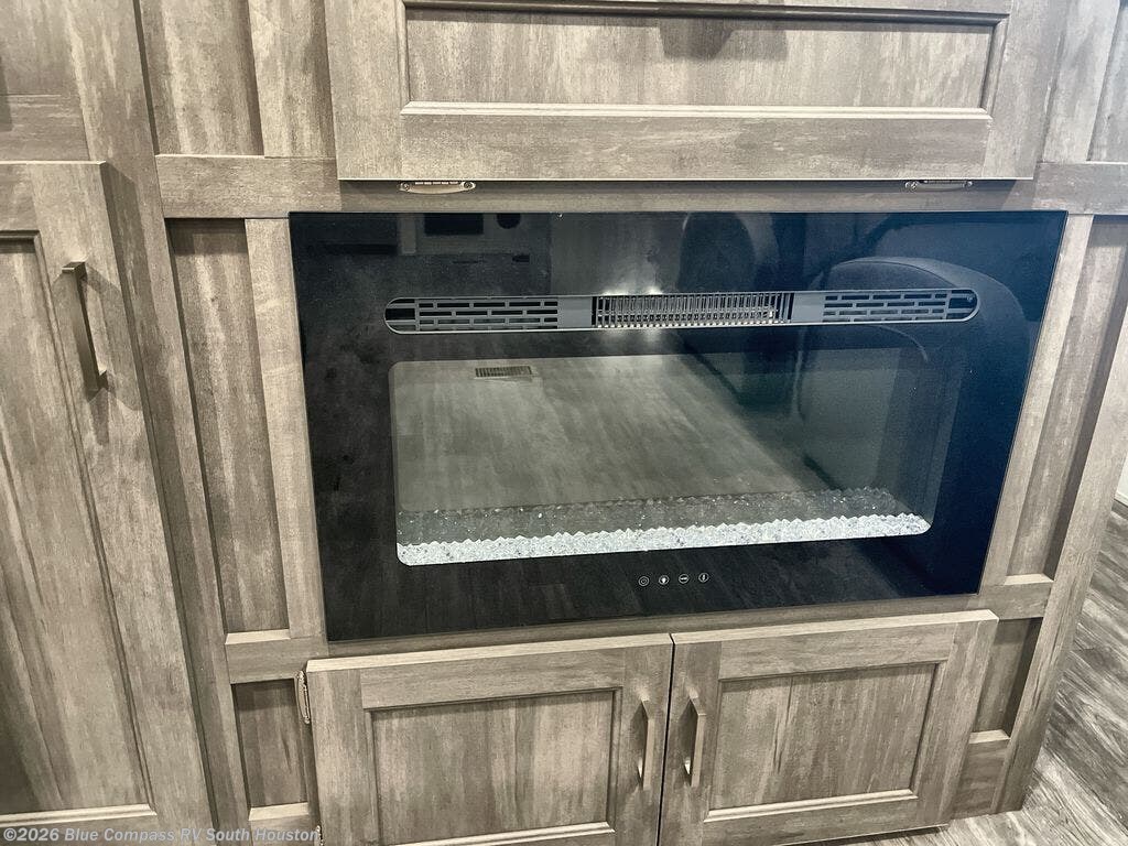 The chef will love cooking in the rear kitchen of this travel trailer! You will feel right at home in the front private bedroom with the 60" x 74" queen bed slide across from a dresser and a front closet that has an area prepped for an optional washer and dryer. There is an optional fireplace and entertainment center in the living area in by the two recliners and the 68" trundle sofa next to the booth dinette. Stay clean and fresh with the 36" x 30" shower pan with a skylight above for natural lighting as you get ready in the full bathroom. The 21' electric awning has multicolor lights for you to choose your favorite color as you enjoy a refreshing beverage from the mini fridge!
