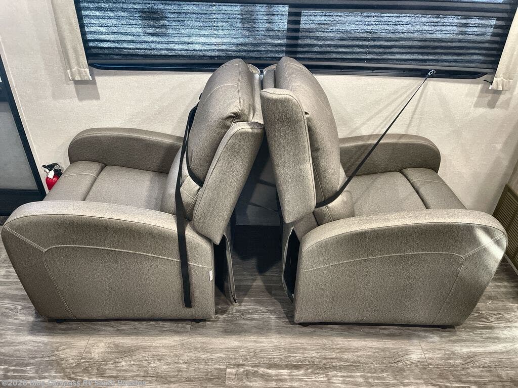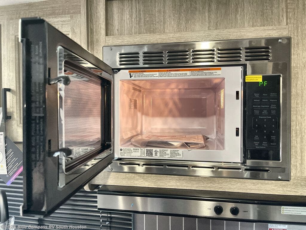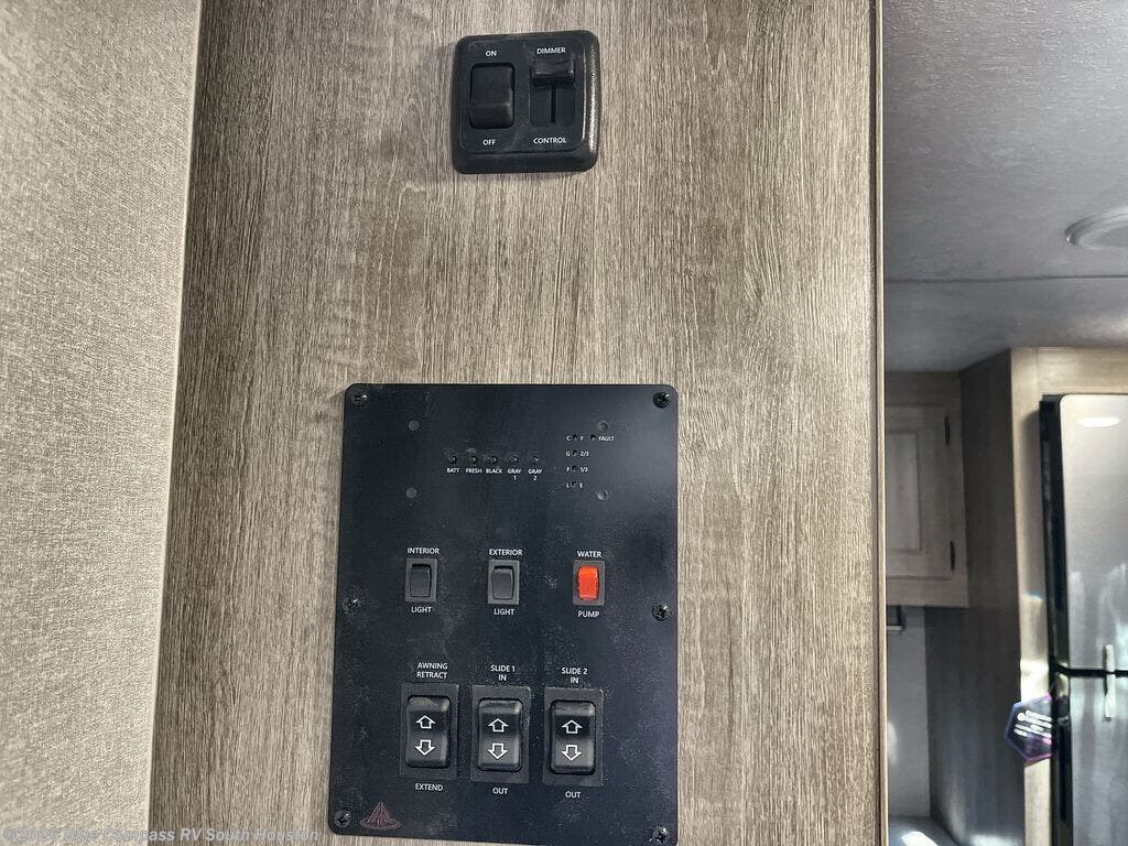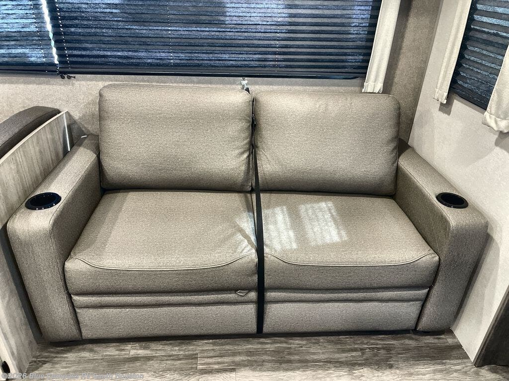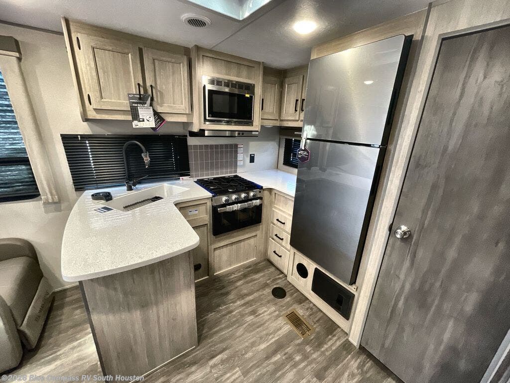 The chef will love cooking in the rear kitchen of this travel trailer! You will feel right at home in the front private bedroom with the 60" x 74" queen bed slide across from a dresser and a front closet that has an area prepped for an optional washer and dryer. There is an optional fireplace and entertainment center in the living area in by the two recliners and the 68" trundle sofa next to the booth dinette. Stay clean and fresh with the 36" x 30" shower pan with a skylight above for natural lighting as you get ready in the full bathroom. The 21' electric awning has multicolor lights for you to choose your favorite color as you enjoy a refreshing beverage from the mini fridge!