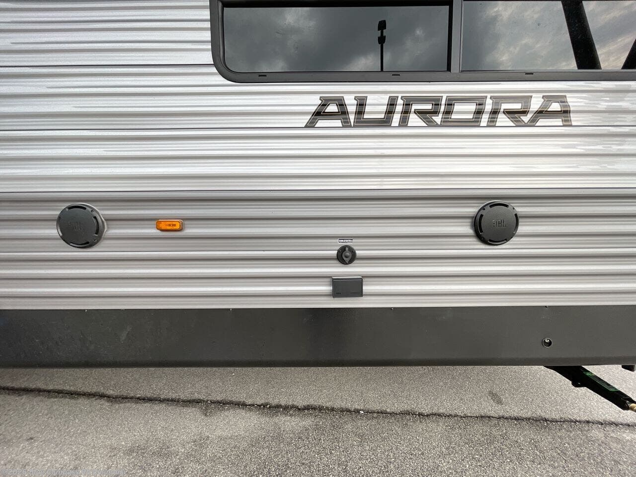 Comfortability, usability, and quality is what you will find in each one of these Forest River Aurora travel trailers, toy haulers or destination trailers! They are designed with a superior build and packed full with industry leading, functional, and distinctive standard features. SolidStep entrance steps and a Safe-T rail door assist on main entry door to help you safely enter and exit the unit. The diamond plate rock guard will protect your unit from road debris and the nitrogen filled radial tires, which keep their pressure longer, offer better fuel economy. You will also find upgraded JBL Elite exterior speakers outside, an electric awning with multicolor lights and remote, plus flush mount baggage doors for easy packing. The interiors are beautifully designed with a deep undermount farm style sink, stainless steel appliances, and linoleum flooring in the slide outs which will be easy to clean. Come find your favorite model today!