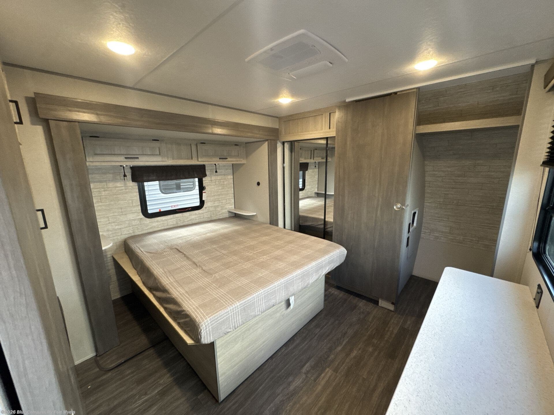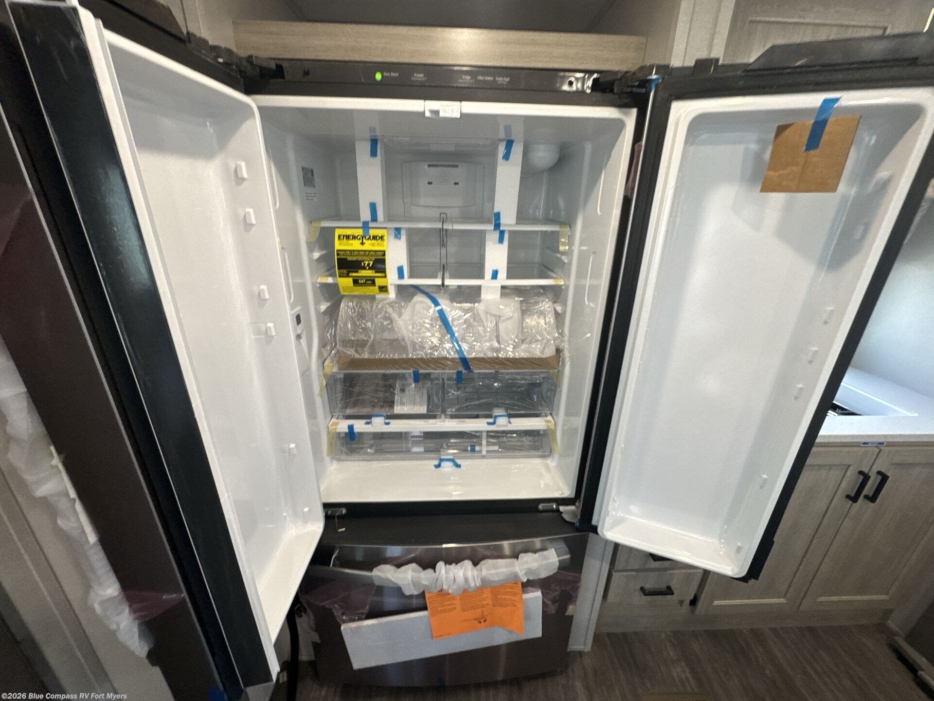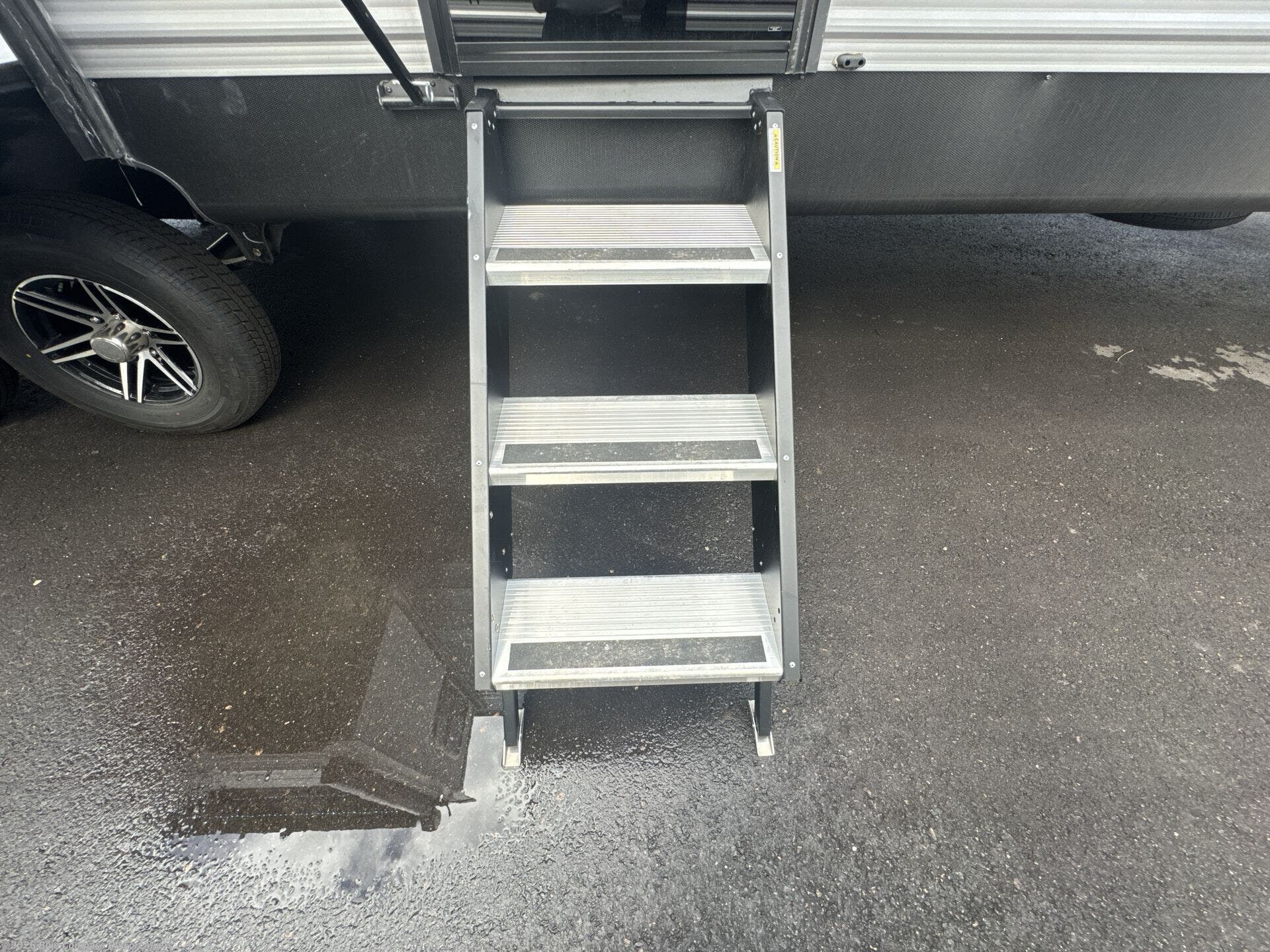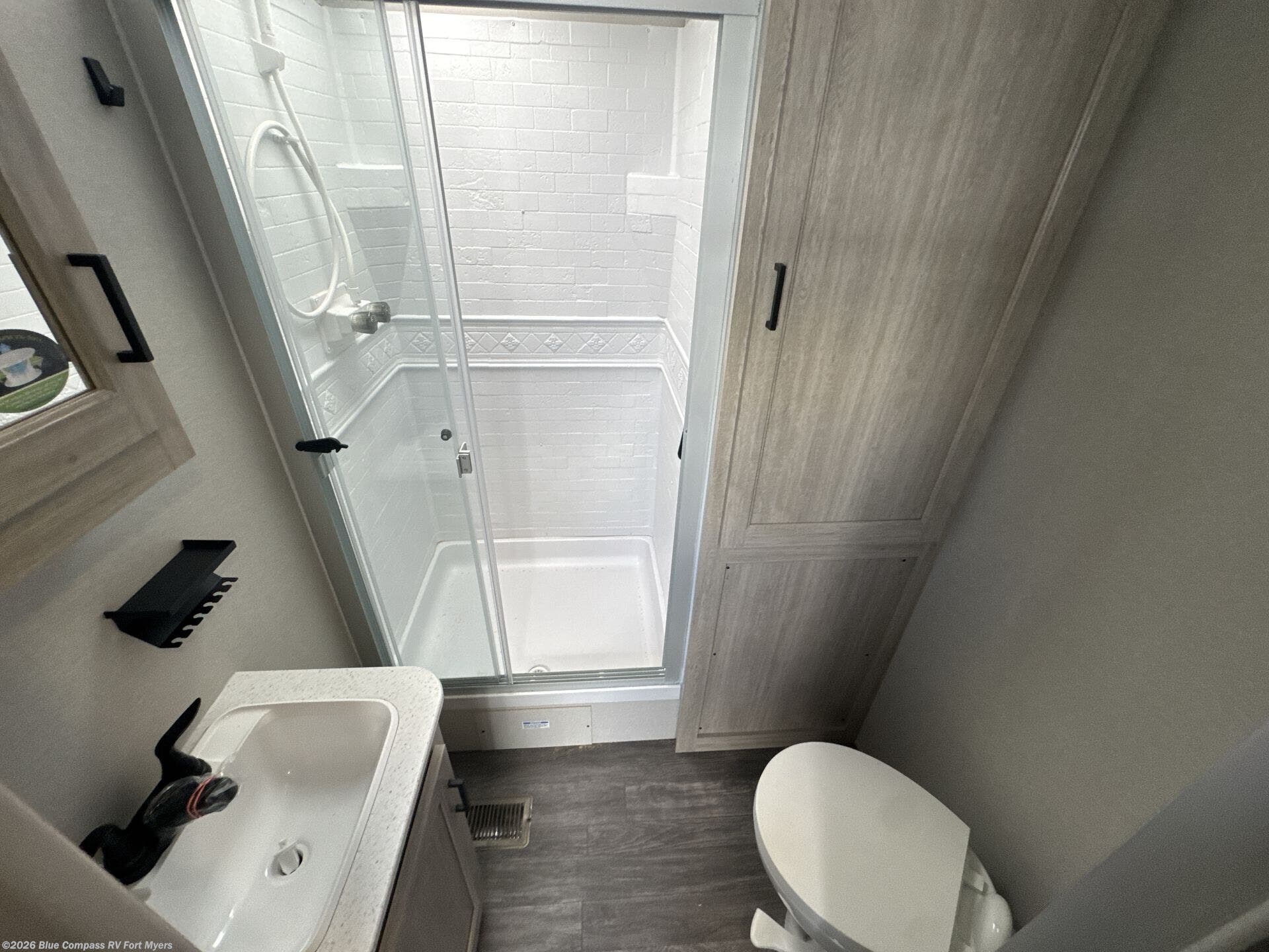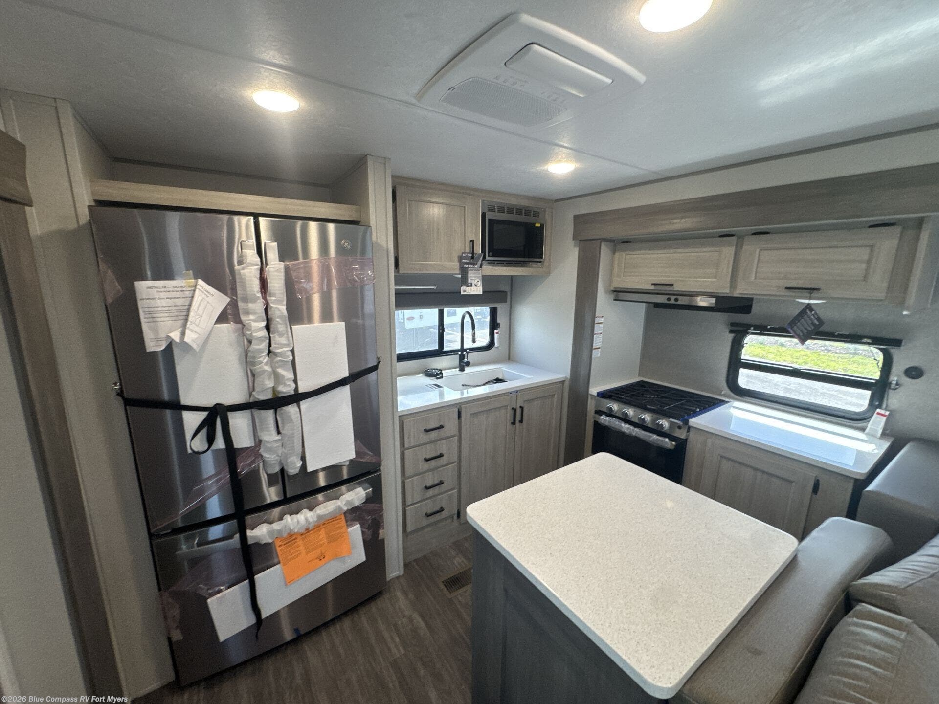 This travel trailer is perfect for those who enjoy comfort at the campground! The rear kitchen lets you make meals each day, and there is an island for additional counter space, plus a large pantry for snacks and dry goods. The sliding desk/table provides a versatile space to dine or get some work done, and the L-shaped sectional sofa gives you place to relax in the evenings. There is also an entertainment center with a TV so you can watch your favorite shows! A full bath on board means you won't have to leave your camper in the middle of the night, and a 60" x 74" RV queen bed provides a comfy place to sleep each night. The large closet, wardrobe and dresser will be great to store your clothes and shoes, and there is a second closet with washer/dryer prep if you choose to add these appliances!