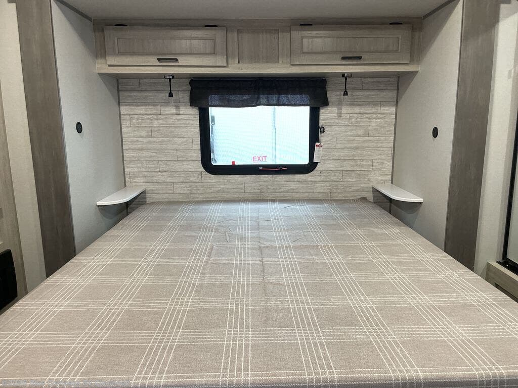 This travel trailer is perfect for those who enjoy comfort at the campground! The rear kitchen lets you make meals each day, and there is an island for additional counter space, plus a large pantry for snacks and dry goods. The sliding desk/table provides a versatile space to dine or get some work done, and the L-shaped sectional sofa gives you place to relax in the evenings. There is also an entertainment center with a TV so you can watch your favorite shows! A full bath on board means you won't have to leave your camper in the middle of the night, and a 60" x 74" RV queen bed provides a comfy place to sleep each night. The large closet, wardrobe and dresser will be great to store your clothes and shoes, and there is a second closet with washer/dryer prep if you choose to add these appliances!