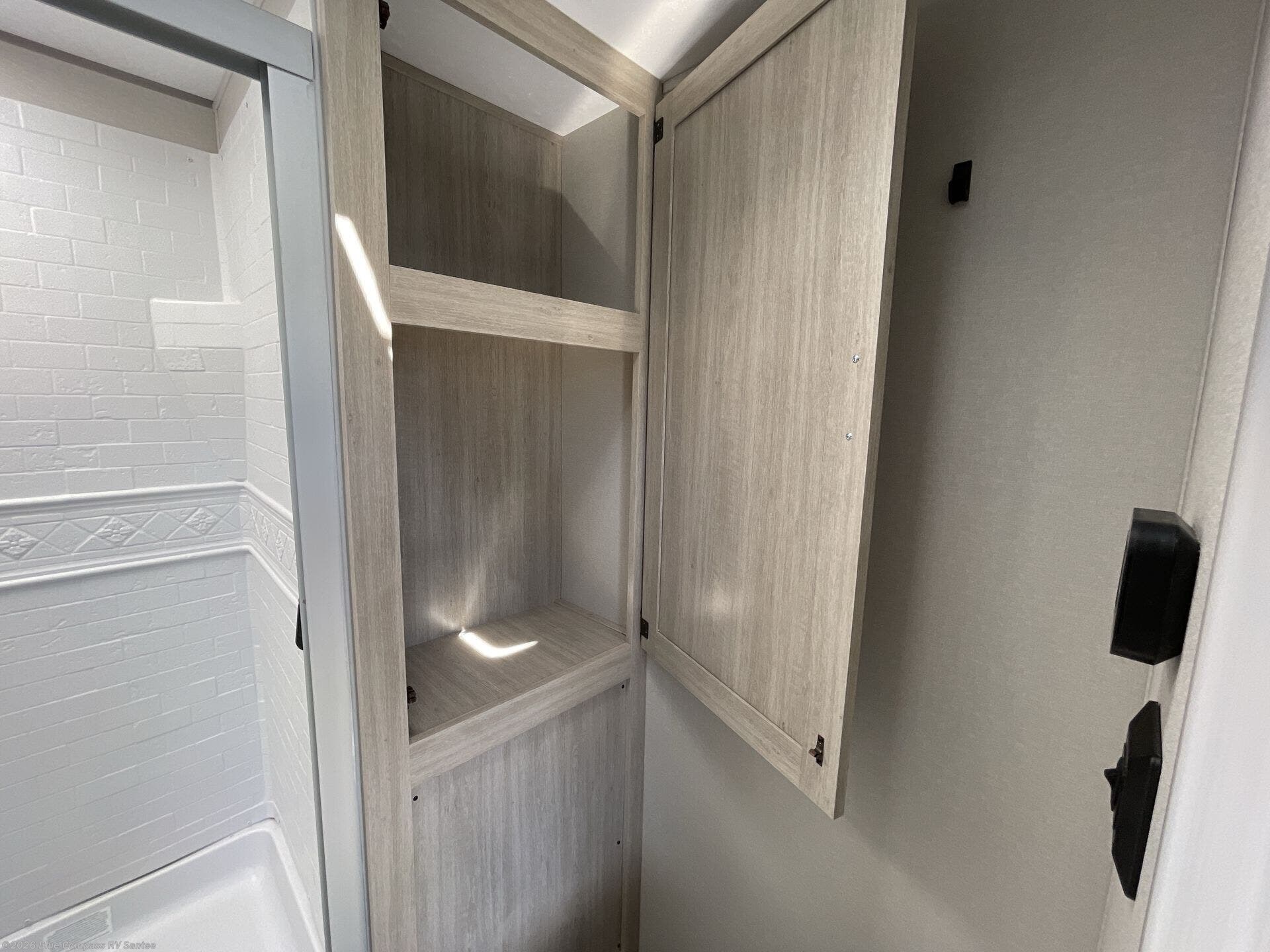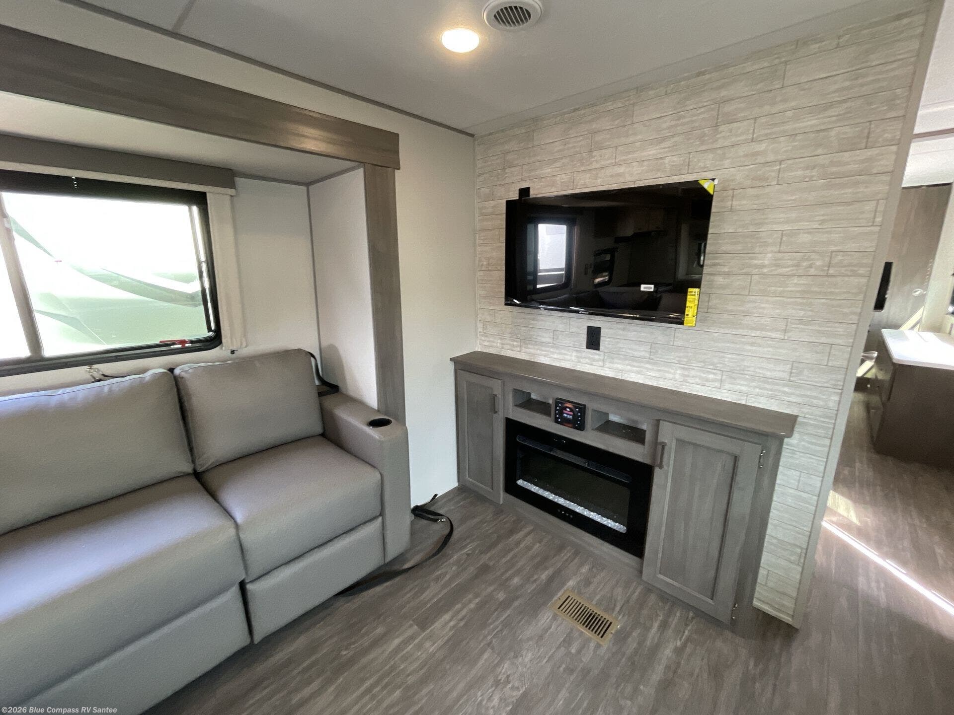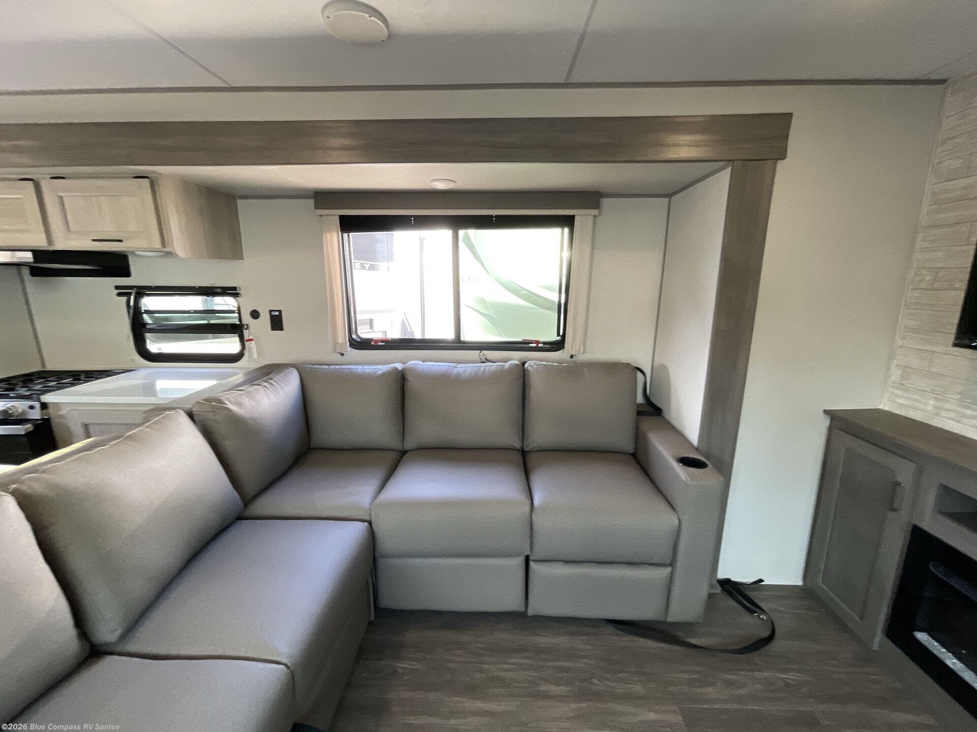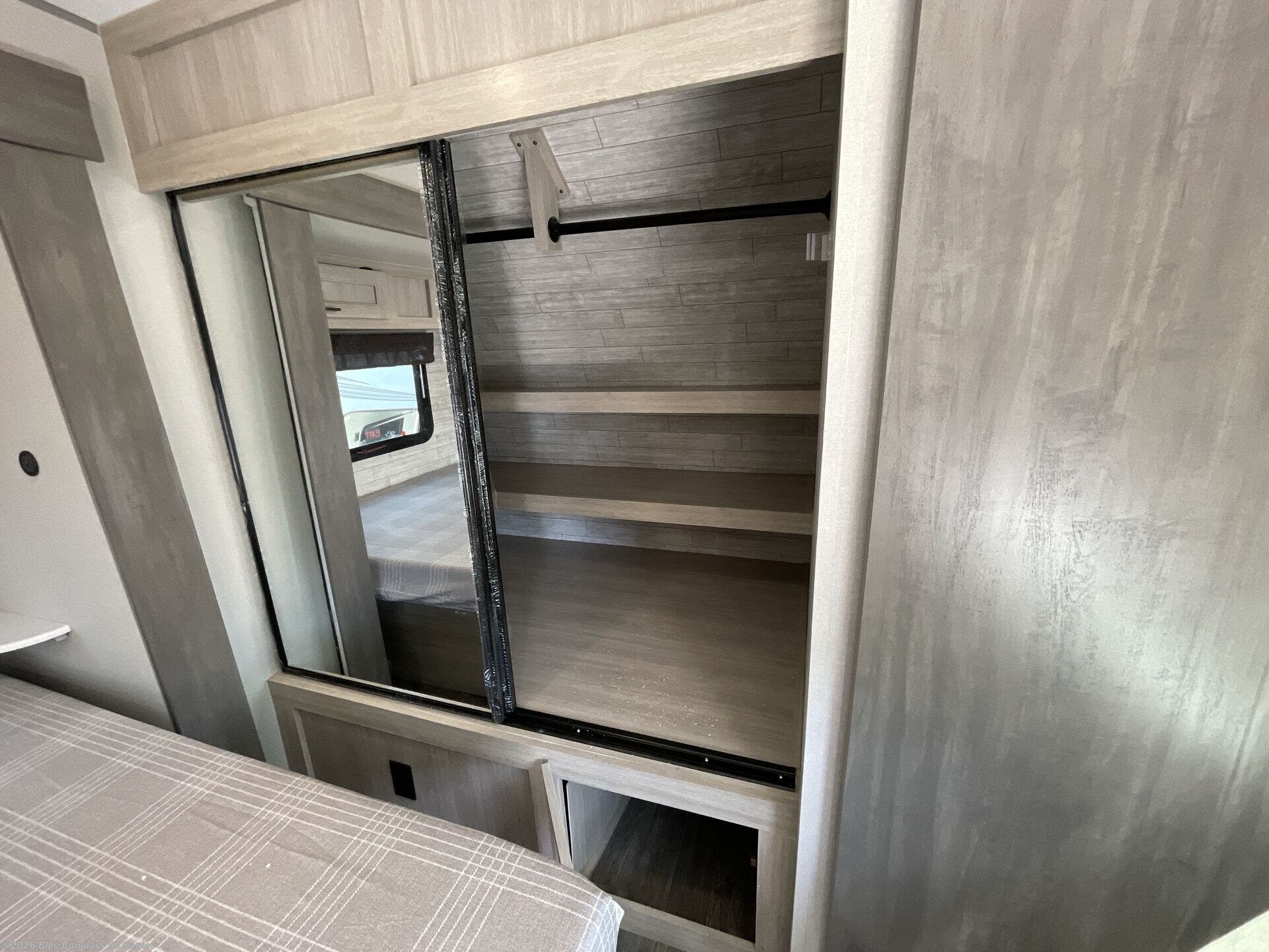 This travel trailer is perfect for those who enjoy comfort at the campground! The rear kitchen lets you make meals each day, and there is an island for additional counter space, plus a large pantry for snacks and dry goods. The sliding desk/table provides a versatile space to dine or get some work done, and the L-shaped sectional sofa gives you place to relax in the evenings. There is also an entertainment center with a TV so you can watch your favorite shows! A full bath on board means you won't have to leave your camper in the middle of the night, and a 60" x 74" RV queen bed provides a comfy place to sleep each night. The large closet, wardrobe and dresser will be great to store your clothes and shoes, and there is a second closet with washer/dryer prep if you choose to add these appliances!