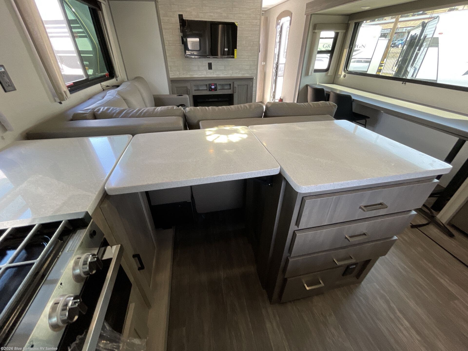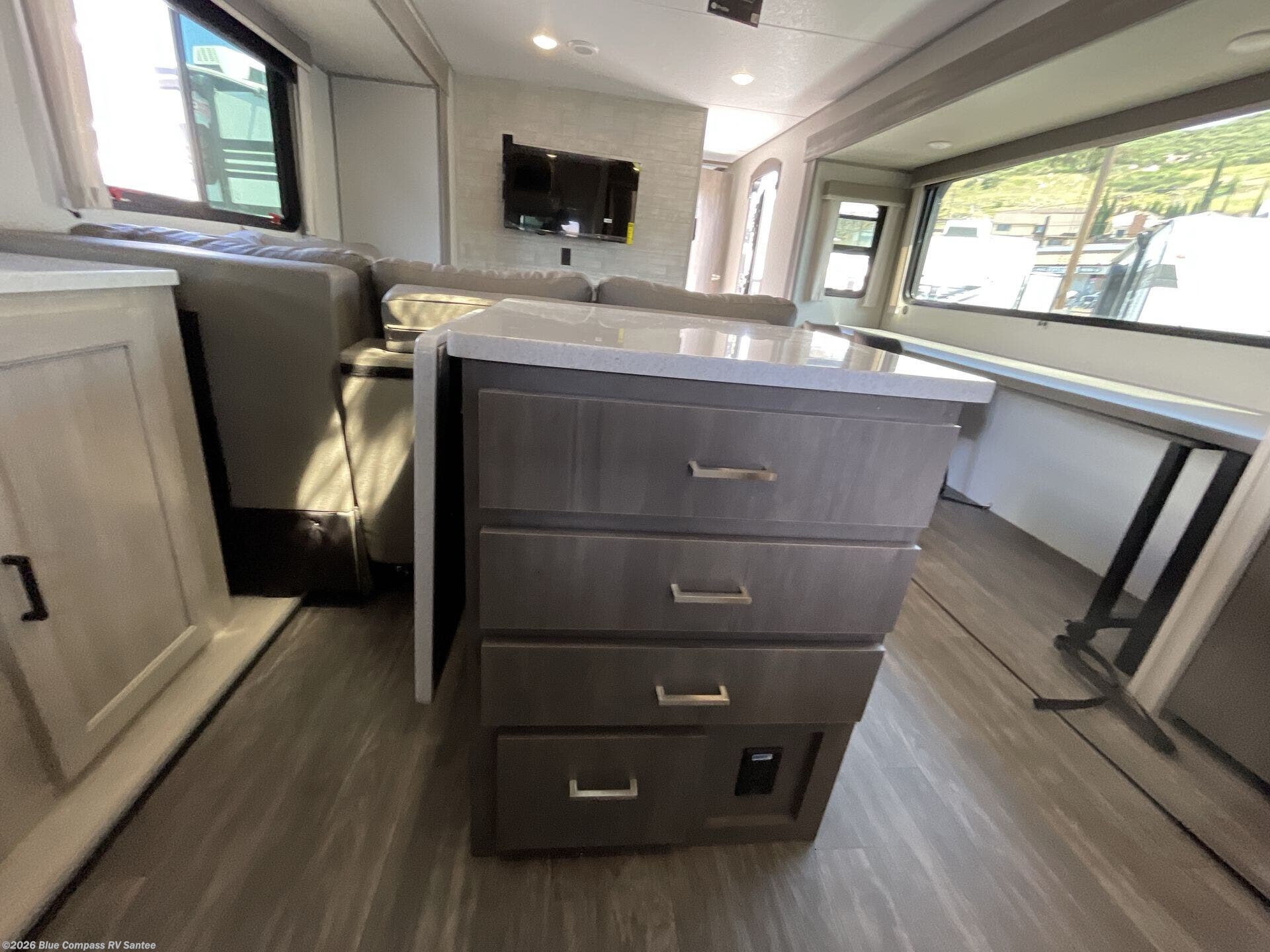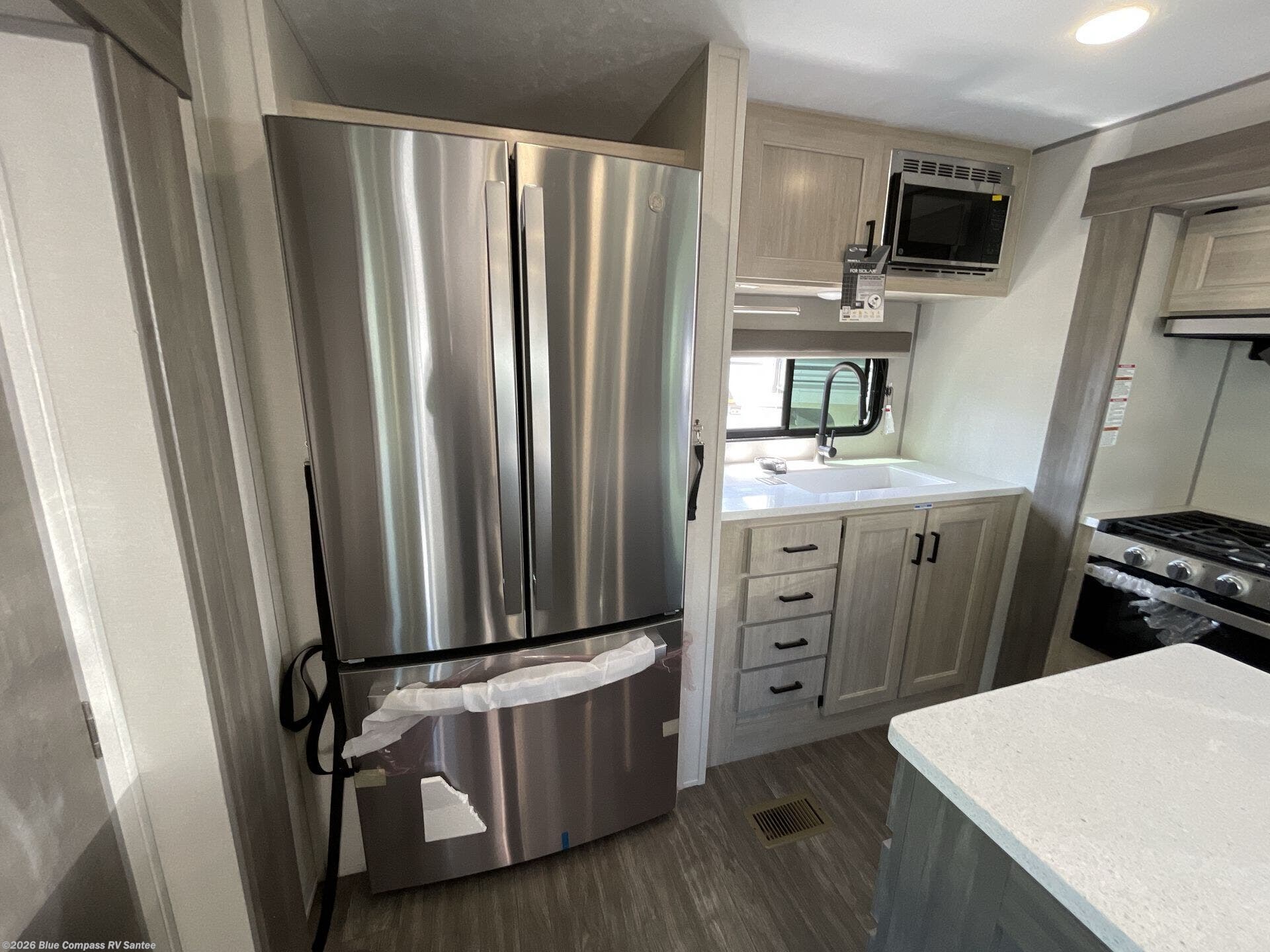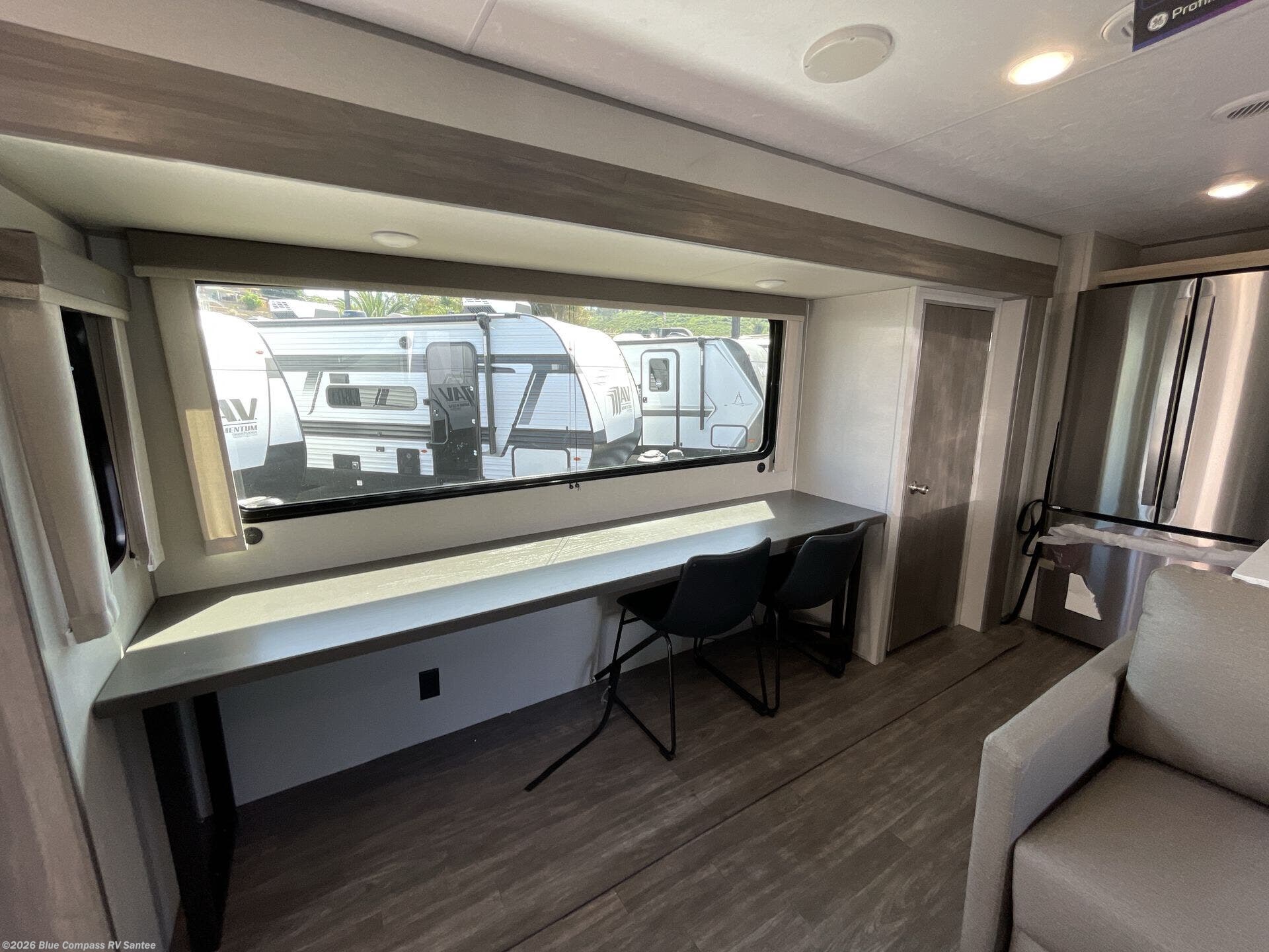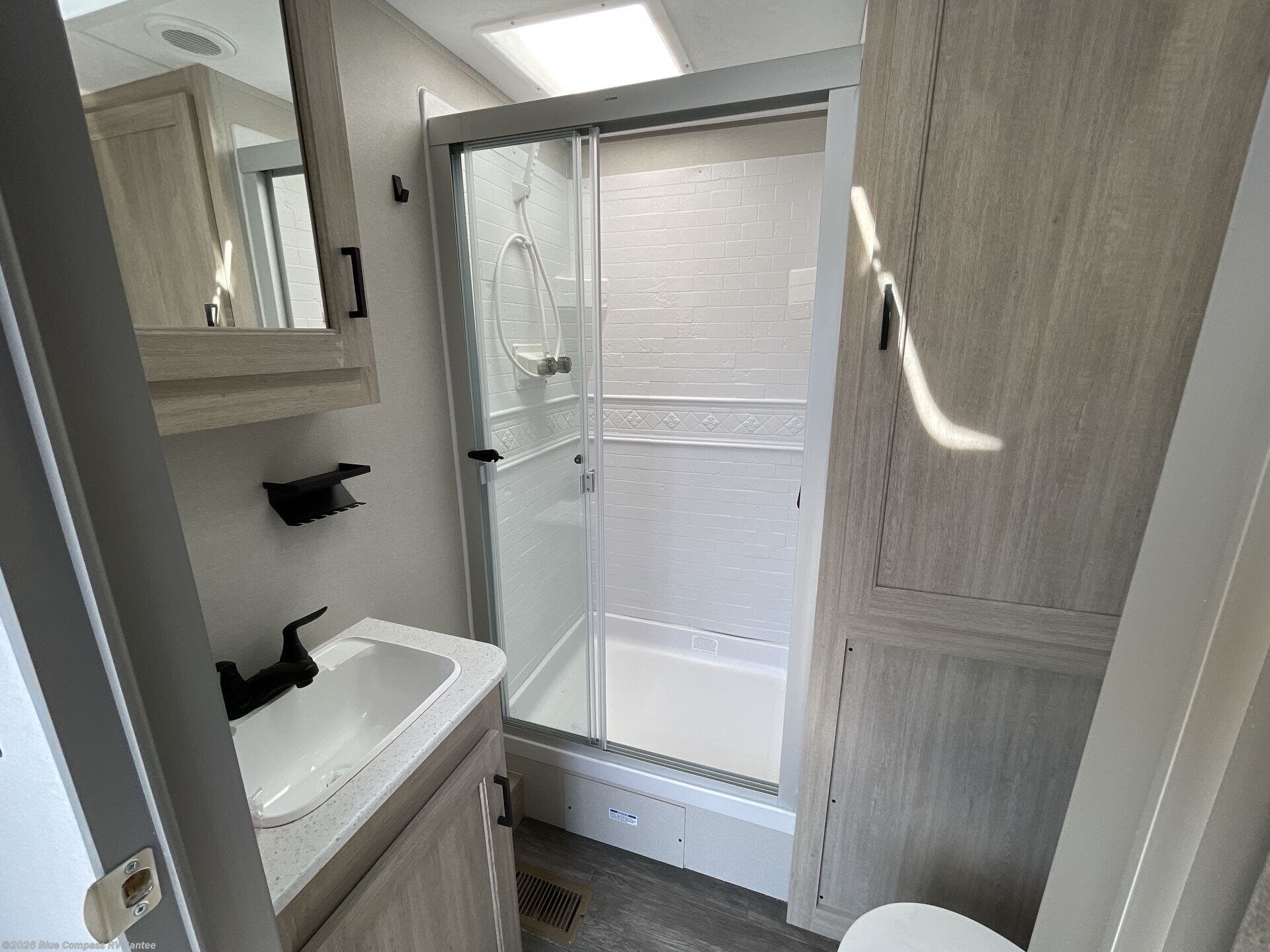 This travel trailer is perfect for those who enjoy comfort at the campground! The rear kitchen lets you make meals each day, and there is an island for additional counter space, plus a large pantry for snacks and dry goods. The sliding desk/table provides a versatile space to dine or get some work done, and the L-shaped sectional sofa gives you place to relax in the evenings. There is also an entertainment center with a TV so you can watch your favorite shows! A full bath on board means you won't have to leave your camper in the middle of the night, and a 60" x 74" RV queen bed provides a comfy place to sleep each night. The large closet, wardrobe and dresser will be great to store your clothes and shoes, and there is a second closet with washer/dryer prep if you choose to add these appliances!