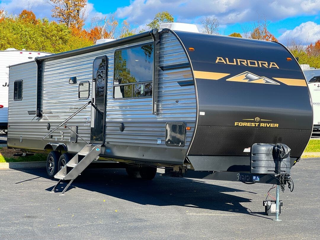 Request More Info on this 2026 Forest River Aurora 34BHTS (2 Queen Beds) Offered for sale by Blue Compass RV Albany