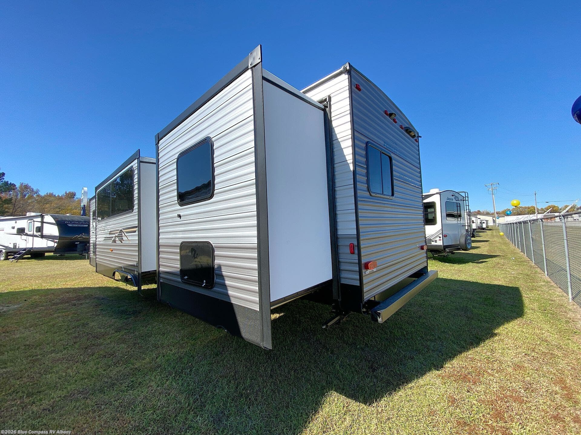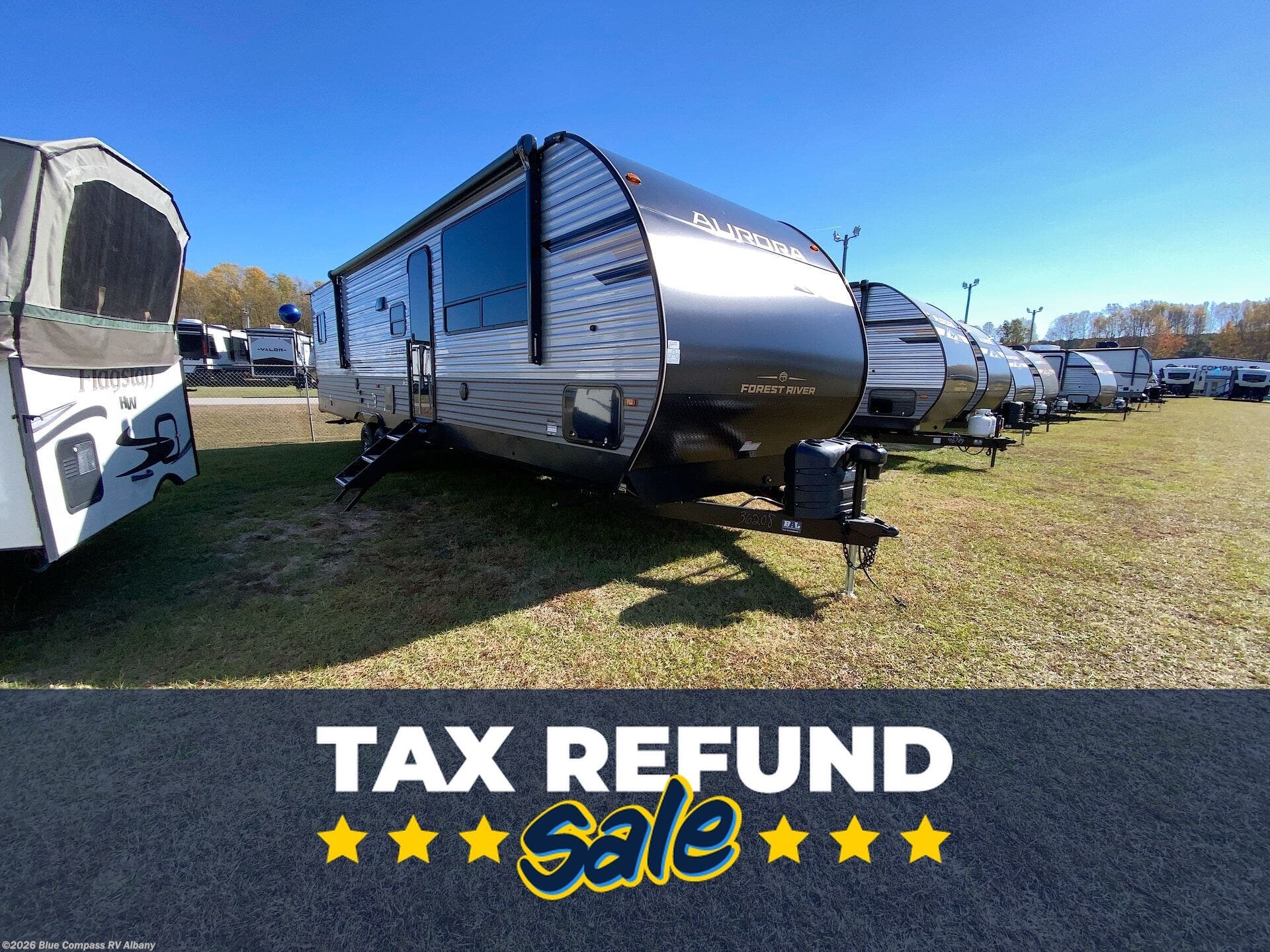 Request More Info on this 2026 Forest River Aurora 34BHTS (2 Queen Beds) Offered for sale by Blue Compass RV Albany