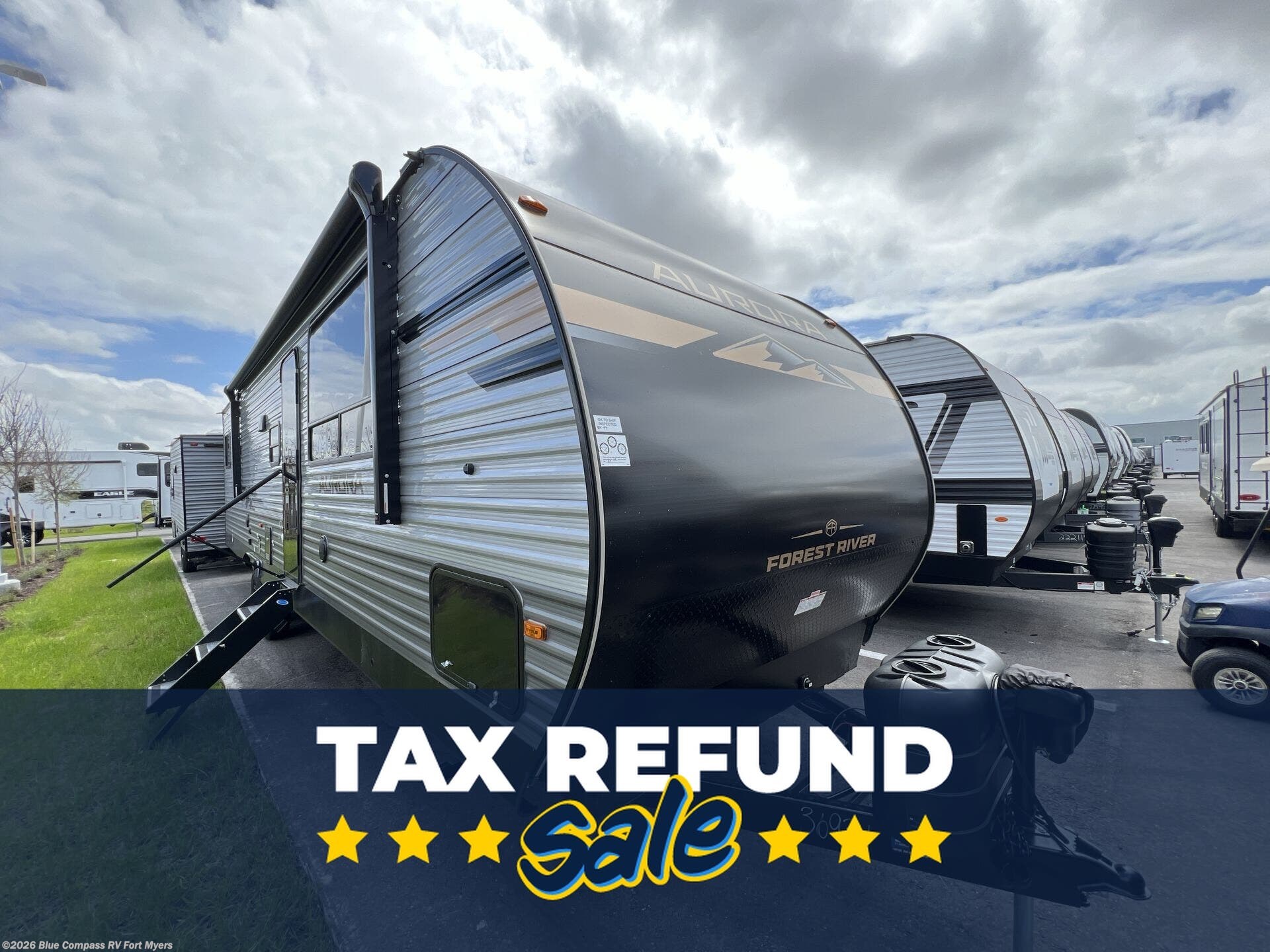 Request More Info on this 2026 Forest River Aurora 34BHTS (2 Queen Beds) Offered for sale by Blue Compass RV Fort Myers